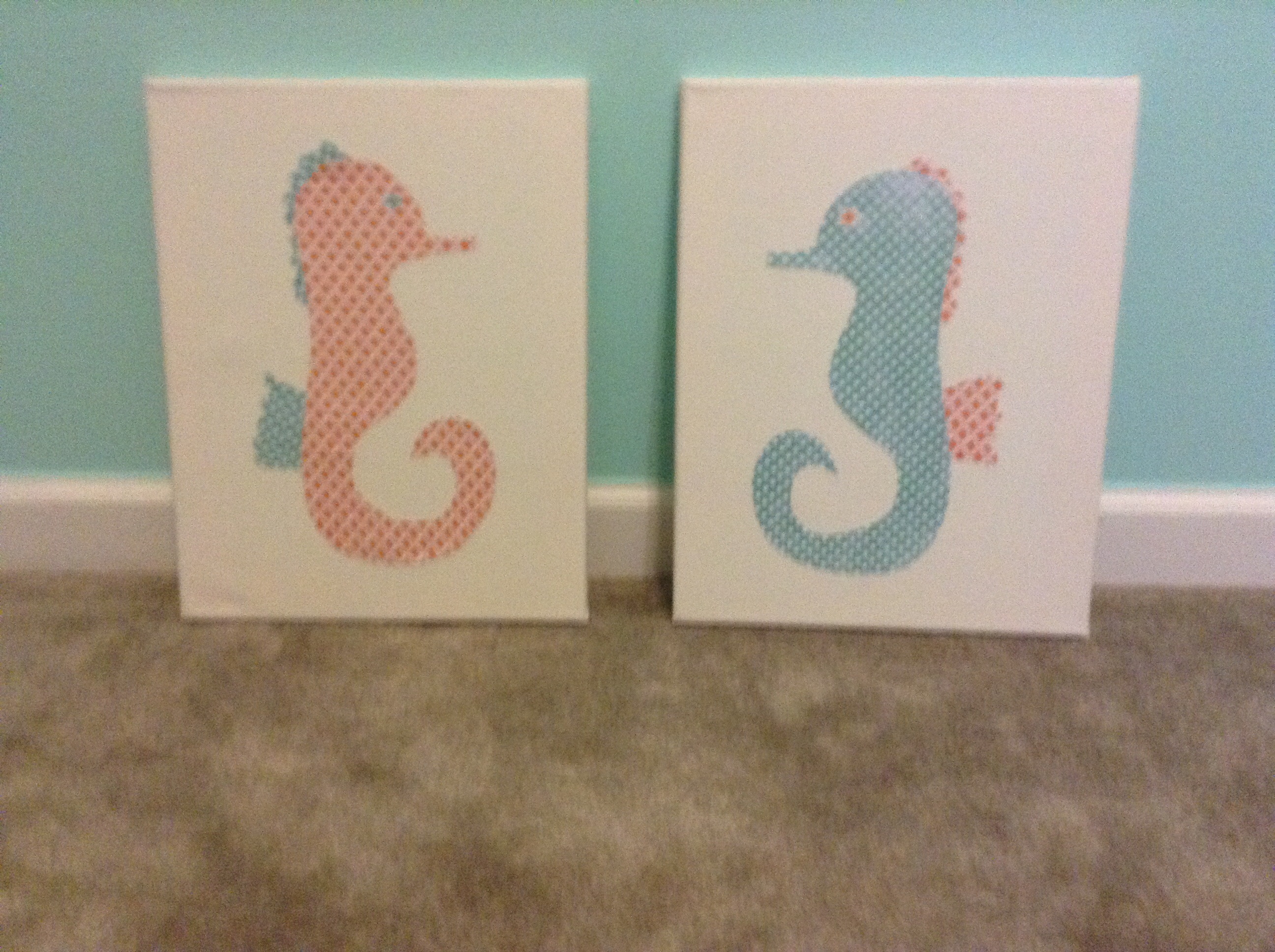 We just finished the paint today and I have to share a picture! I measured and taped all the lines for the husband, so this was definitely a labor of love