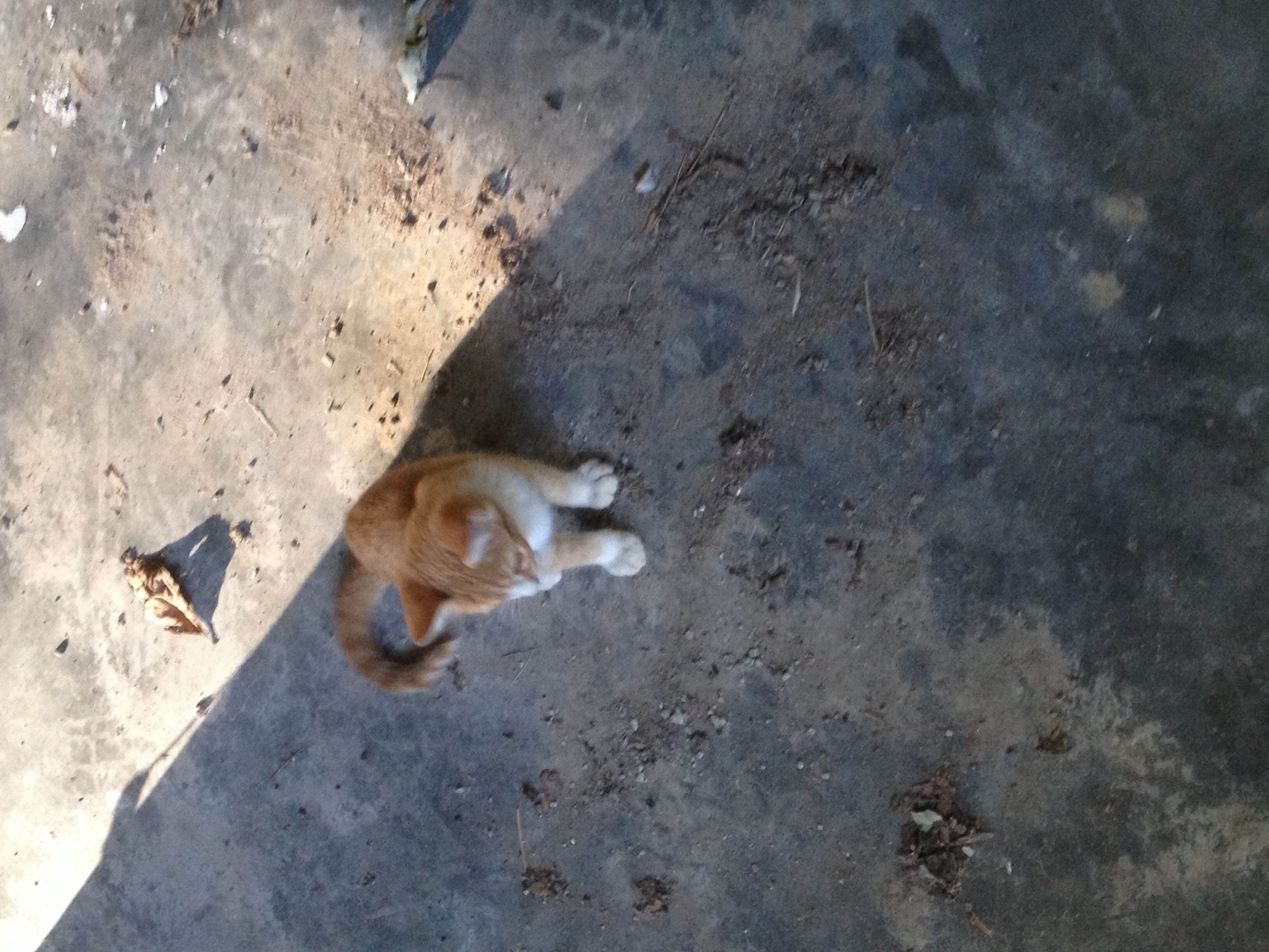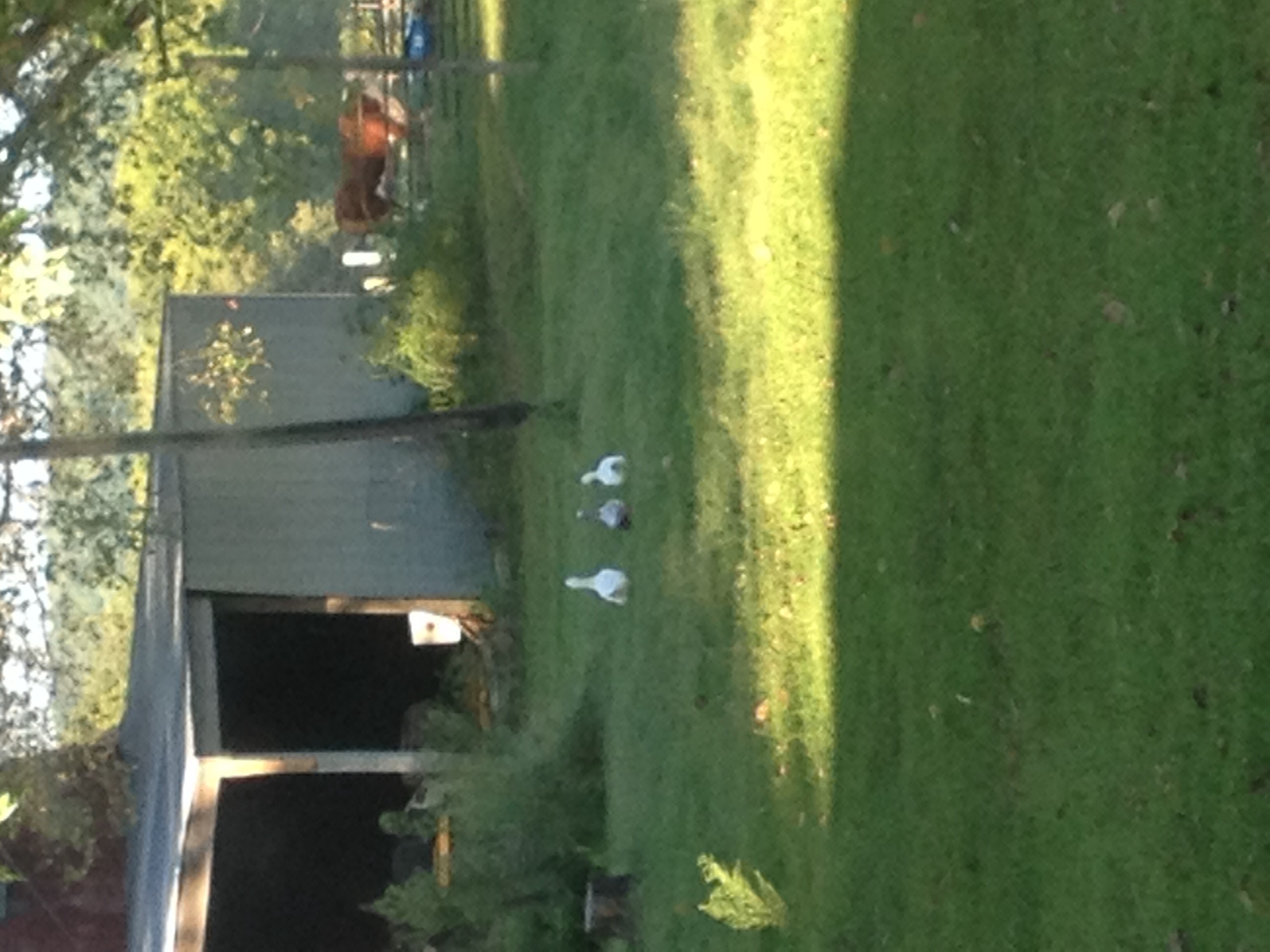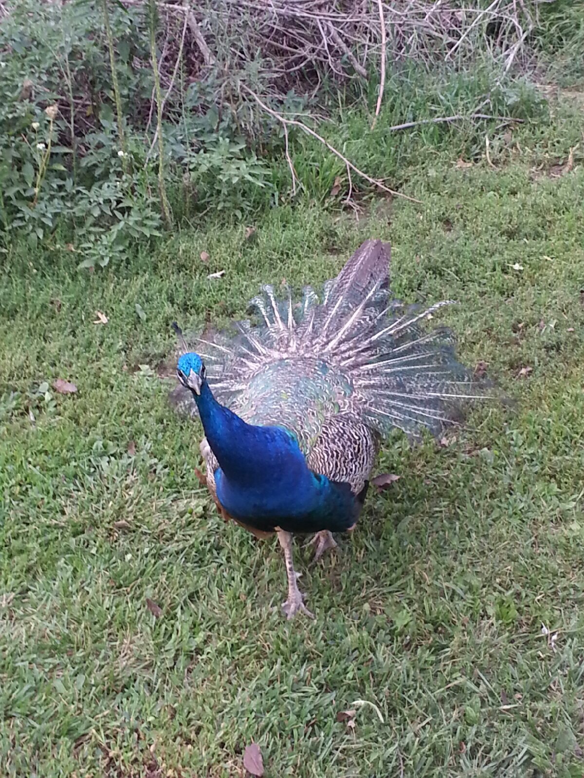 Male & Female Peacocks, my 3 ducks & a cow in the background, my 2 kittens. Only missing my chickens today! I don't name my animals, weird, I know