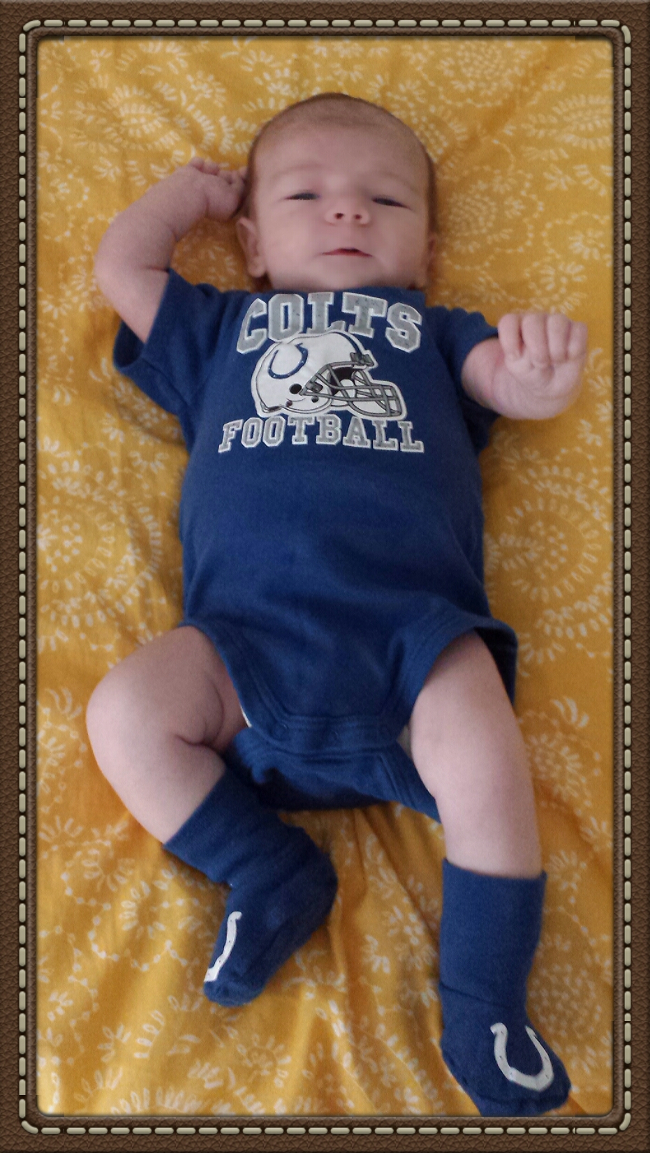 Also have to share a picture of our little Colts fan! :-bd (yes they lost but it's okay we're still fans). He was pumped up until the game started and then he was out.