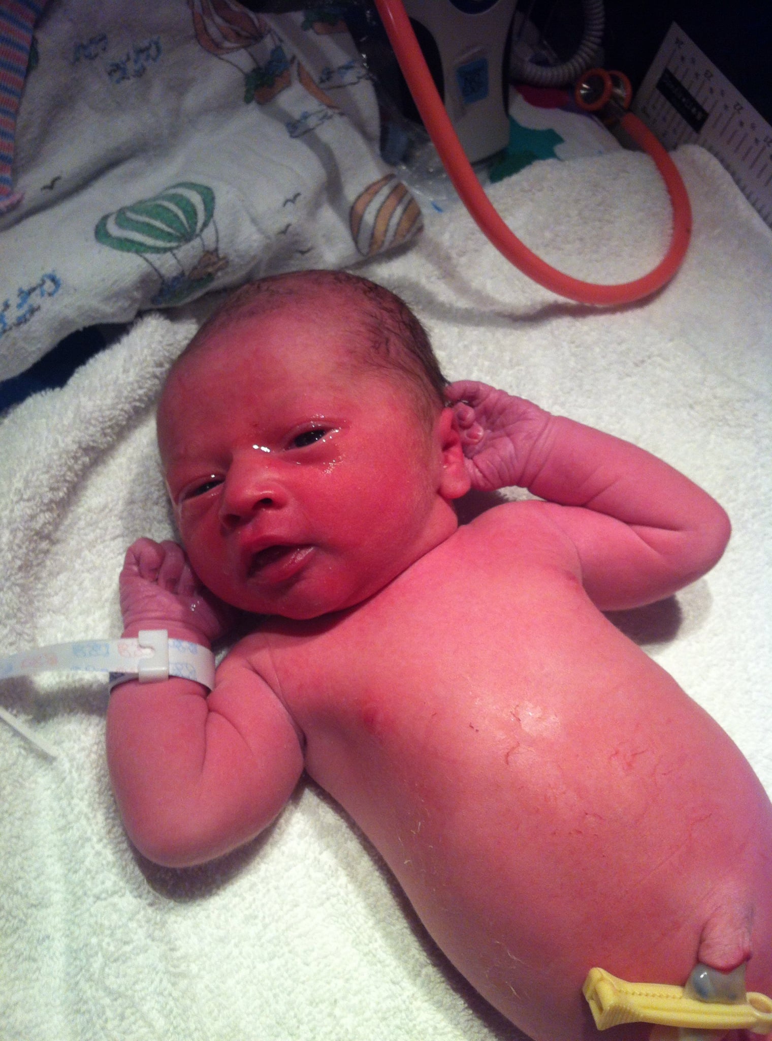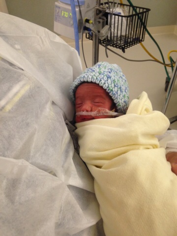 Here's my boy! I'll write out a little birth story with details in the morning but bottom line, Grayson is in the NICU and will be for a while but he's doing MUCH better than anyone expected. No cpap, incubator, etc. Just a small IV for feeding since he's not got that down to a science yet. Thank you all SO MUCH for being able to share this awesome journey.