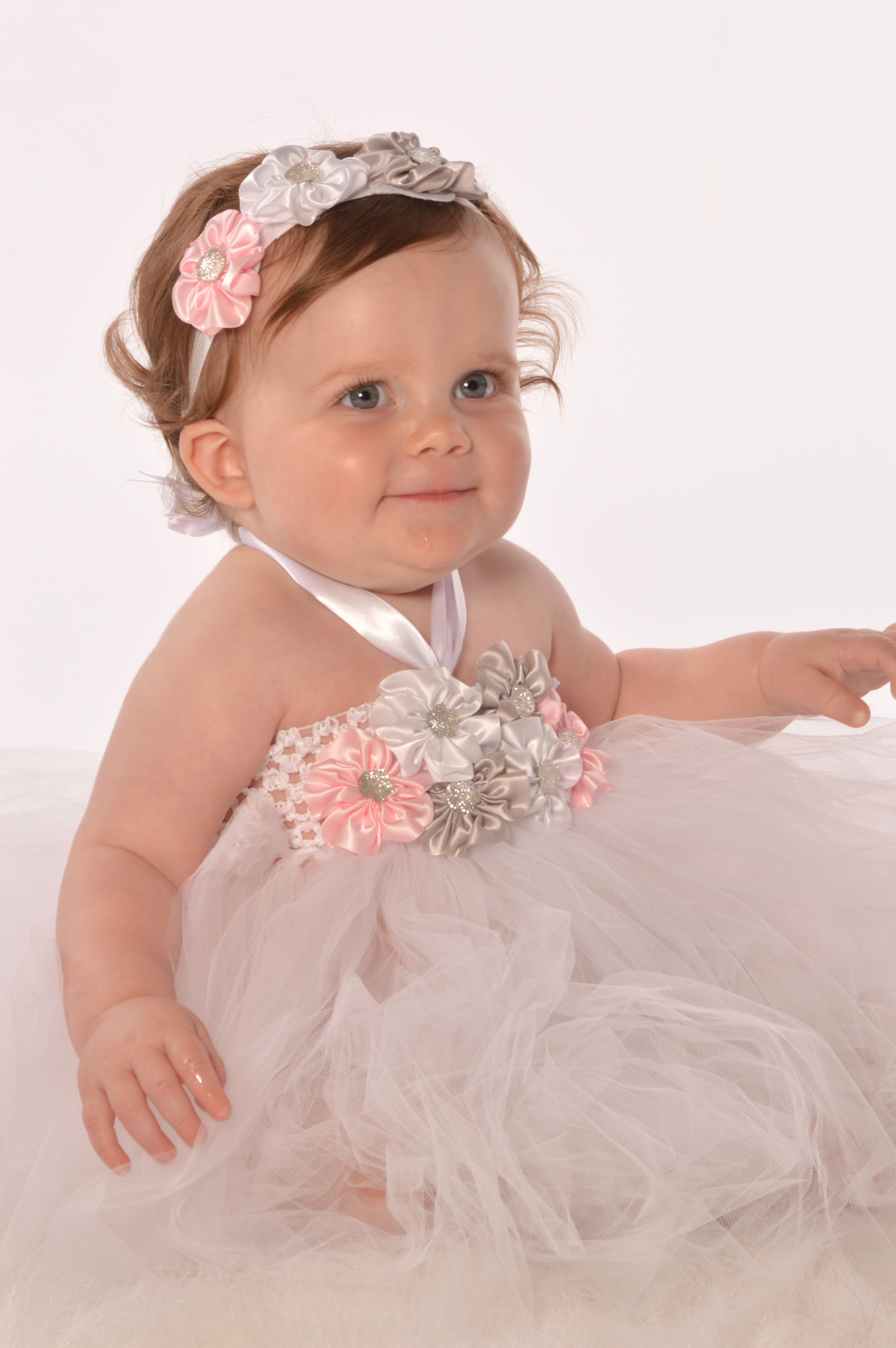 I took Addie for her 1 year old photos today. First, we stopped at the Dollar Tree to get balloons inflated. I was told they don't inflate latex balloon. Fail. Then I got there and got her dressed in her onsie and tutu. She cried every time I put her down for the pictures. After a half hour, we gave up. Then she had a poop explosion on the way home on her tutu.