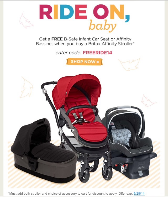 They are offering a Free Britax B-Safe infant car seat or Affinify Bassinet when you purchase a Britax Affinity Stroller.