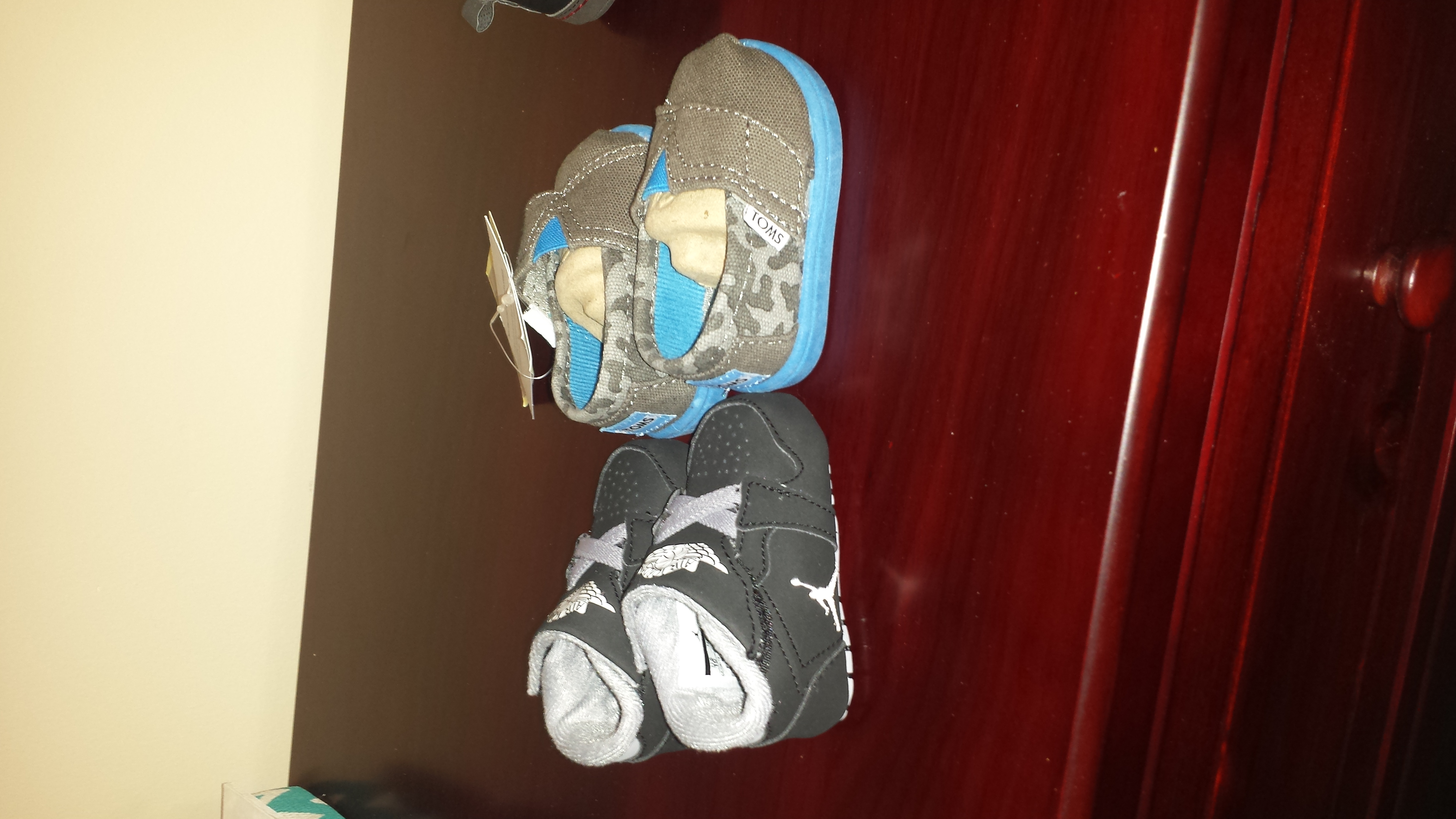 I had the best shower saturday! It was nice to catch up with friends and family! We got so many goodies for our little guy, we are so beyond blessed! Yesterday we spent the day starting to put the nursery together and I'm loving it so much! Completely exhausted today but so worth it! Puts my mind at ease that we are marking things off of our long list of things that need to get done in the next 9 weeks! I have attached a few pics from what we got done yesterday, a couple from my shower, the baby explosion in my living room, and of course the little baby shoes I got for gifts because they're so stinking cute just because I'm so excited lol!