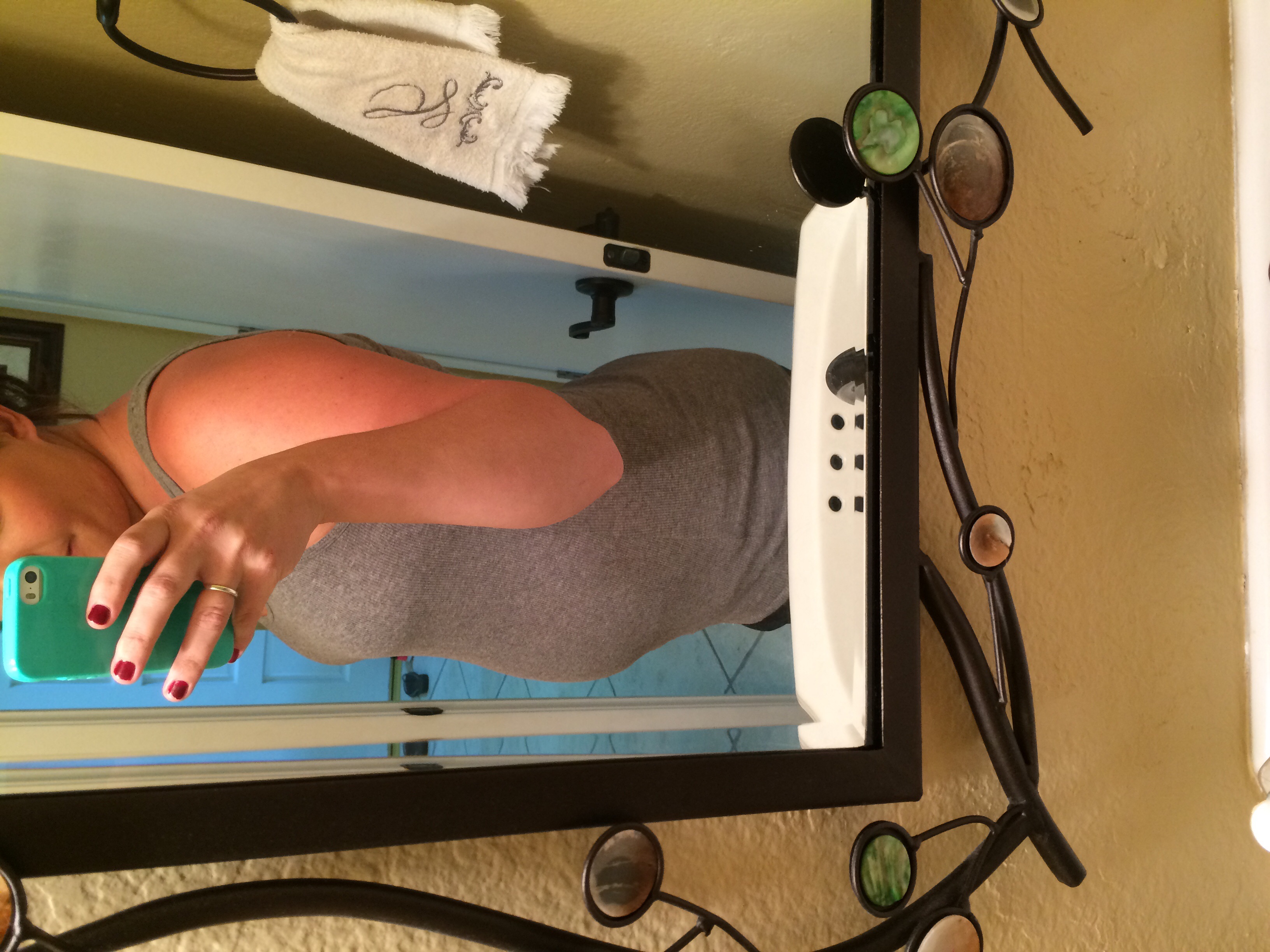 Cannot get over this blump. It's the same size as my 20 week bump from my last pregnancy. Having lunch with my aunt and cousin tomorrow. She's 22 weeks and smaller than this. I'm kind of embarrassed!