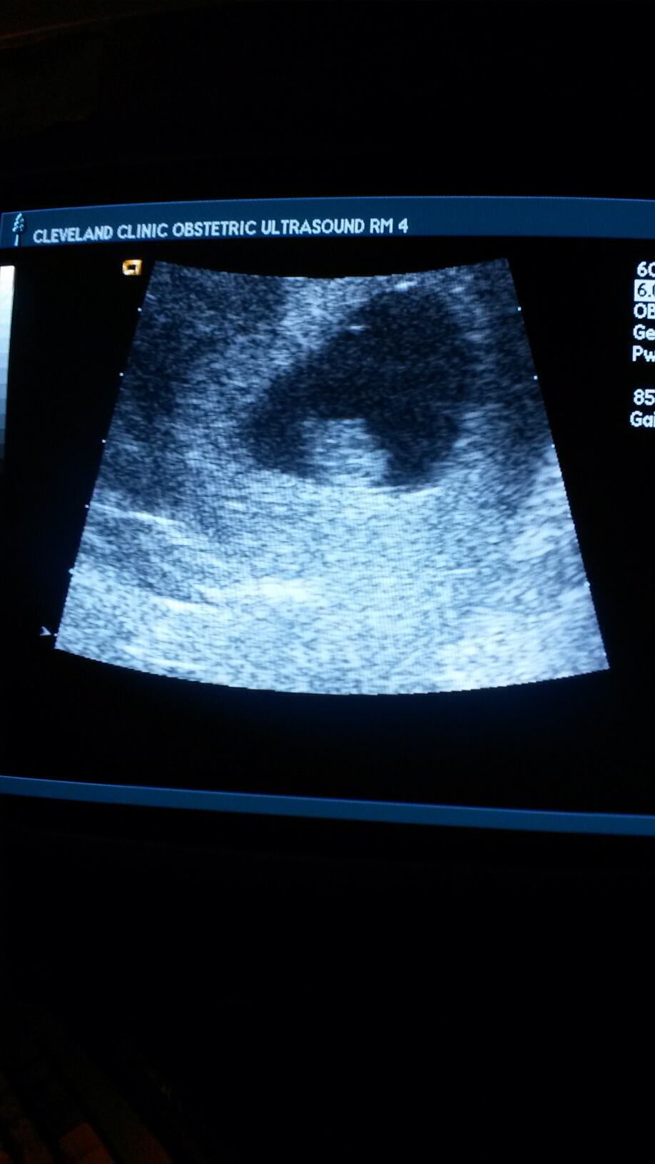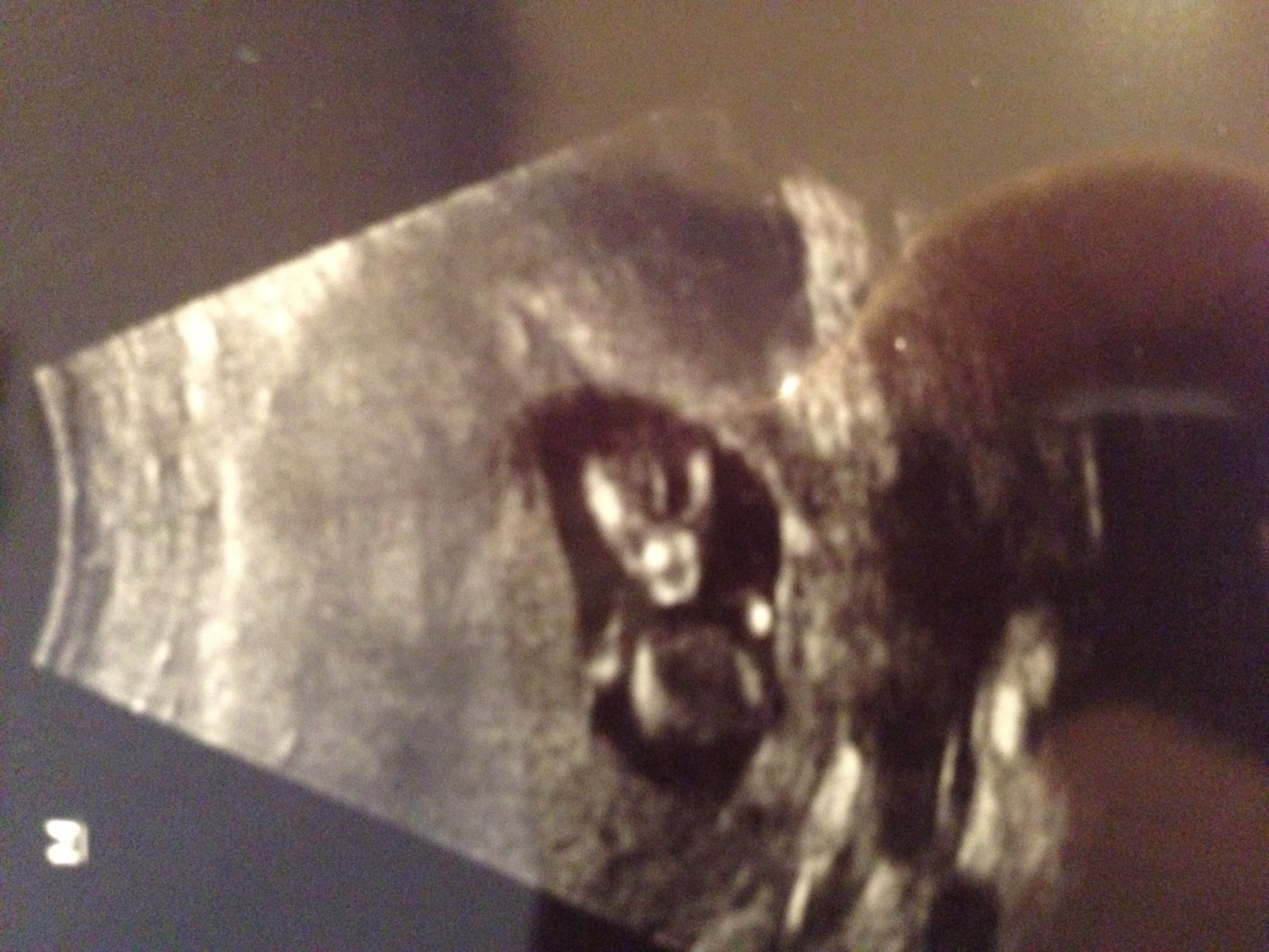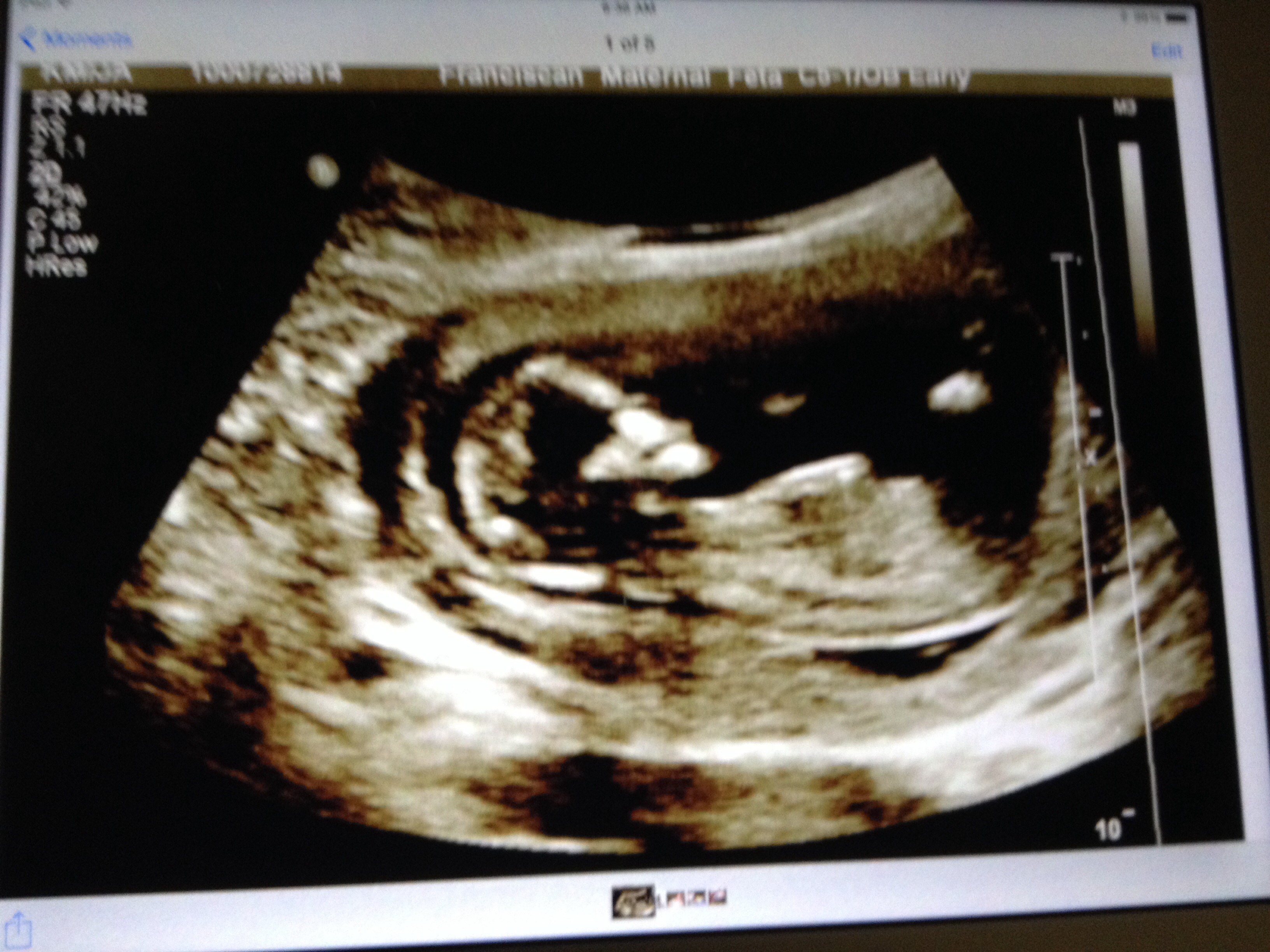 I'm jelly of all your ultrasounds...the one at my midwife's office was crappy, blurry, and didn't print. So DH took a pic of the screen. This was at 8w5d and we saw the heartbeat but don't know the rate. This is surprising because my NP works for a world renound hospital system...anyway, here's the olive! We will get a better one in two weeks.