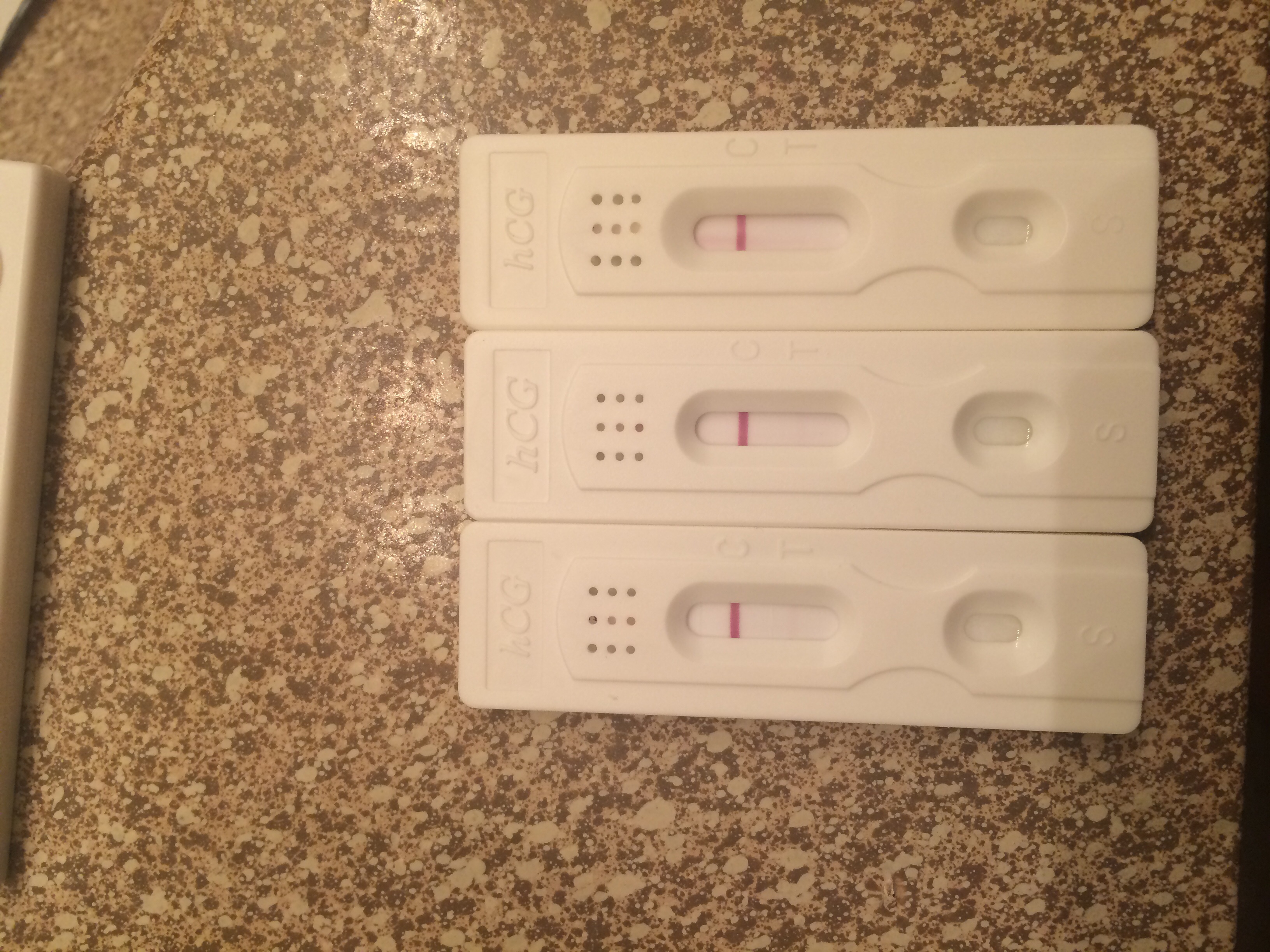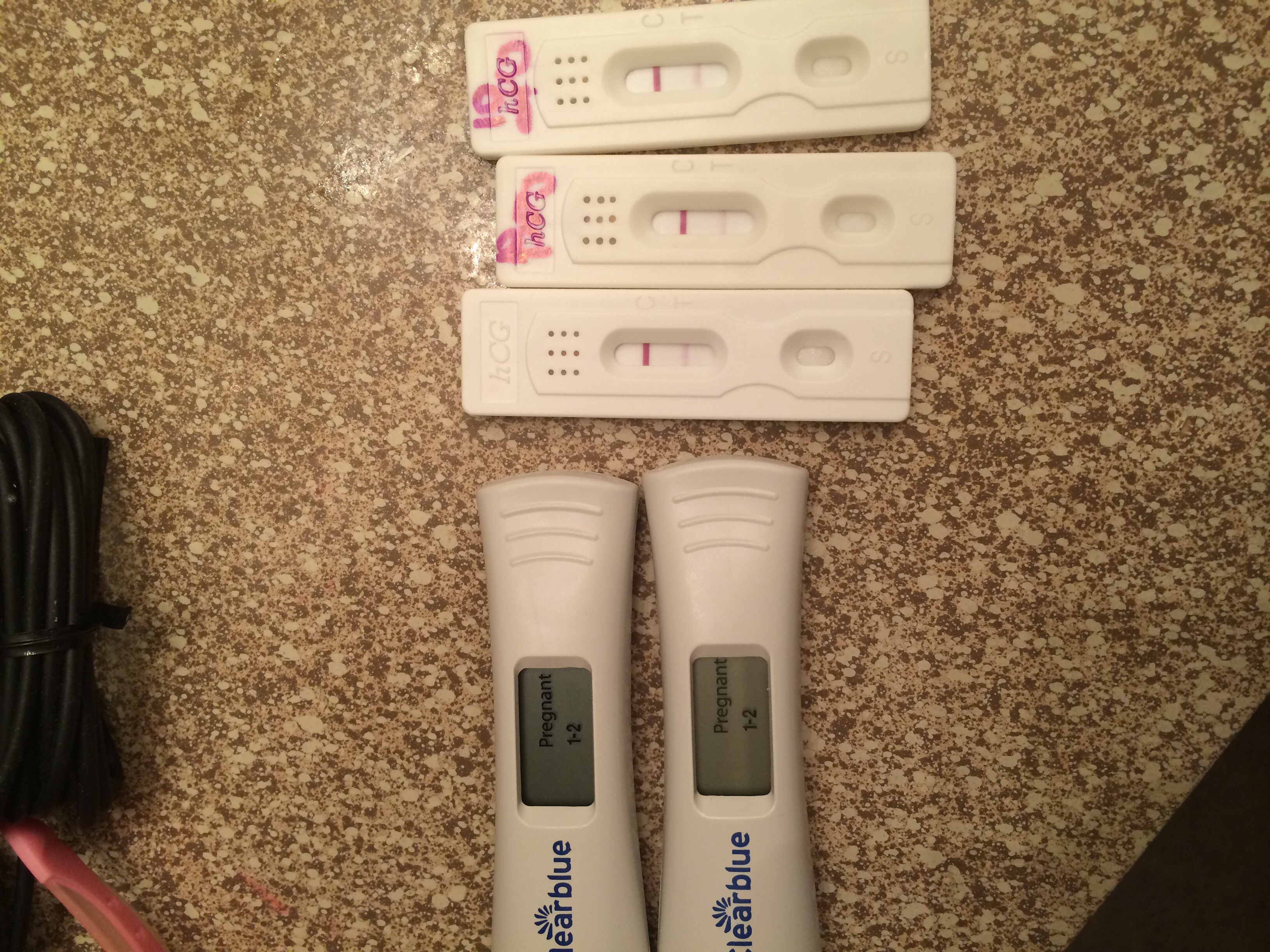 Just for fun I got a Clear Blue ( the new one that shows the week of pg) 3pk for $25. Hubby was like too bad the Dollar one are all negative we will keep trying....turned around to see PREGNANT 1-2 weeks on the counter. I picked it up and nearly poked him in the eye. Eyes got watery, then we sat around the house in complete shock!