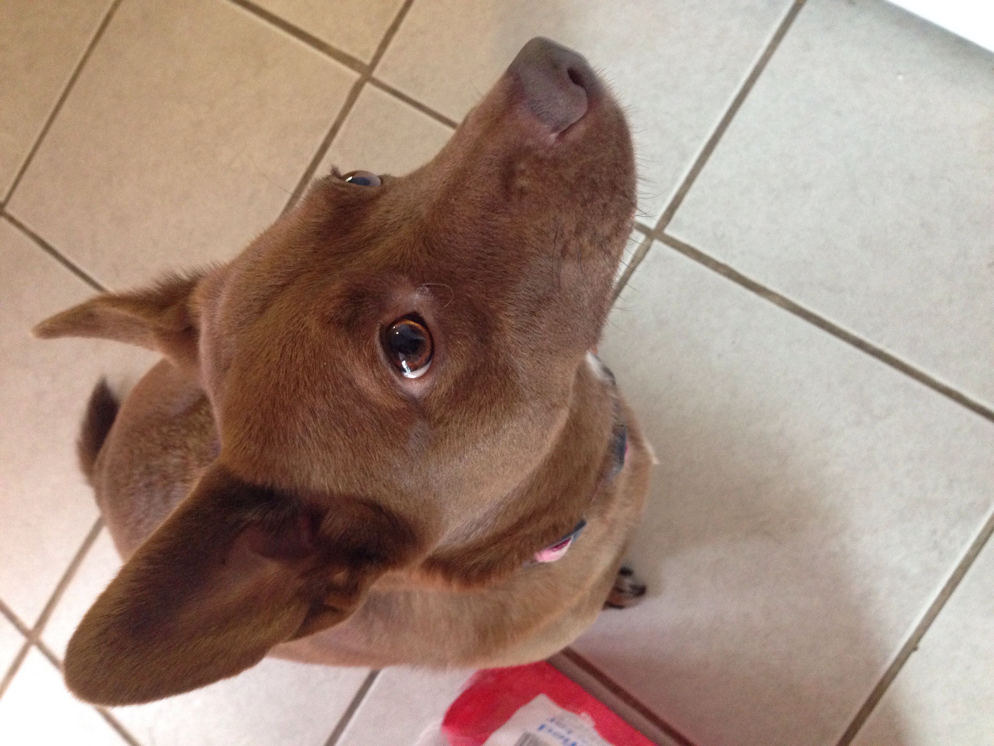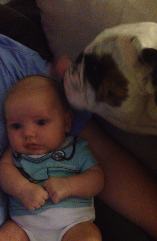 I am still out of town with my friend but here is a picture of her fur baby Winston! He decided he wanted to give Murphy some licks. (We were standing right there and only let him lick him a couple times)