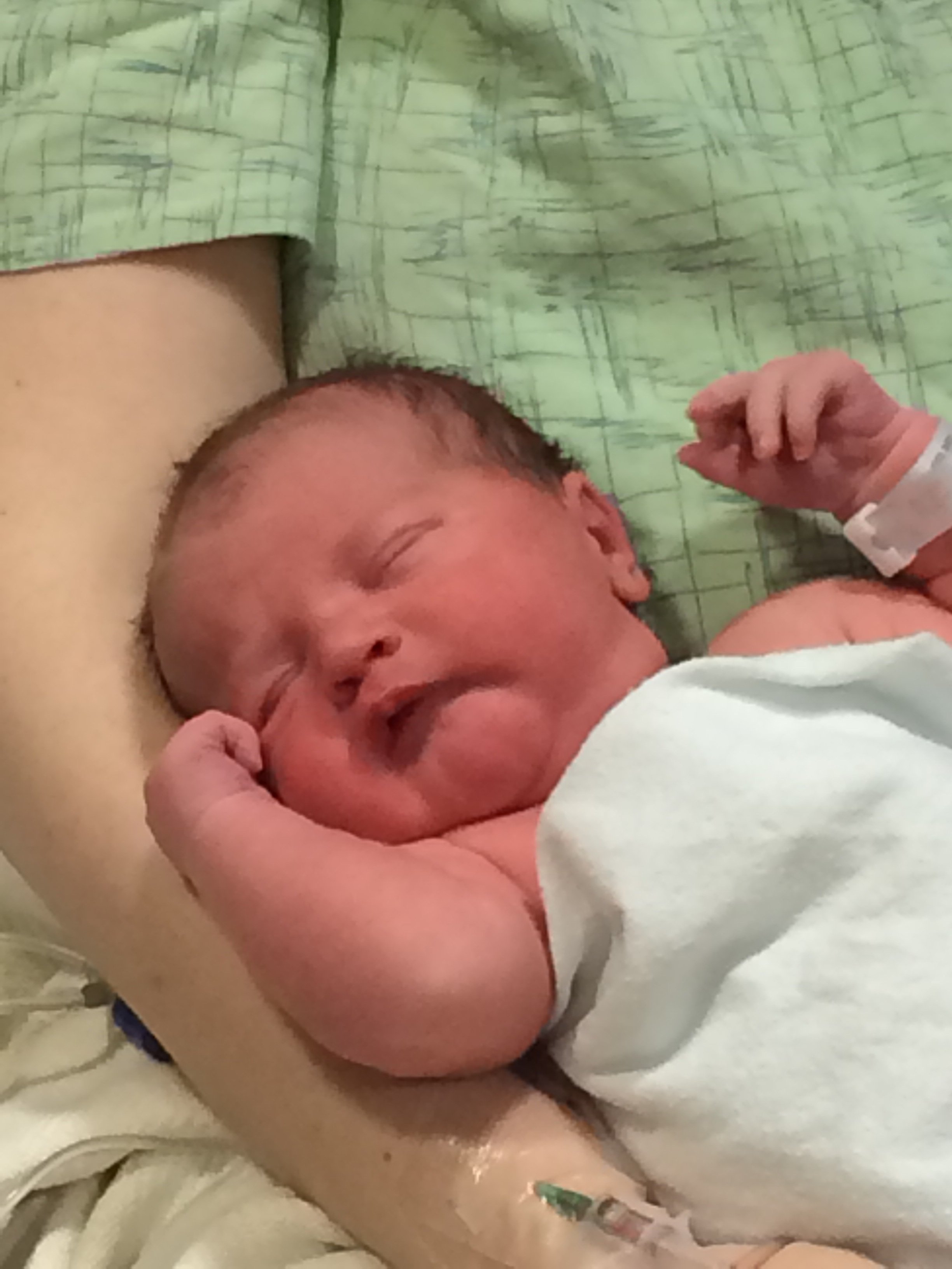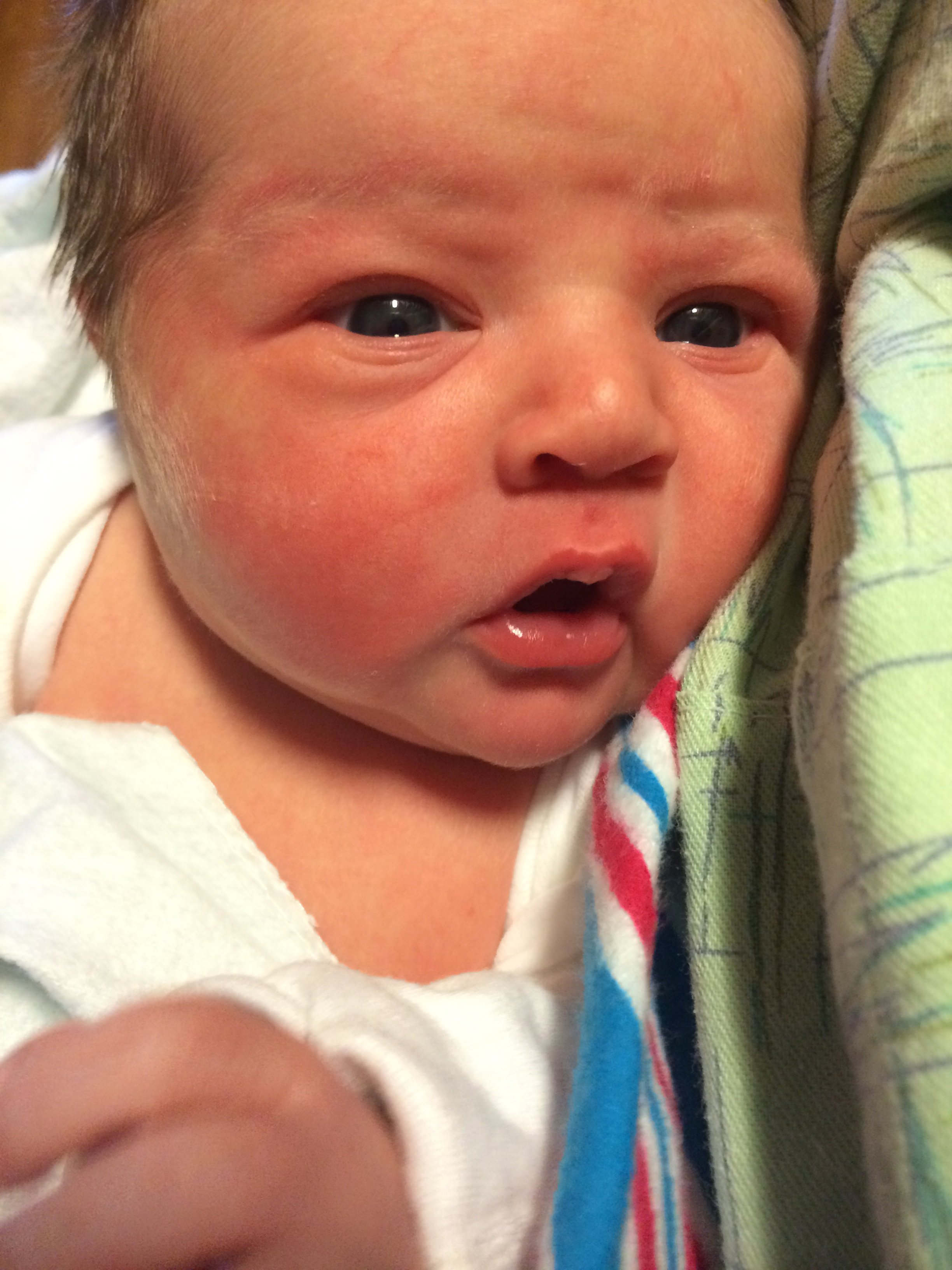 It turned out to be a good thing that we headed in when we did... I was admitted at 8 cm progressing quickly. It was too late for an epi, which I was bummed about, but I was ready to push about 10 minutes after we were admitted, so at least I didn't have time to dwell on it. She arrived on the 3rd push, so about 12 minutes after arriving at the hospital.