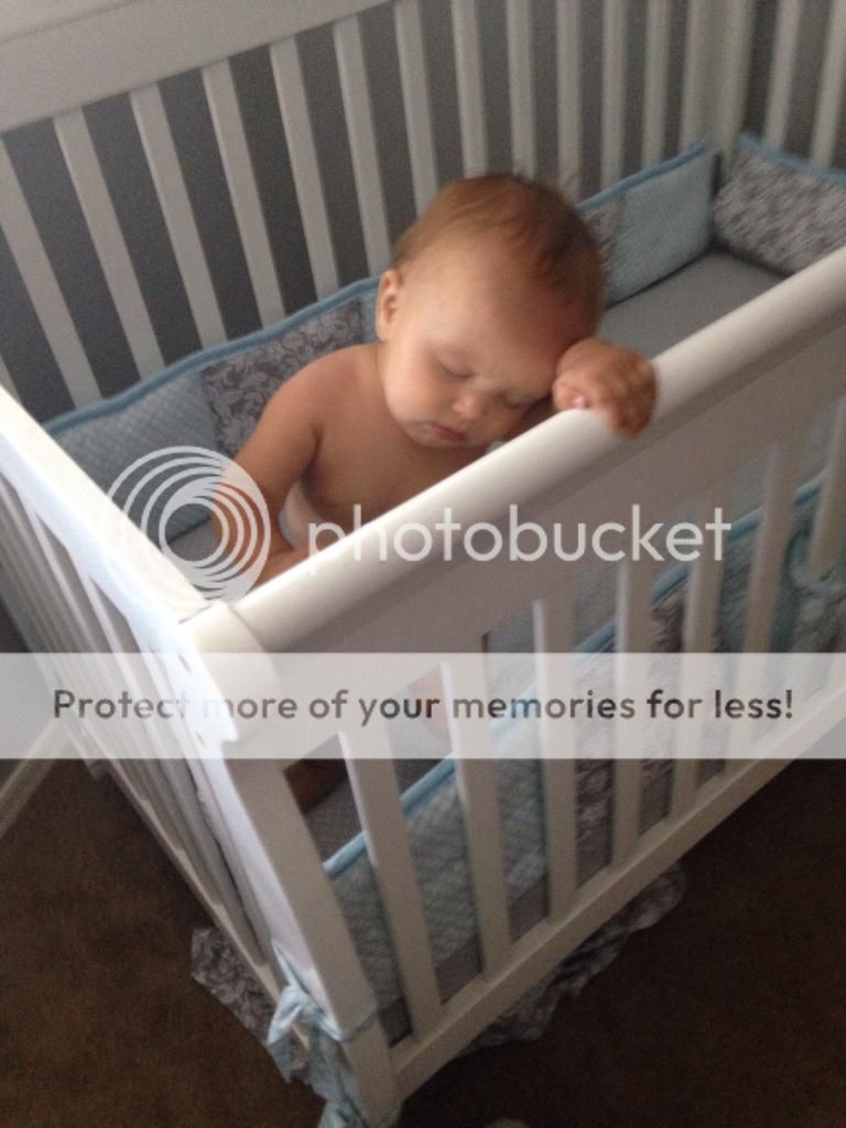 Anyway, after a few rough nights we agreed it's time to start breaking the co-sleeping habit and try to get him into the crib in his own room, so we decided to start by putting him in there at nap time. (He's still been napping in the swing or in my arms…. I know, I know…. spoiled!!) We started to today and to say he was not happy about it is an understatement!!! He screamed and cried and fussed for almost an hour and then he suddenly just stopped. I was right outside the door and when I peaked in to see if he was ok, this is what I found: