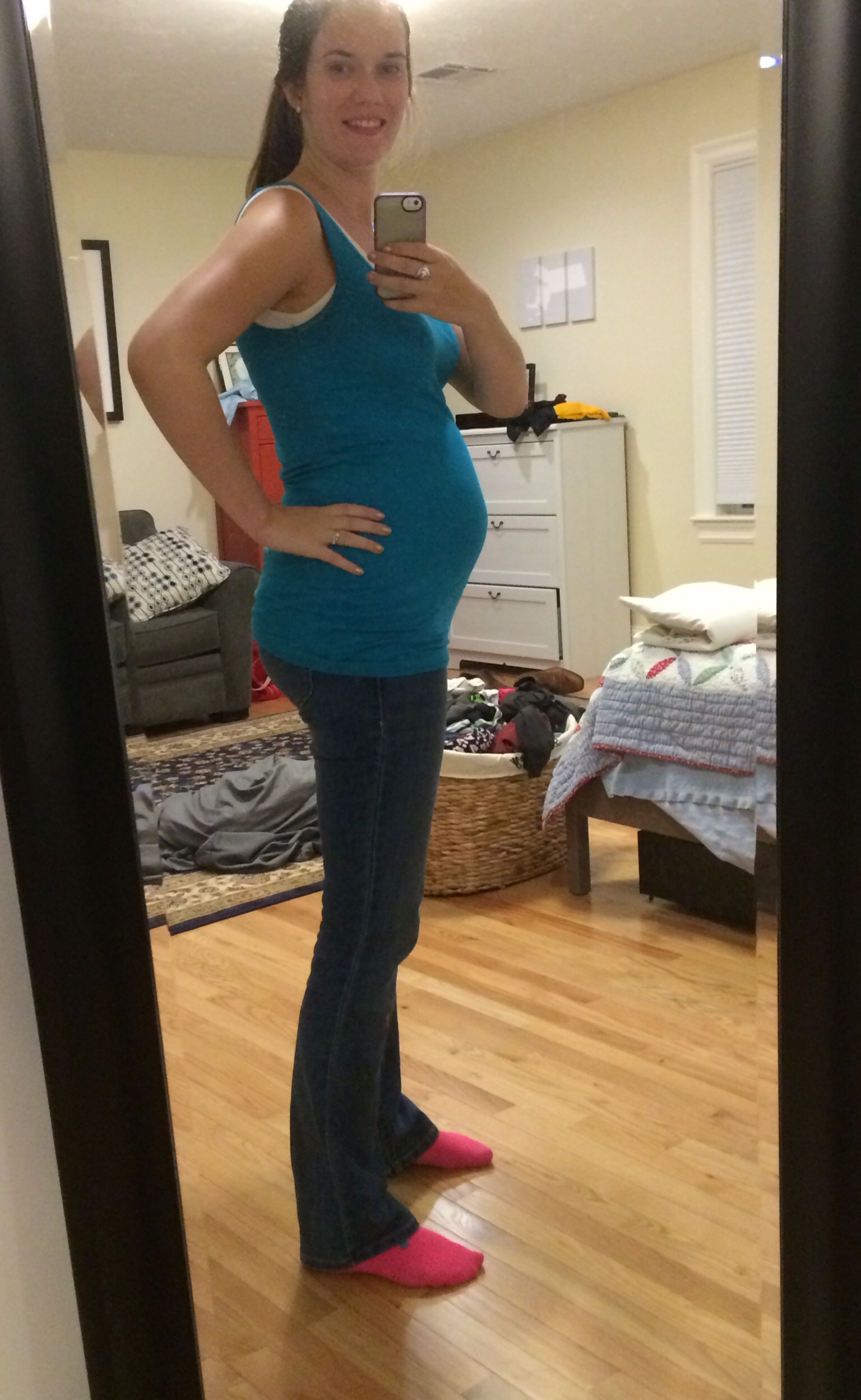 My bump finally popped this week! & I also experienced my first awkward random person belly rub... people really do not care about personal space when there is a baby involved! But I am loving my bump right now, so I dealt with it... and stood guarded the rest of my time at the Cross Country meet!