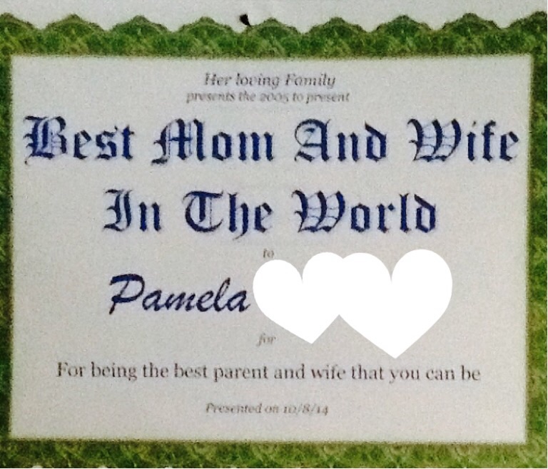 I hope this is ok to post, but I wanted to share my super special gift ( and I've finally figured out how to post pictures; I'm technologically inept). My family has been struggling through some things and I've been really stressed out. My hubby had all the kids go in his office and sign ( that part is on the back) this beautiful award. I feel like a failure a lot of times; I'm so blessed to have a family who feels the exact opposite.