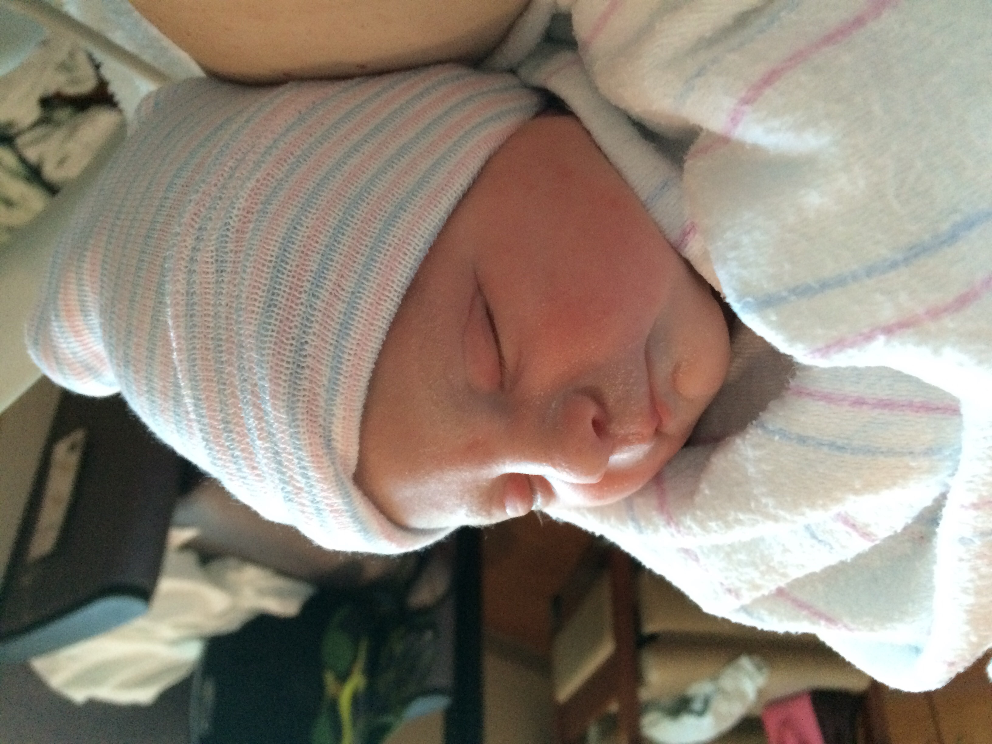 Well, 8 and 10 cm came pretty fast and at 3pm I was pushing! I pushed for 30 minutes. Apparently I had impressive feeling in my legs and control of my legs and core as the OB and 2 nurses commented on how surprised they were at my pushing form and control.