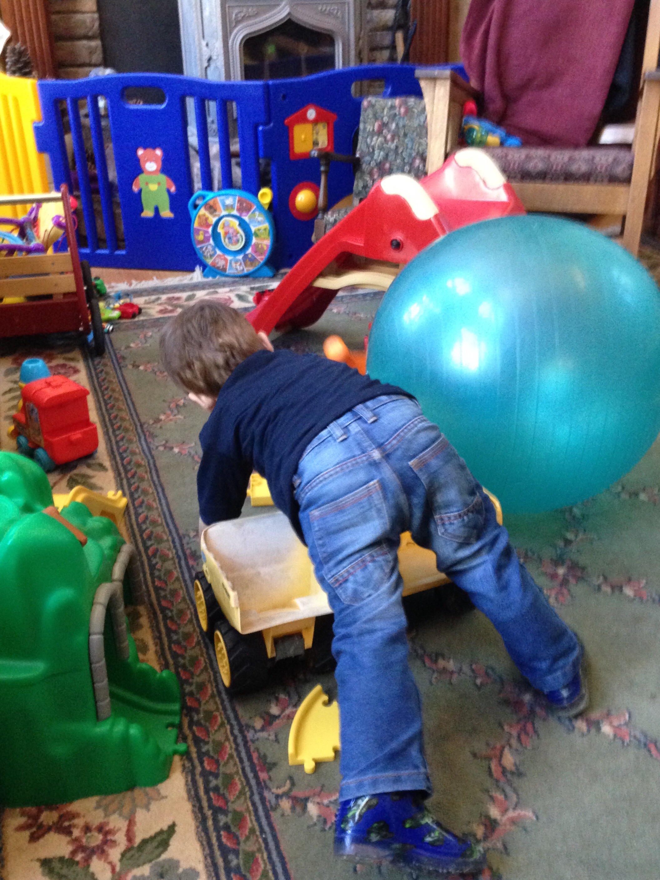 Cute! My mom sent me a pic of DS sitting on his little training potty, but I won't share that here. He was looking quite proud of himself. Also this one driving two dump trucks at the same time.