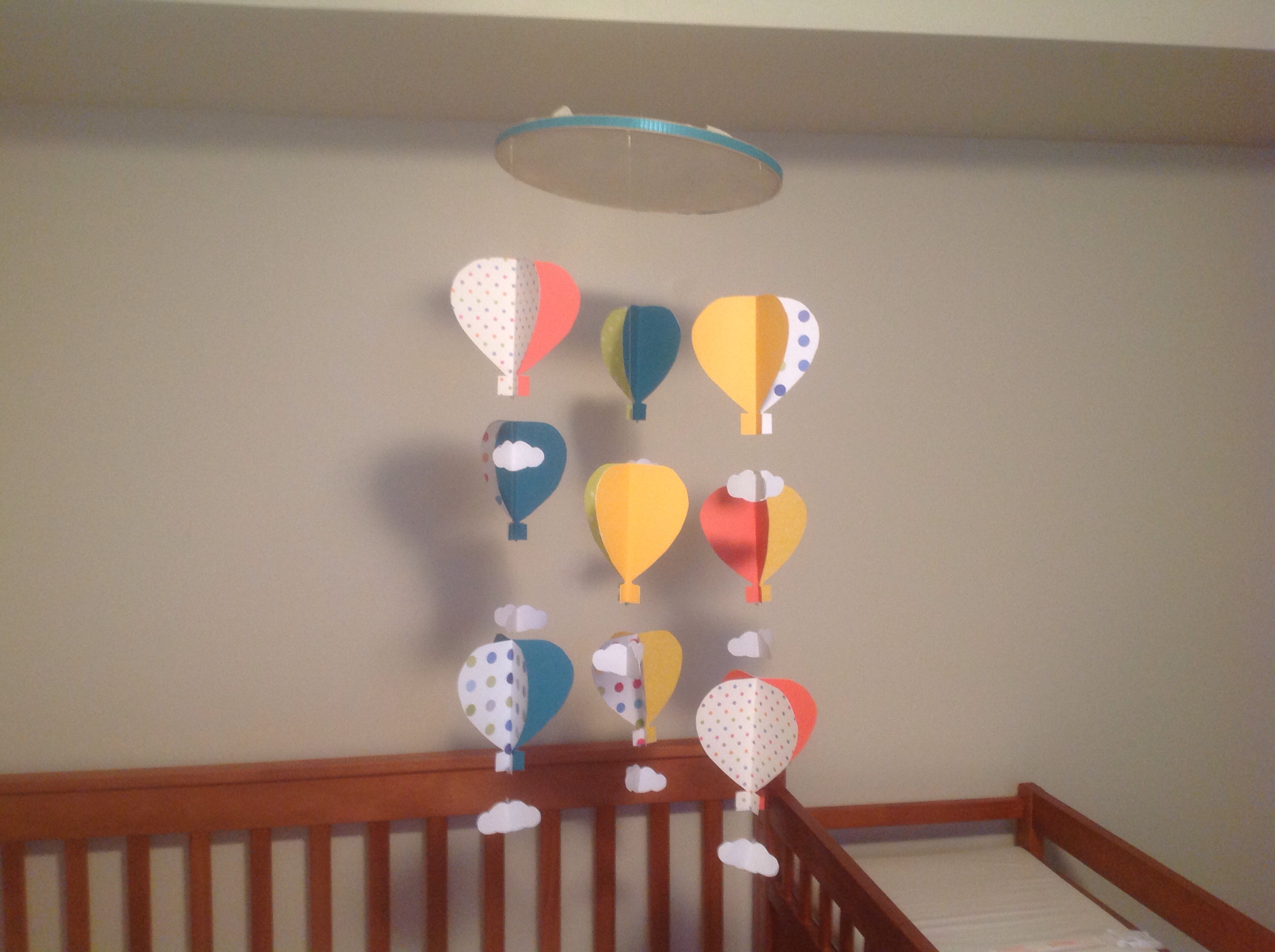 Well, I am jealous of all you ladies who are sewing and knitting these adorable things. I am at the scissors and glue level. . I just finished up my mobile, which is really too large, but still cute.