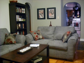 This picture is a bit older, but we have since added a burgundy area rug that goes nicely with the rest of the burgundy accents in the room.