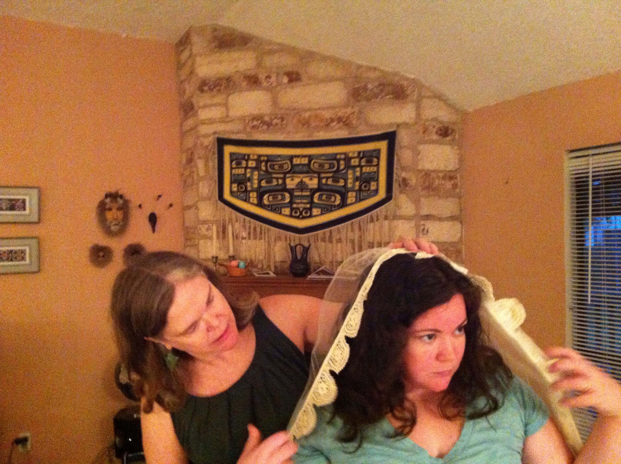 And just for maximum AW value- this picture of me and mother, just after we unboxed her wedding dress for the first time since her wedding. She's trying out her veil on me.
