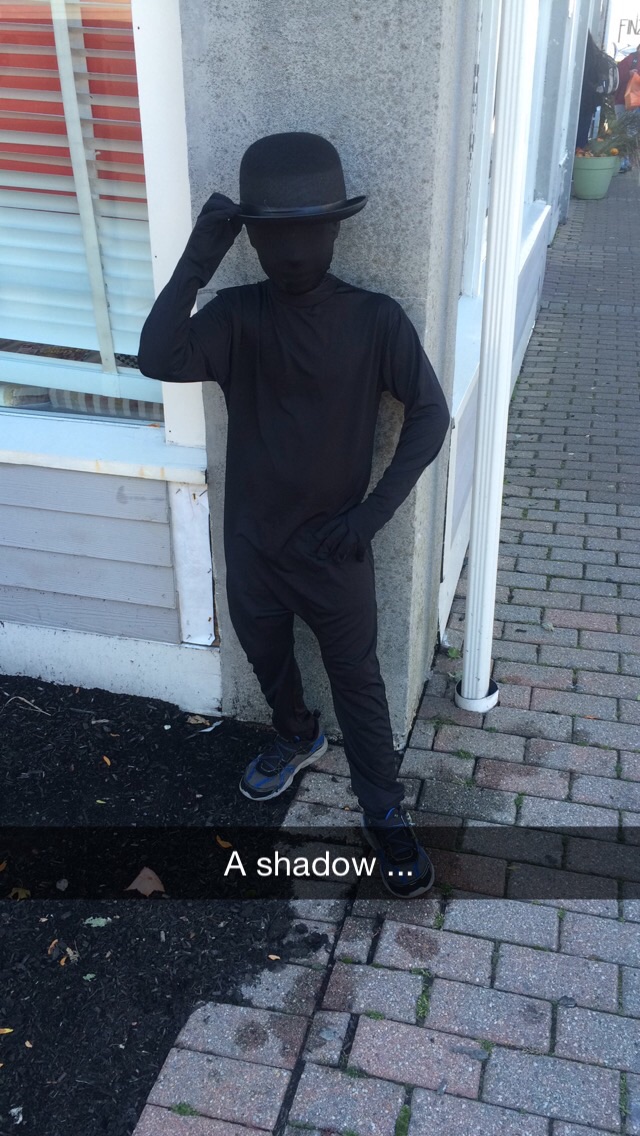 he absolutely loves we get a month of halloween... This is his second year as a shadow which he thought of himself and he wears and dances around town.