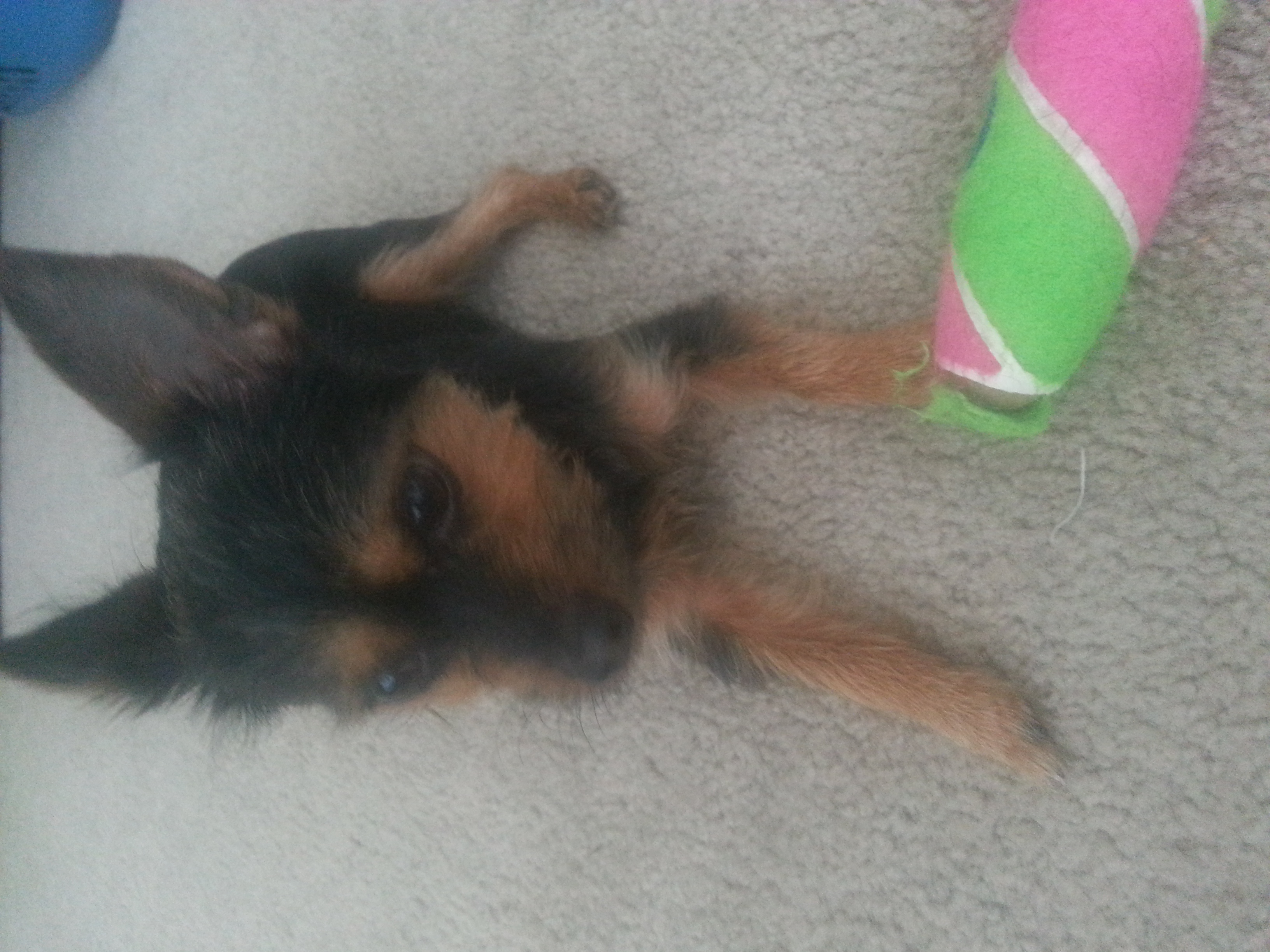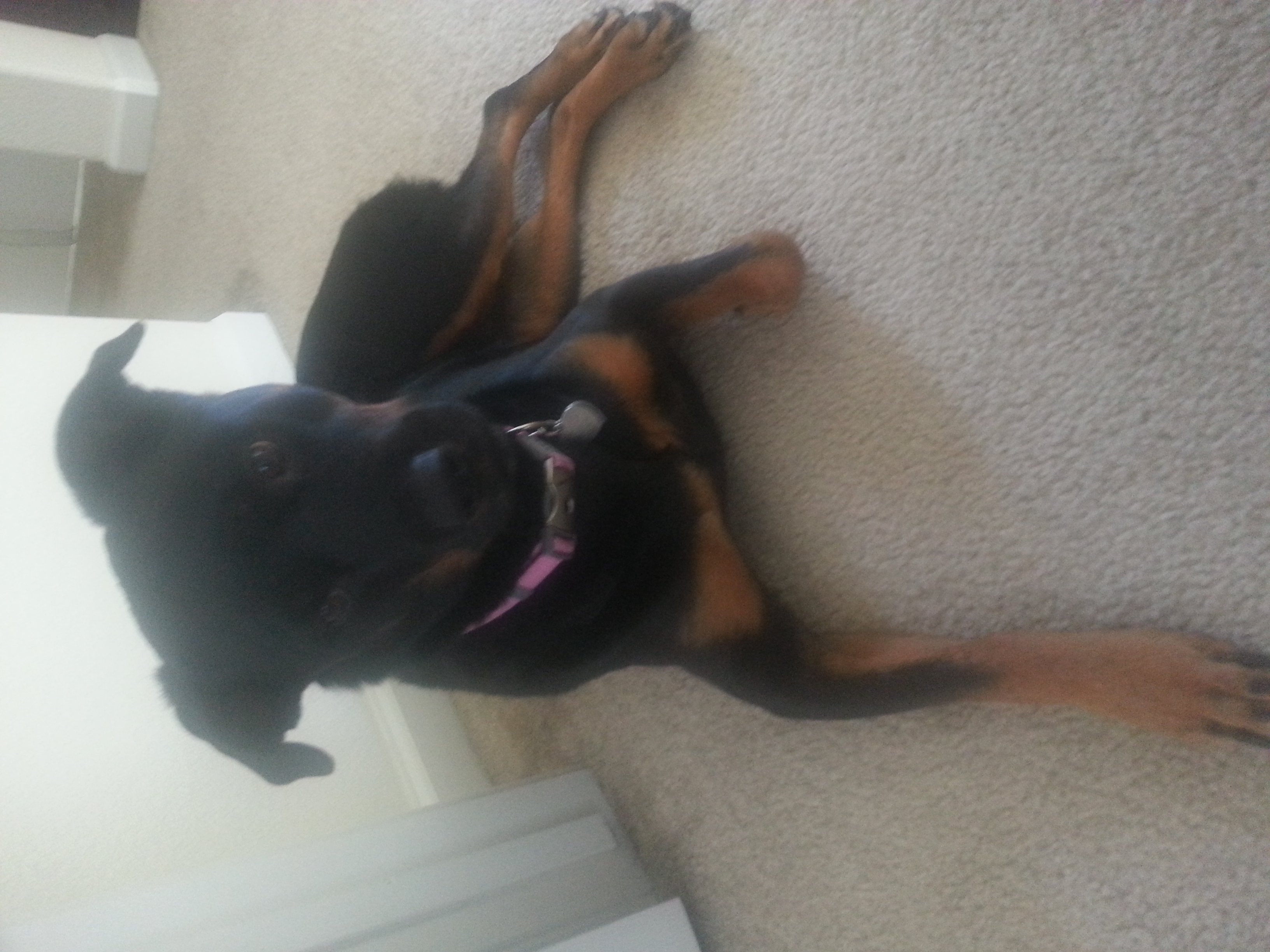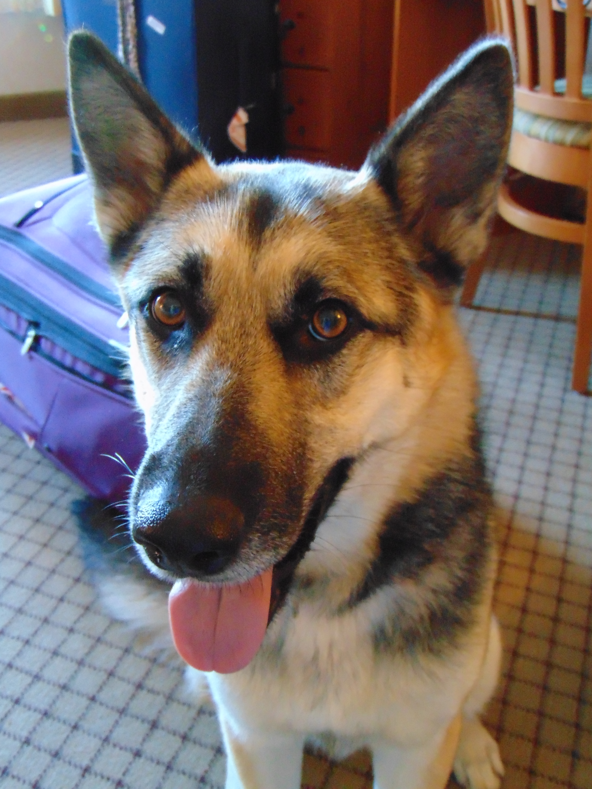 This is Buttons-She is a rescue German Shepherd/Husky mix. She is about a year old, super hyper and annoying but we love her so much.