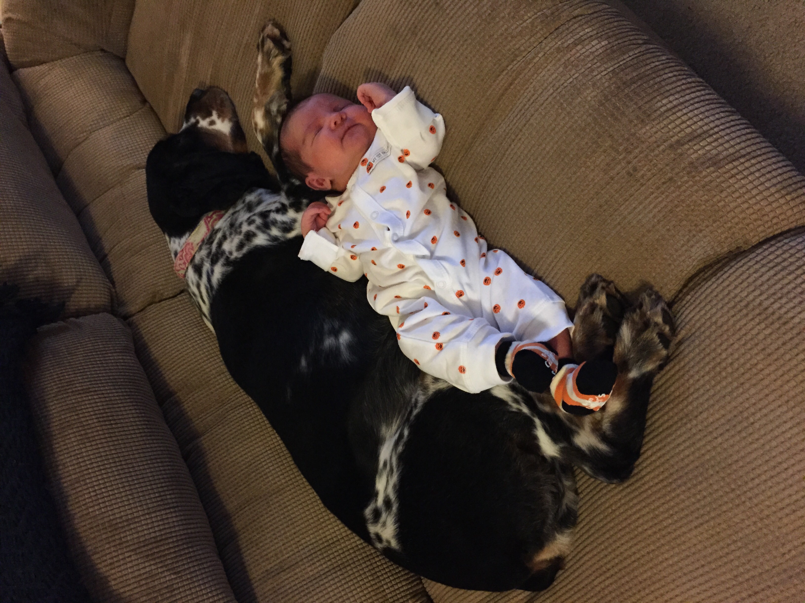 • Here's our springer spaniel. She has adjusted very well to the baby! She's a good girl.