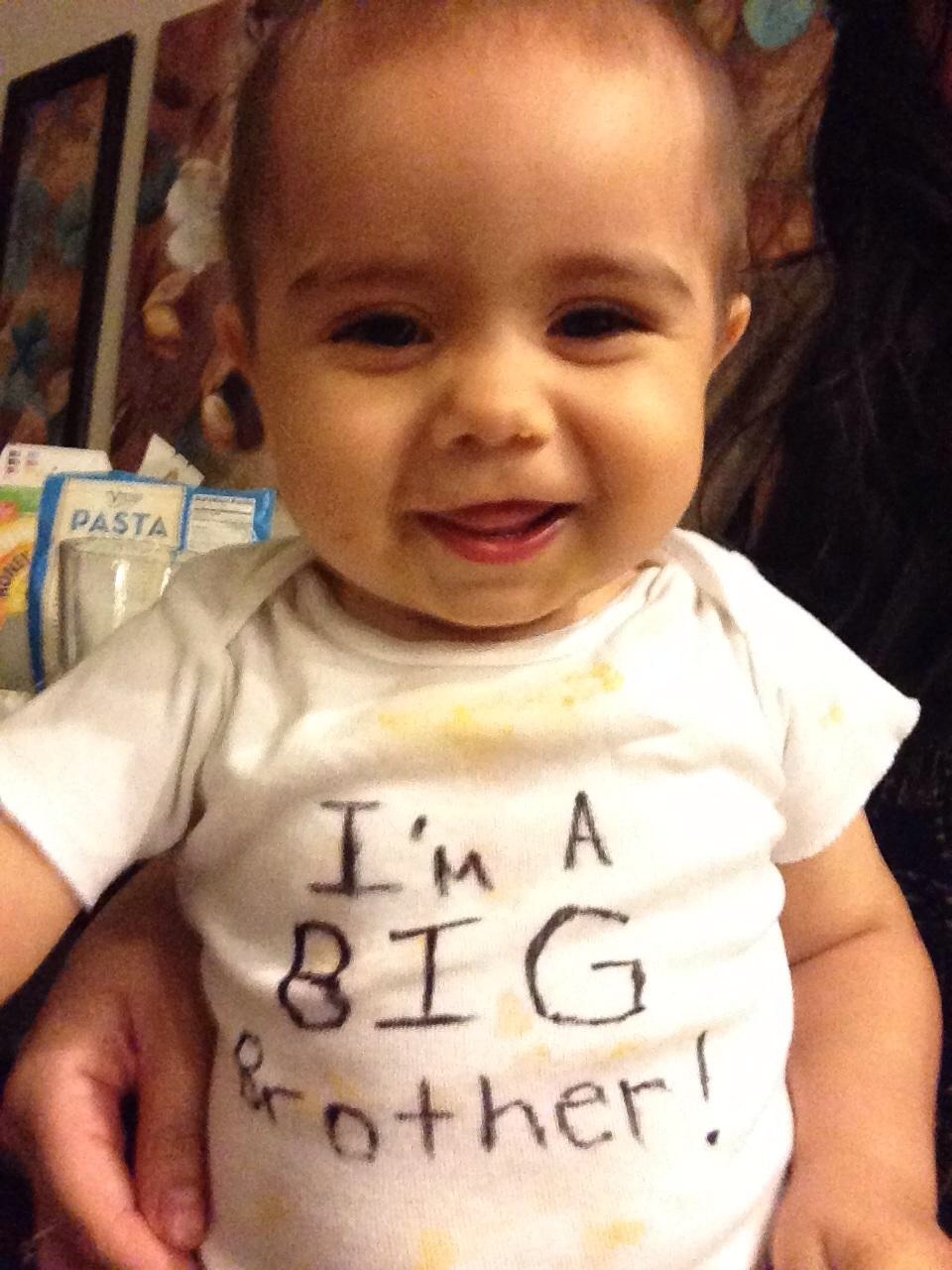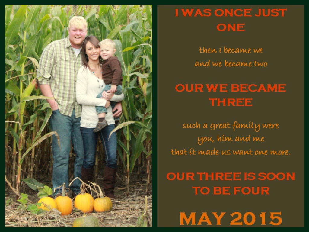 We haven't fully announced yet, but when we do this will be what we use. He's excited to be a big brother Sorry it's so big. It wouldn't resize right =(
