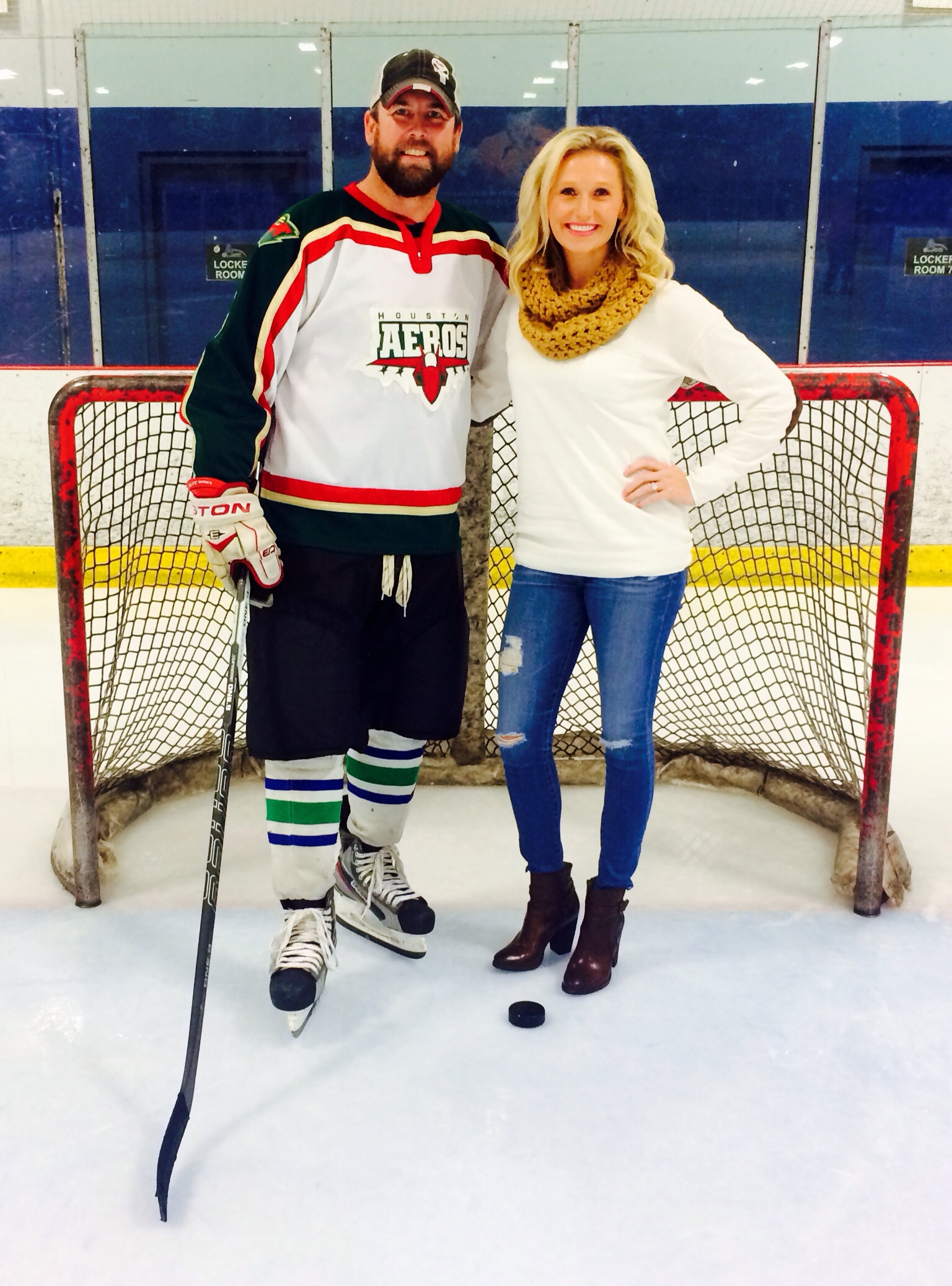 My husband plays hockey four days a week so this was completely his idea! "After all these years, I had to pull the goalie to score! Baby Due May 1st!"