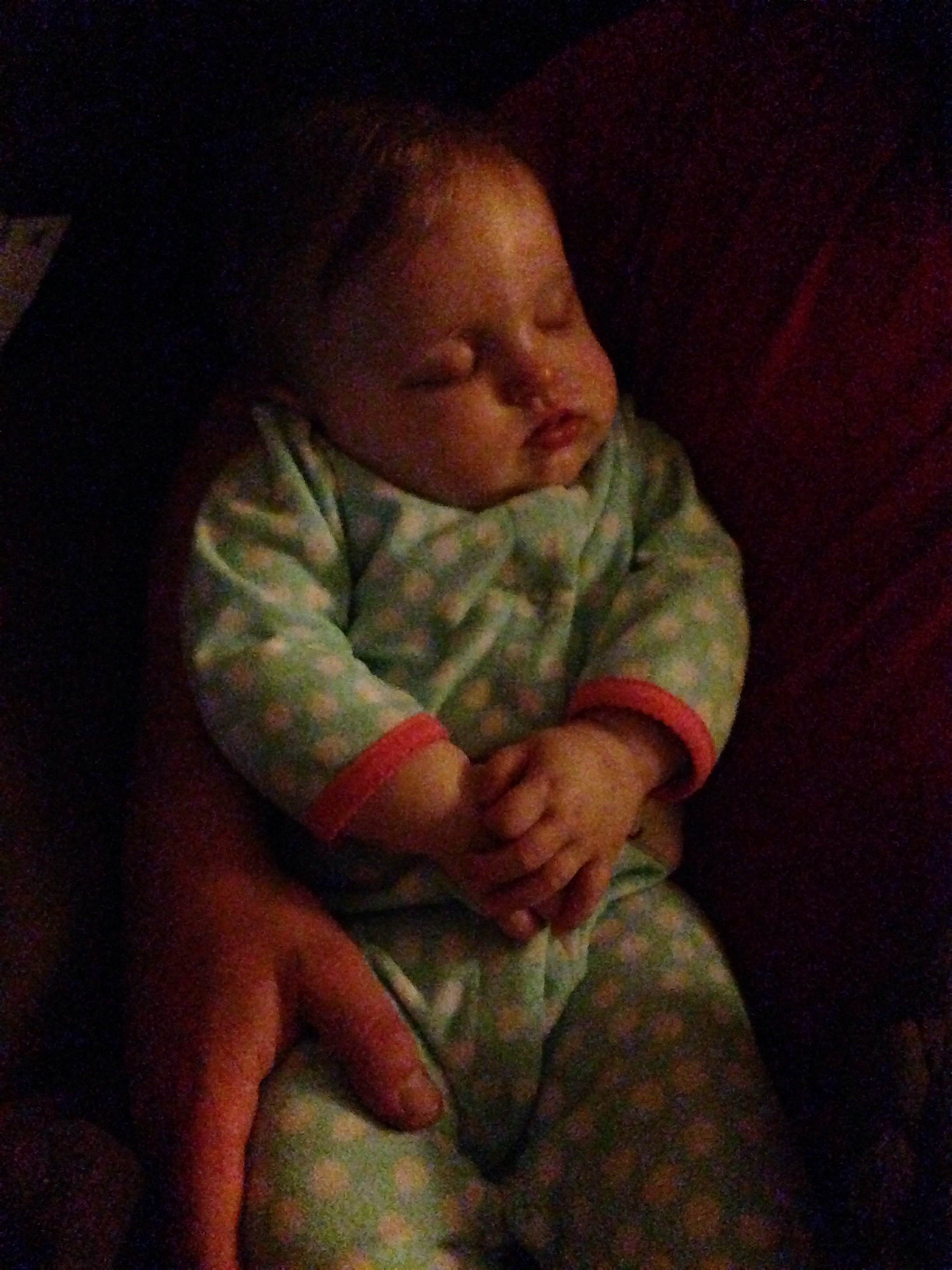 Successfully kept DD up an hour late tonight. Hopefully this means time change transition will be okay?! I can hope, right? She's passed out on DH right now.