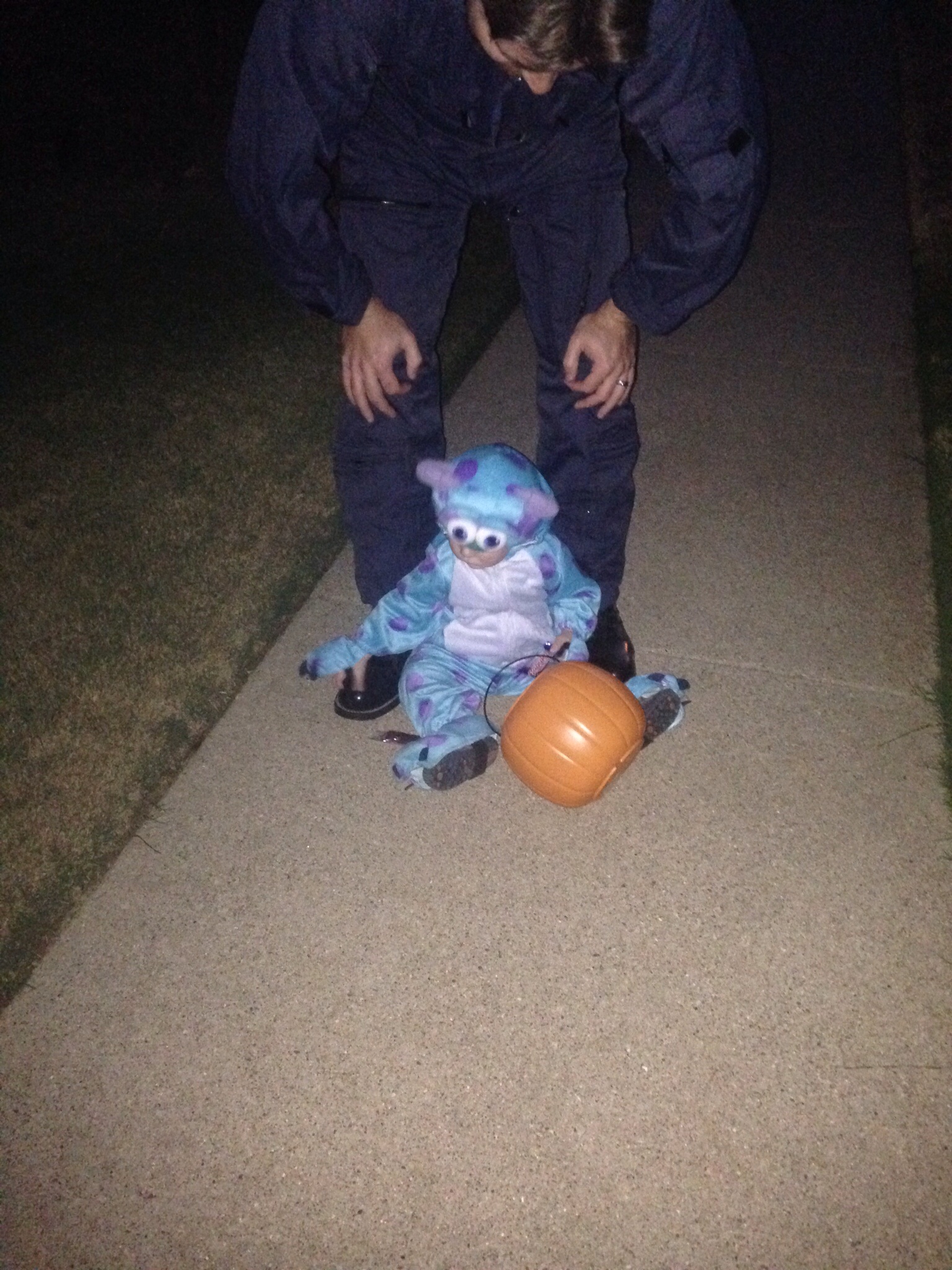 Mr. Sullenberger went trick or treating with his momma and dada, and decided halfway through to take a seat and analyze his stash.