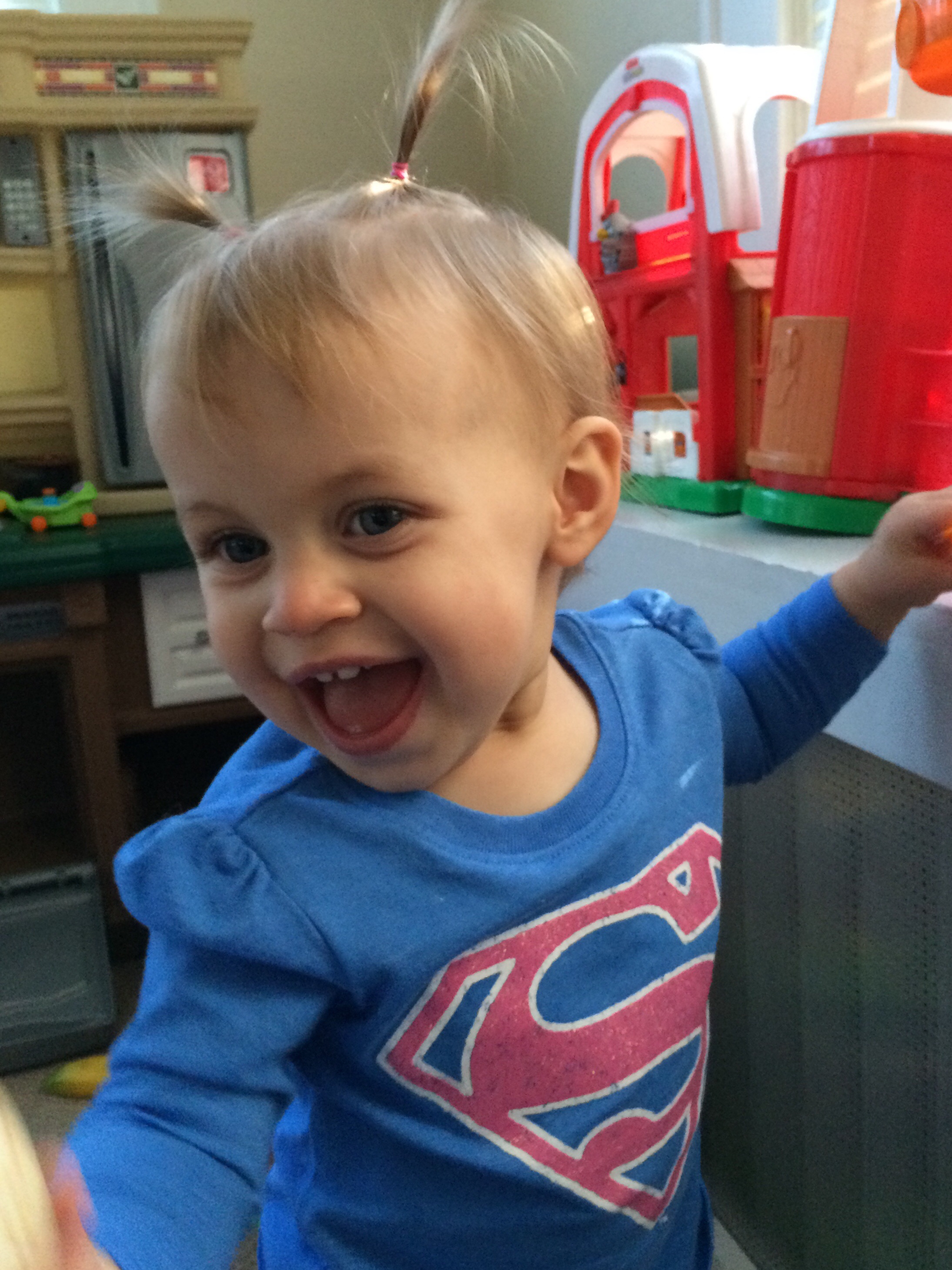 Clara at a weekend BBQ with our friends' kids