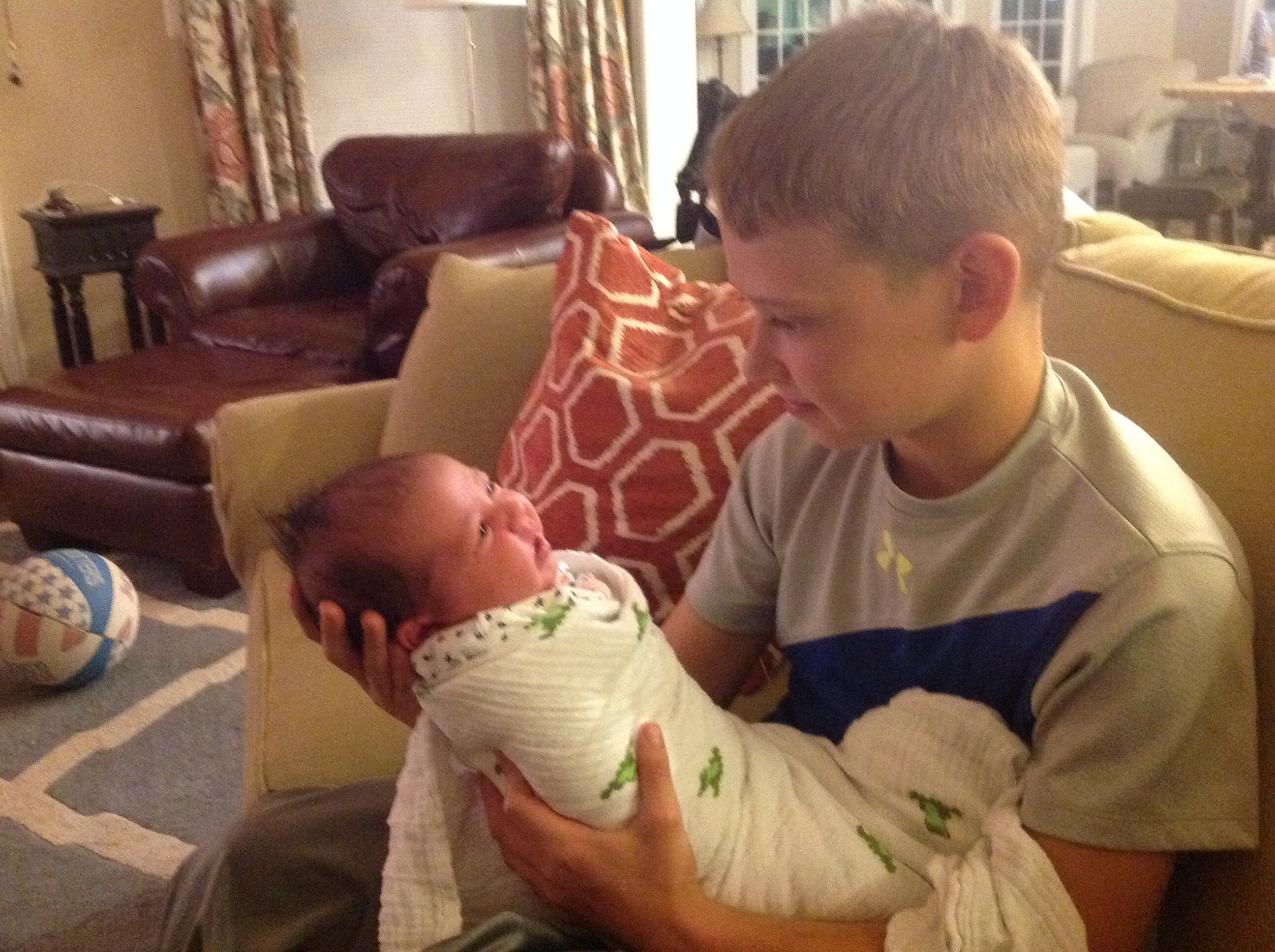 • Rogan has my eyes, fingers, toes, and expressions. He gets pretty much everything else from FI, including his loud poops/gas.