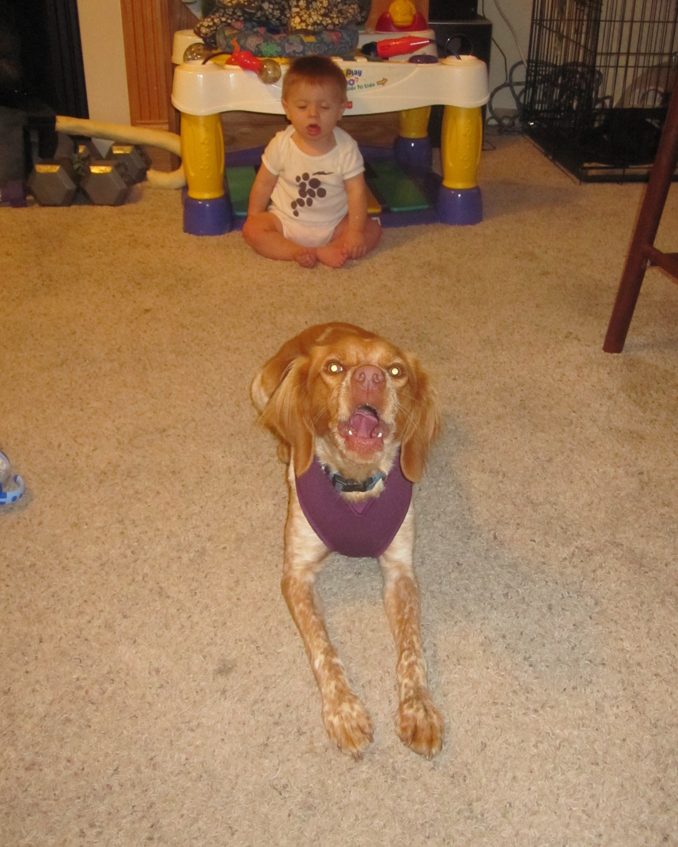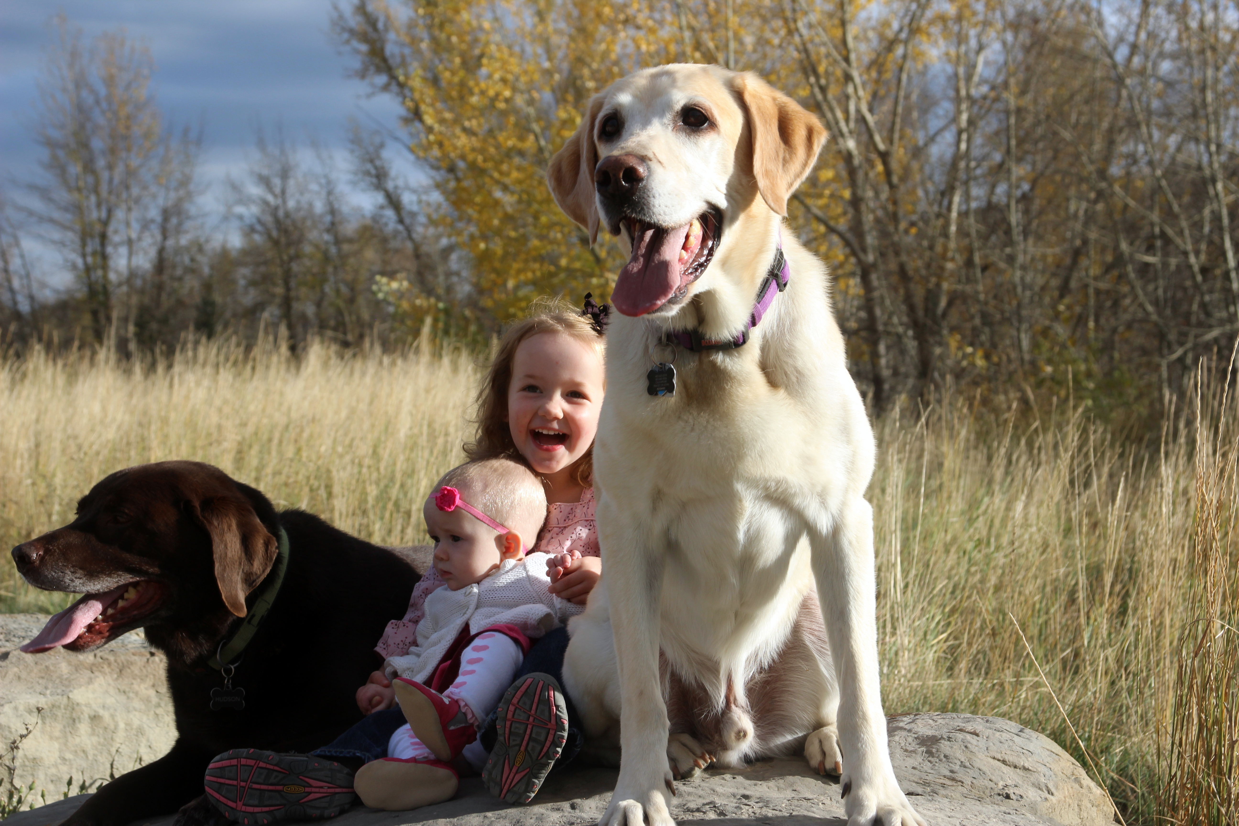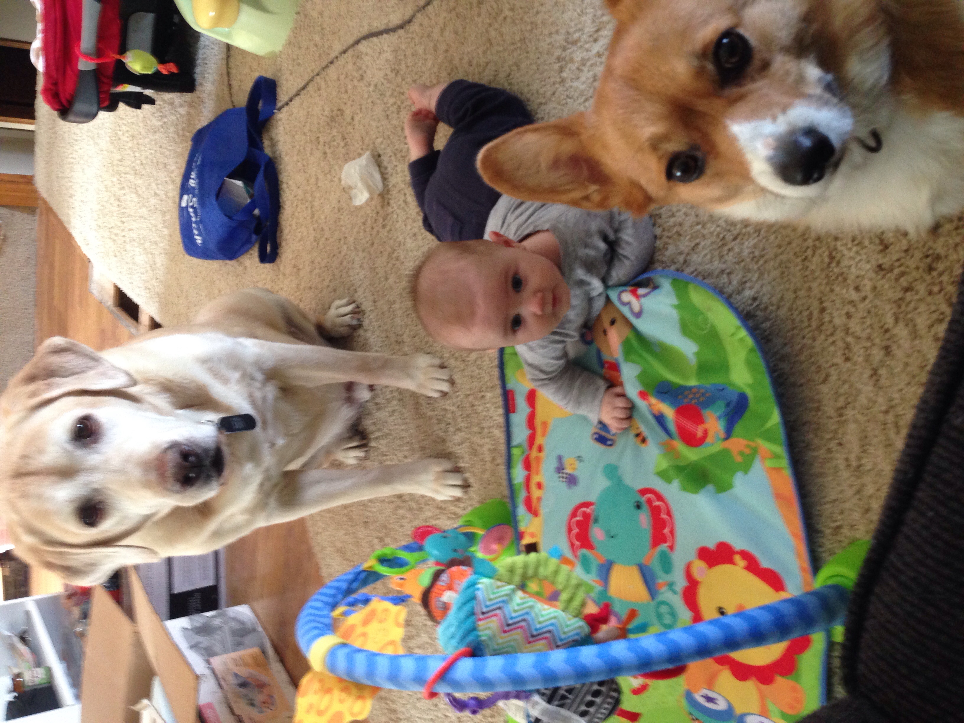 Here are my silly dogs. I tried taking a picture of all four of them and had the dogs laying down nicely. I said "Say cheese" and my yellow lab, Angus stood up, came to the front and sat in front of everyone smiling My 3 year old thought this was the best lol.