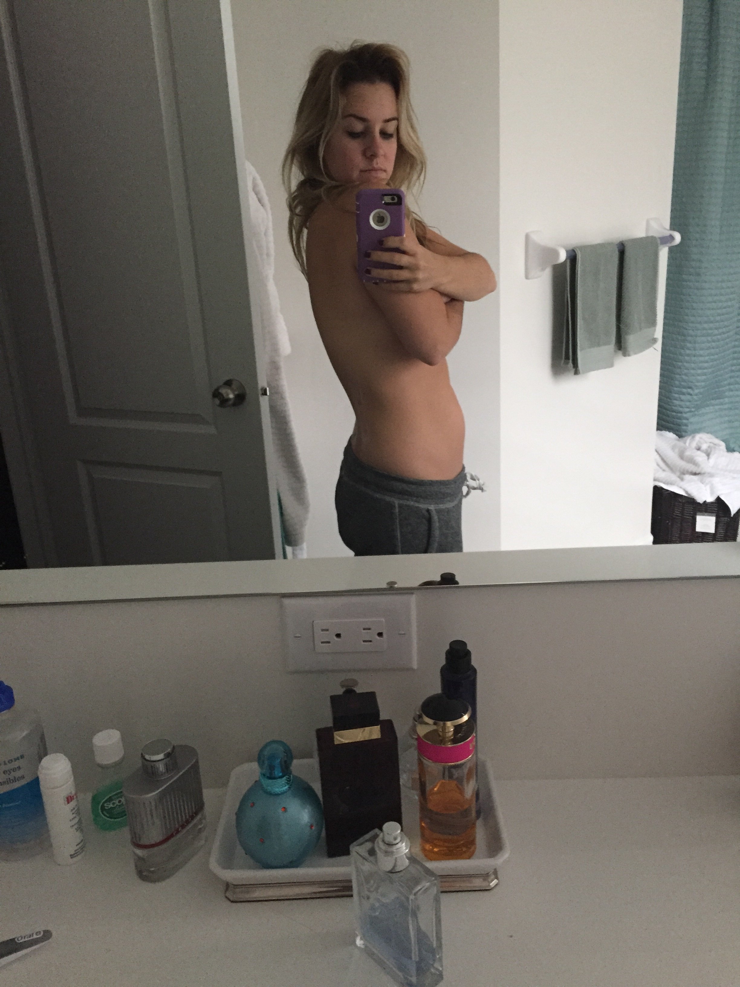 I have a pretty good illustration of how bad bloat can be! The first picture is me at 7 weeks. The second, with a smaller more normal (for me) looking stomach is at 9w3d.
