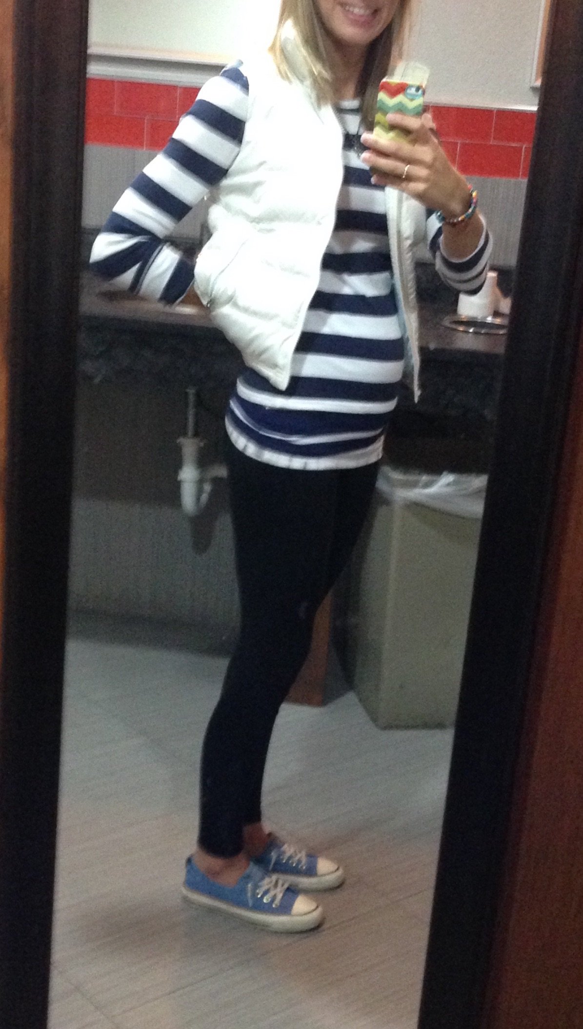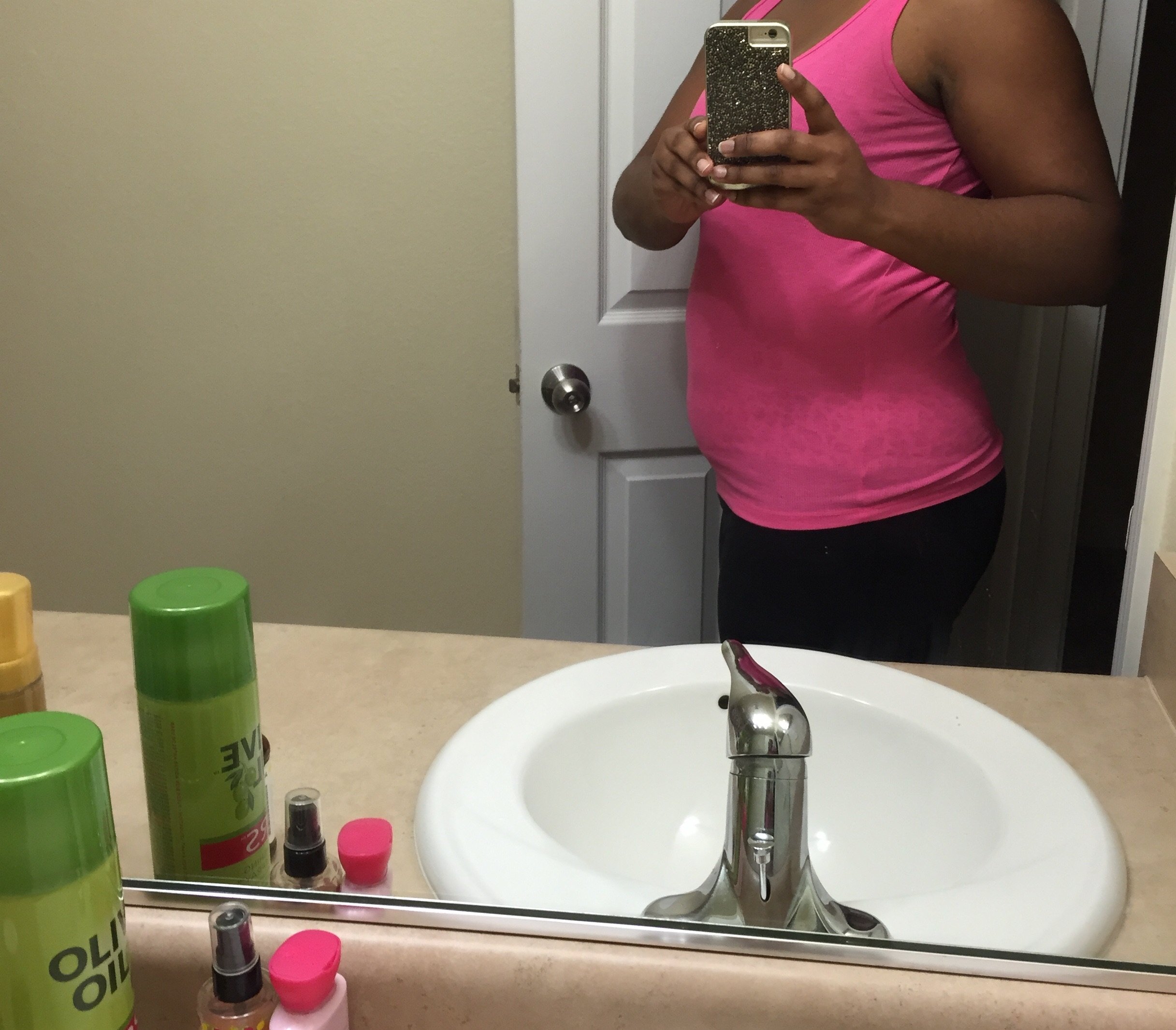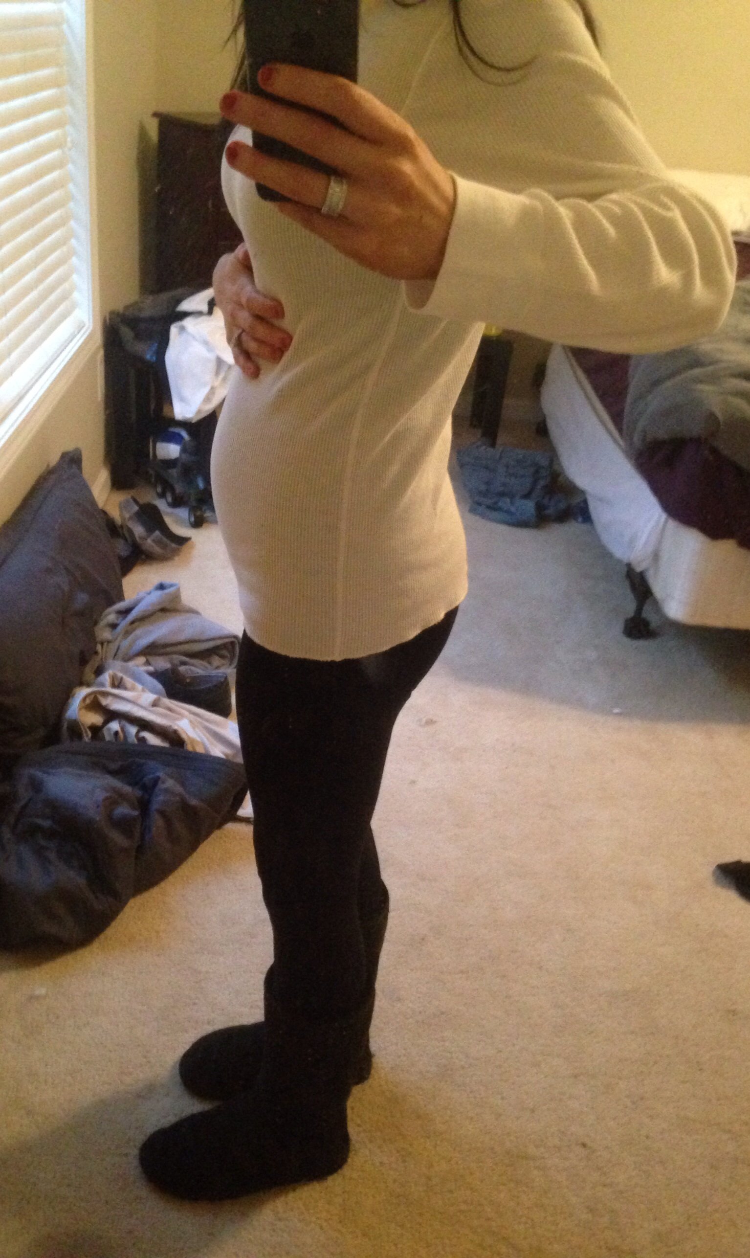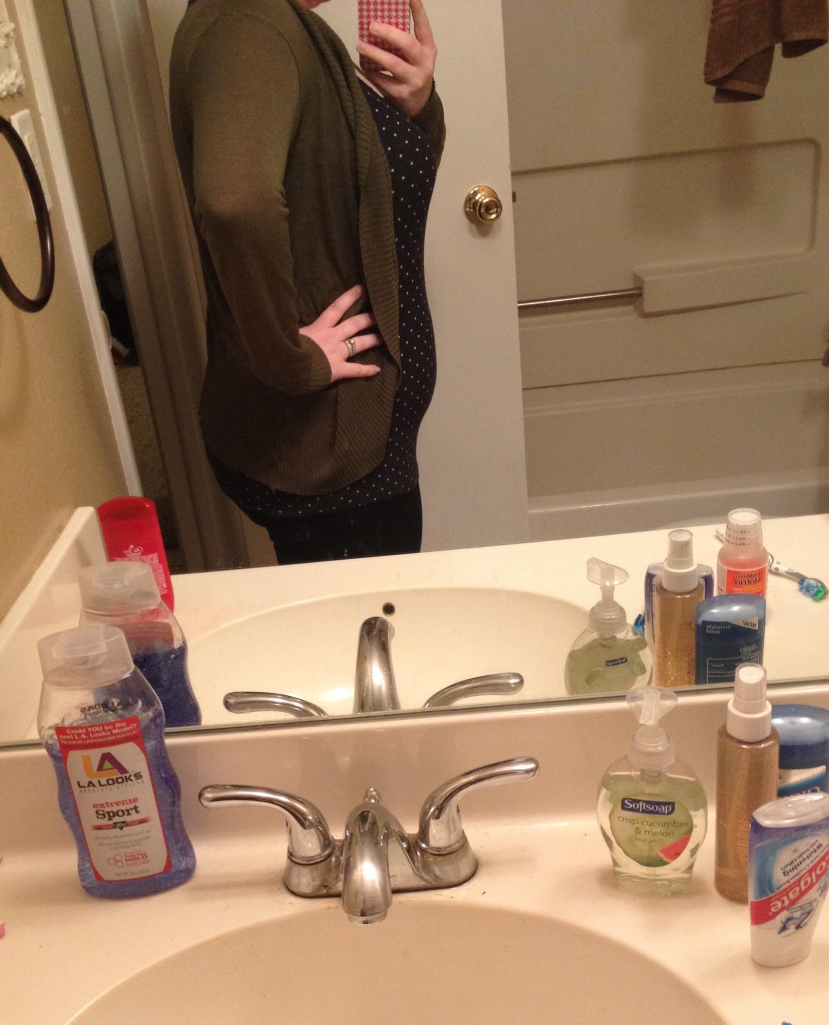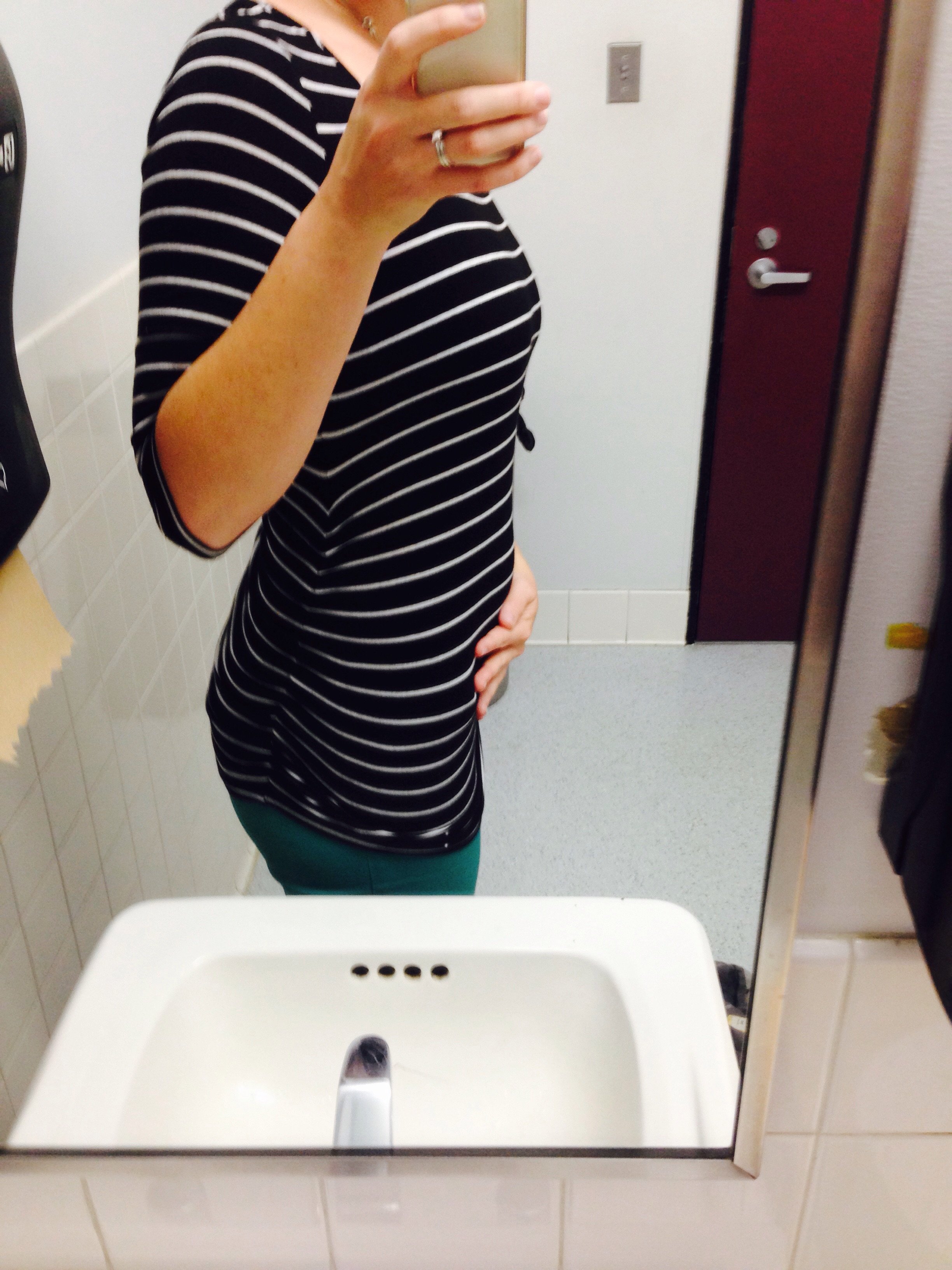 Here's my end of the day bump at 8 weeks 4 days. It doesn't quite look this big in the morning but by 5-6pm it looks like this. Only all of the sudden this week!