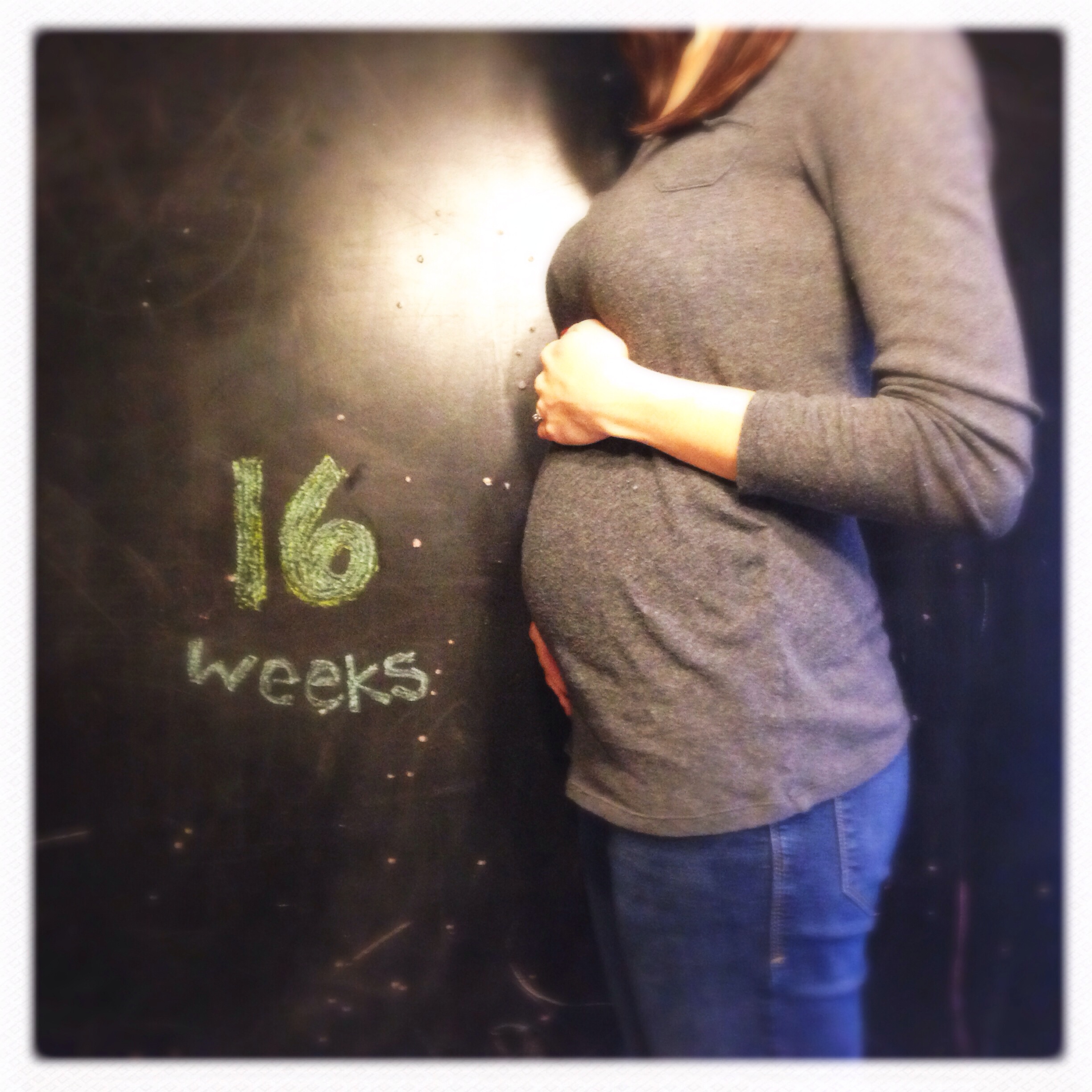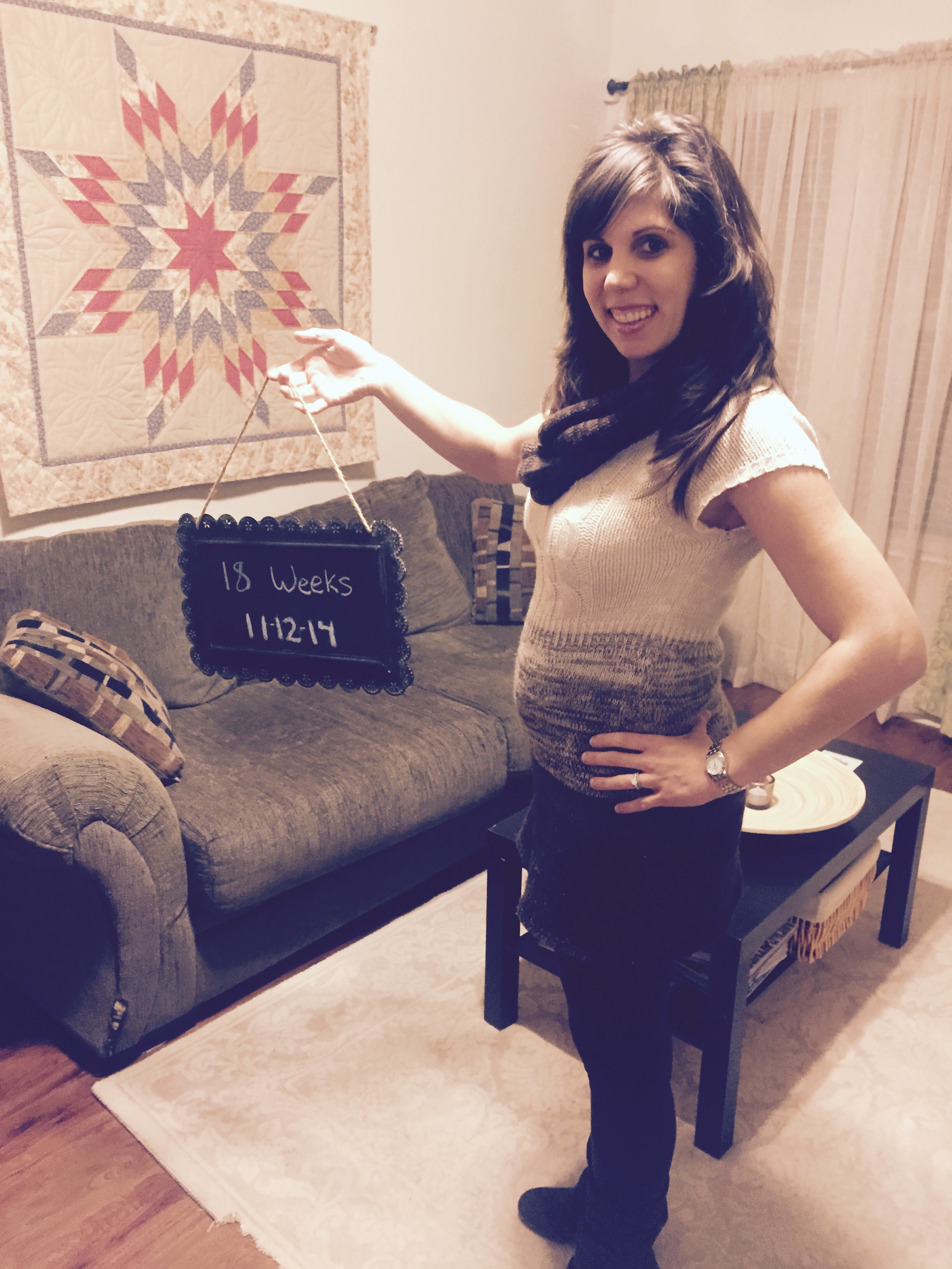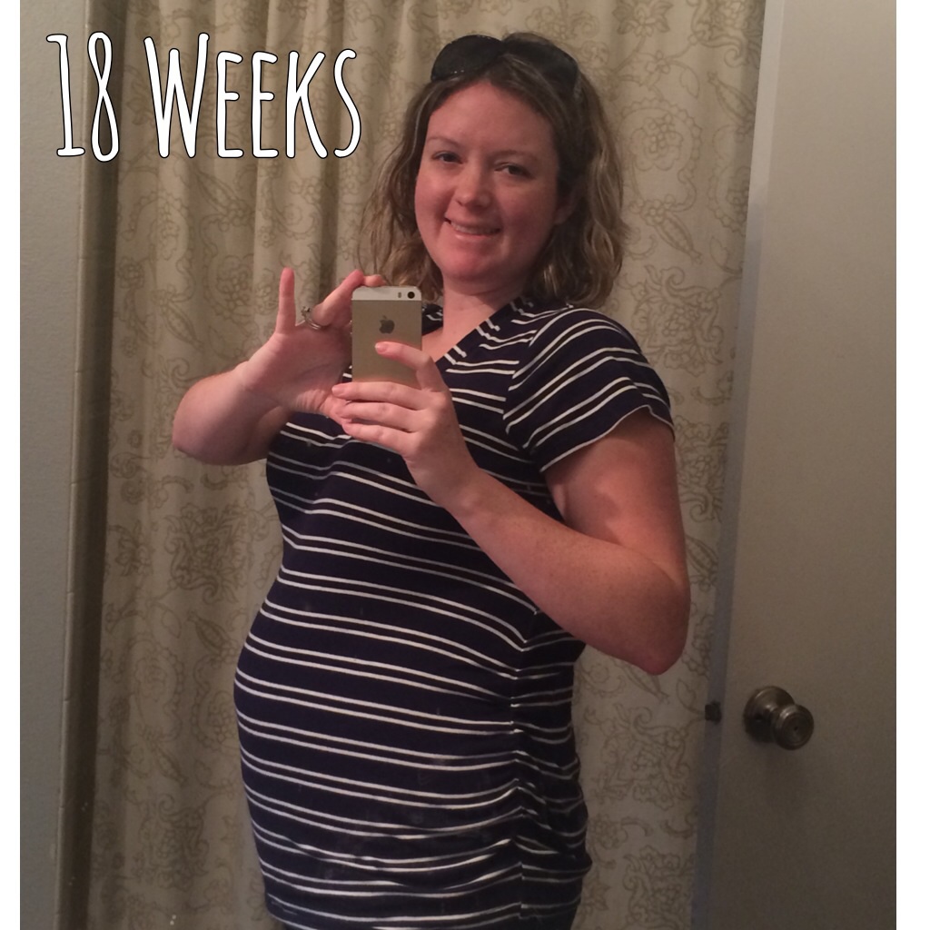 Yesterday at 18w1d, taking a 730AM selfie at work before we opened...gotta love the retail life. I feel huge. I was this size at like 24/25 weeks with DS.