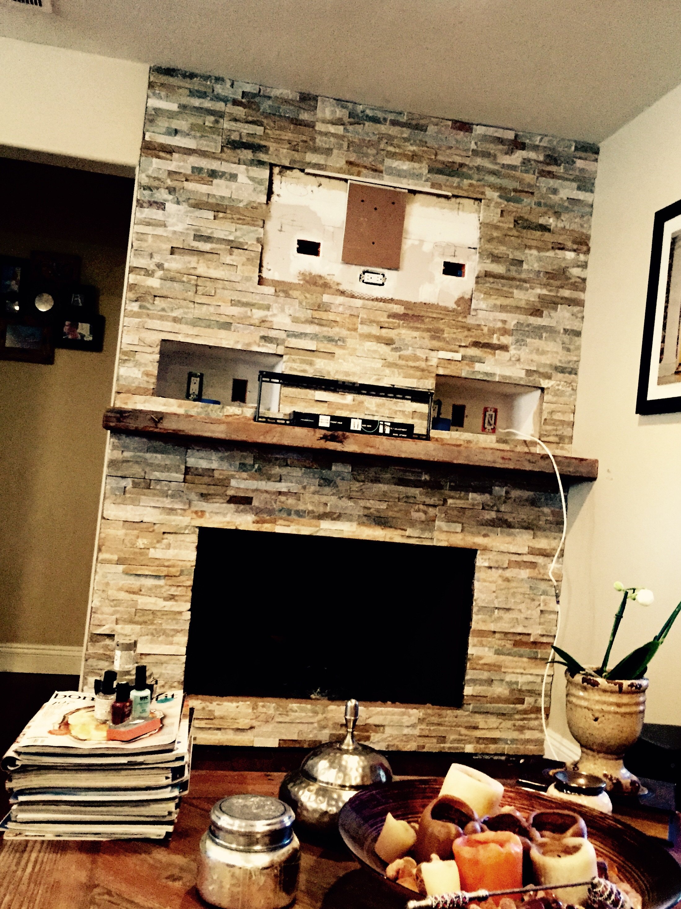 The fire place is gorgeous! My DH is also very skilled craftsman which was so helpful when we moved into our house. He just recently built me a home office!