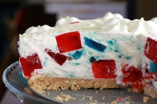 • My aunt always makes this awesome broken glass jello salad that is basically just jello jiggler squares in a bunch of whipped cream and it's AMAZING especially because I only get to eat it a couple times a year! It looks like this but in a big bowl without the crust: image