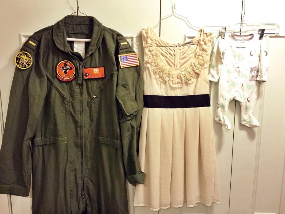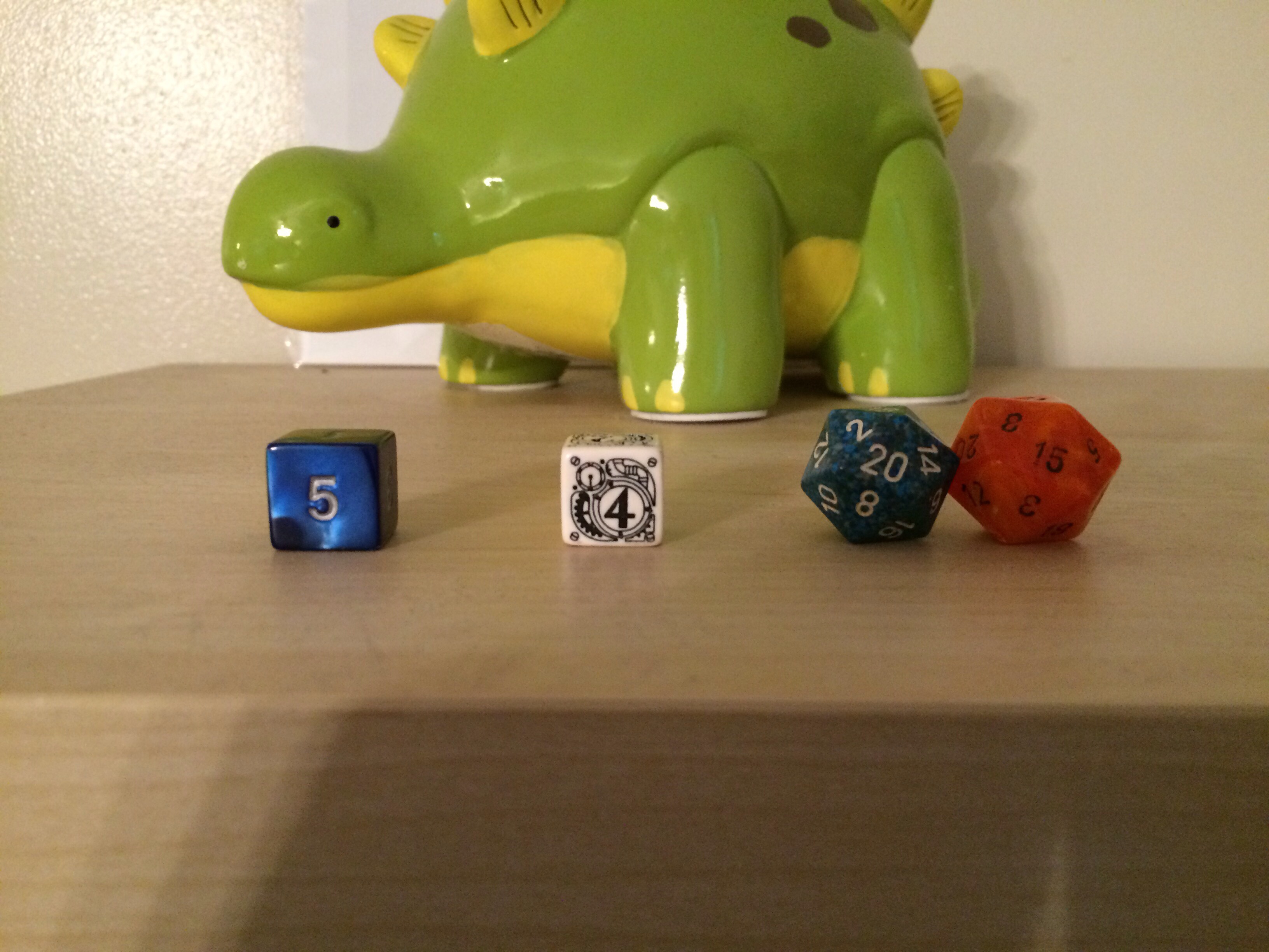 This is half of ours. The other half I can't blur out our full names right now...suffice it to say, the top half is all fiance (dinosaurs and gaming dice) and the bottom half is a "script" title page, with "Baby Boy V---- (working title)" on it. For me, as a theatre artist.
