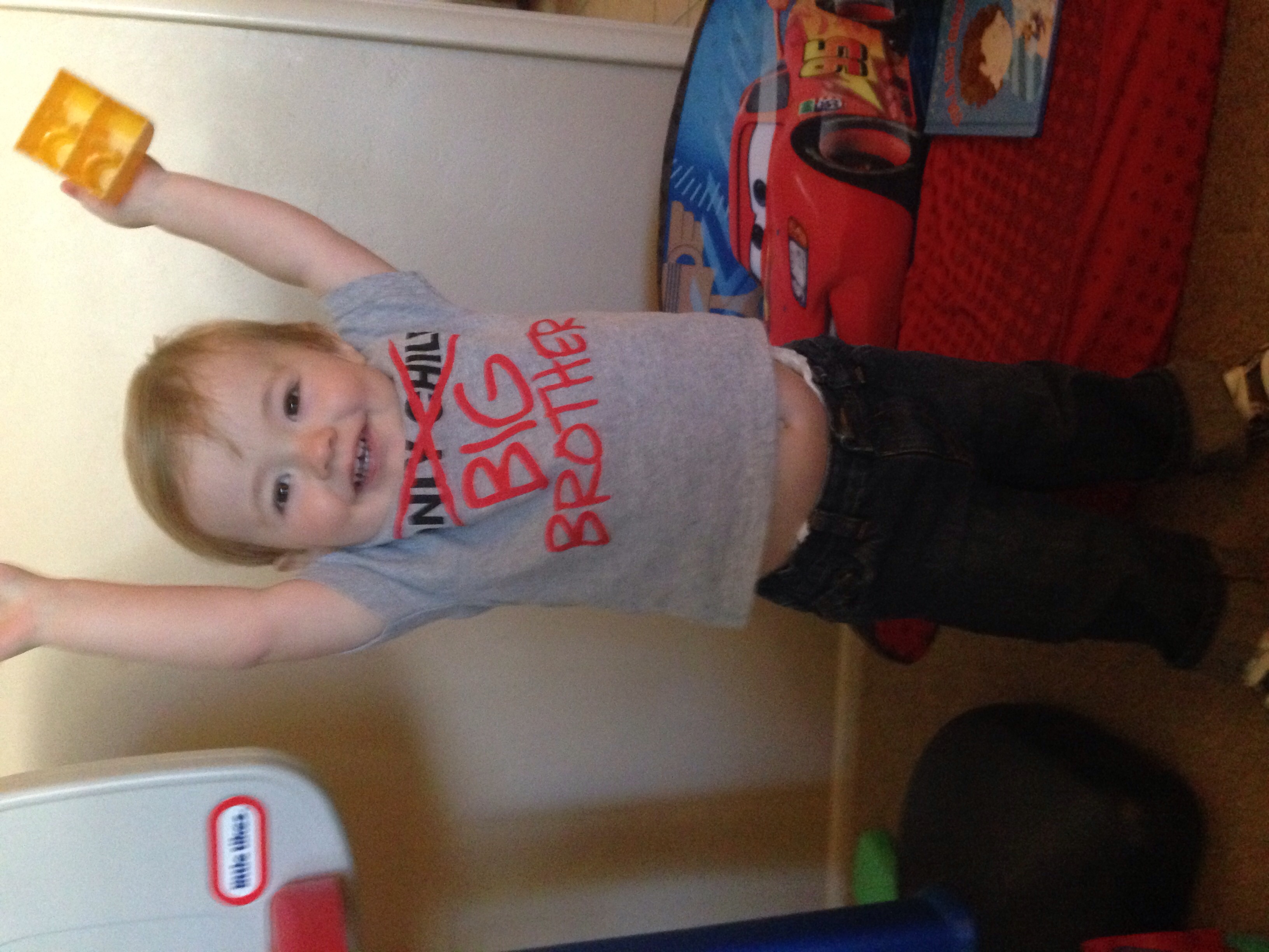 Just posted this yesterday. I had big plans to get super creative and include our dogs and new house in our announcement, and then I got lazy and didn't feel like finagling everyone. DS is super excited as you can tell