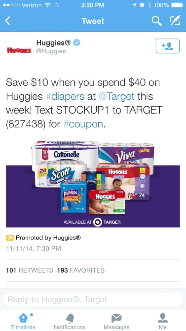 @Colleen4019, here's the huggies deal at Target. It's not the best deal but not bad either. https://hip2save.com/2014/11/06/target-10-off-40-select-baby-household-purchase-store-coupon-starting-119-awesome-deals/