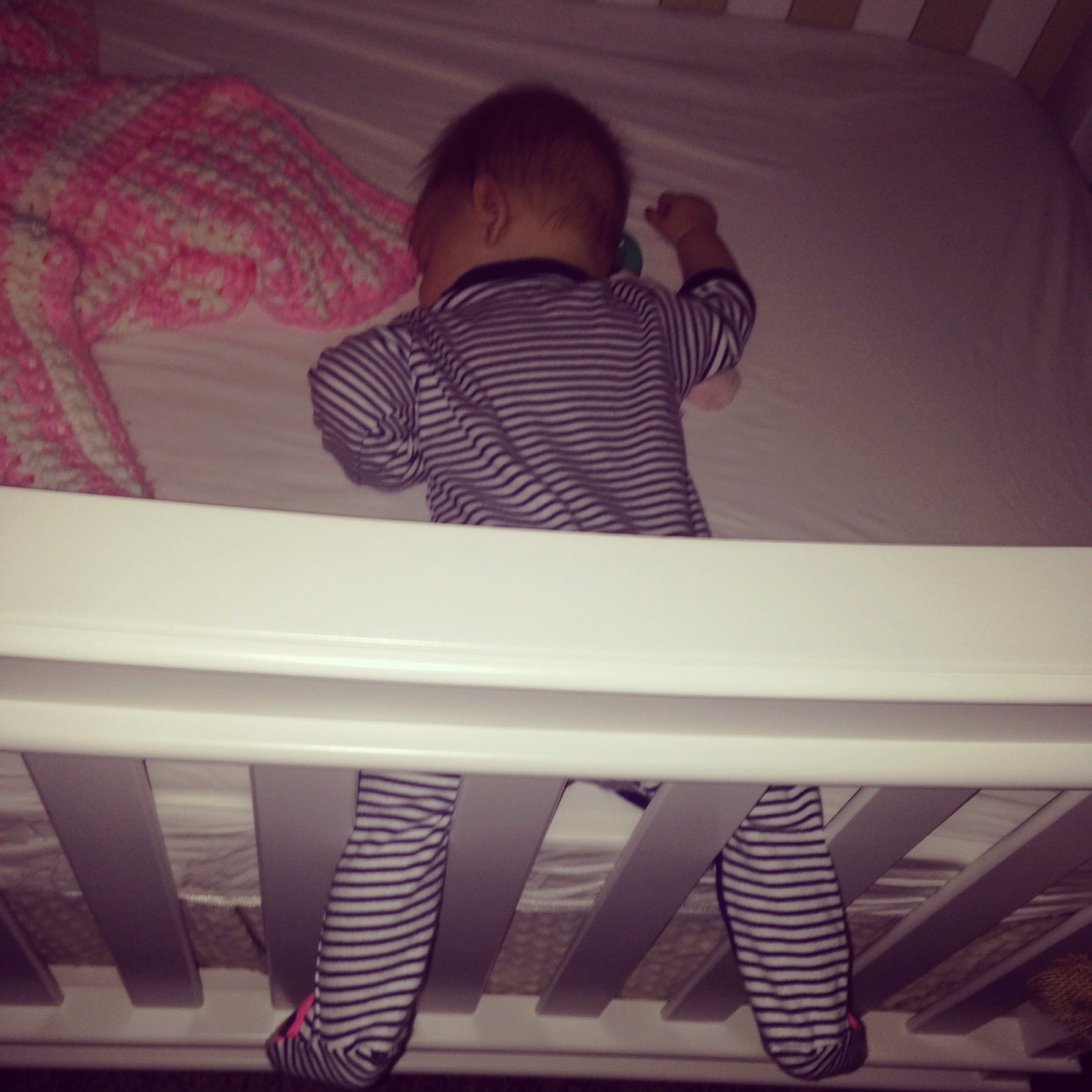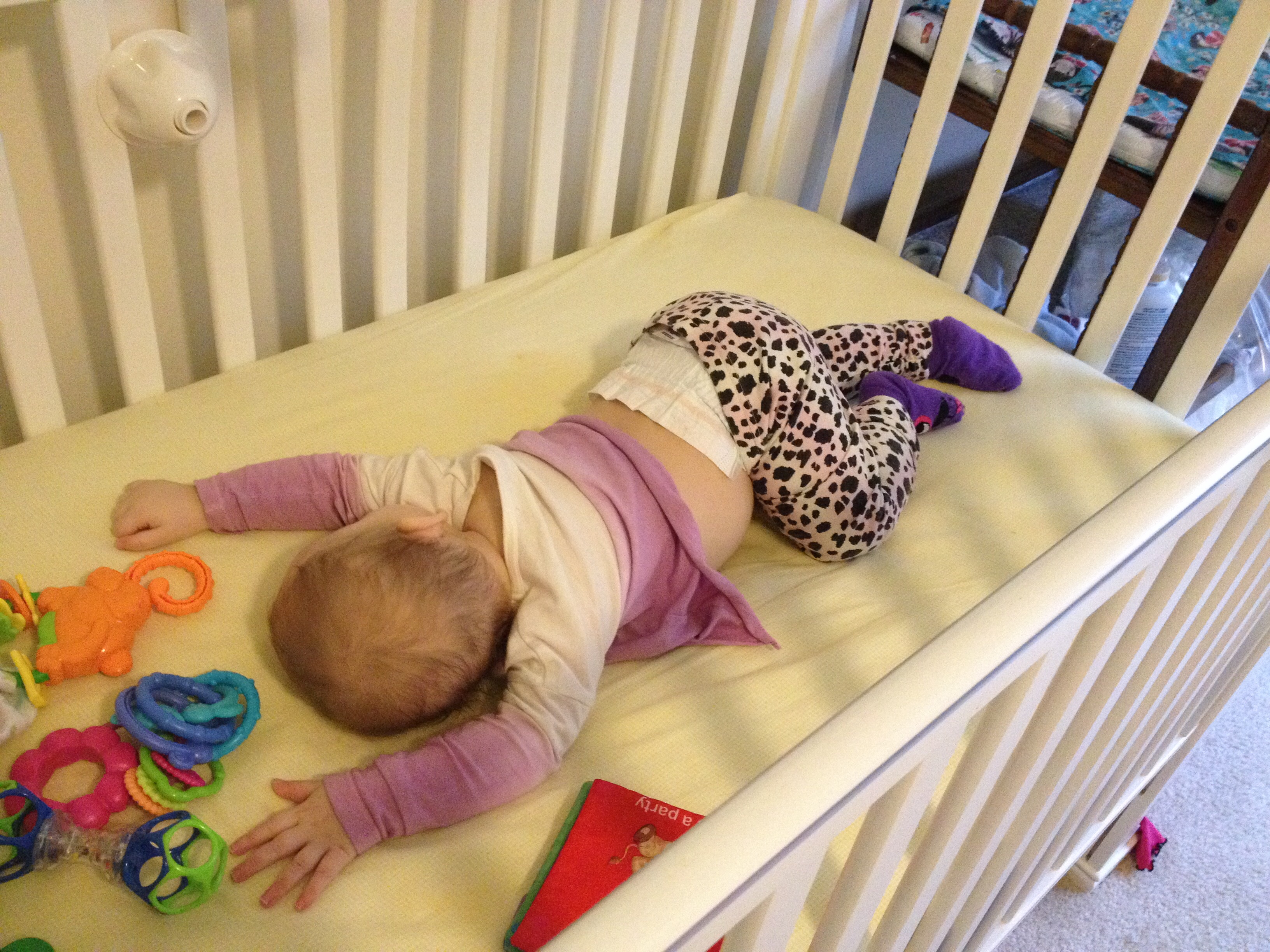 And before anybody gets on me about the toys in the crib, she was playing with them while I was doing something in that same room. :P