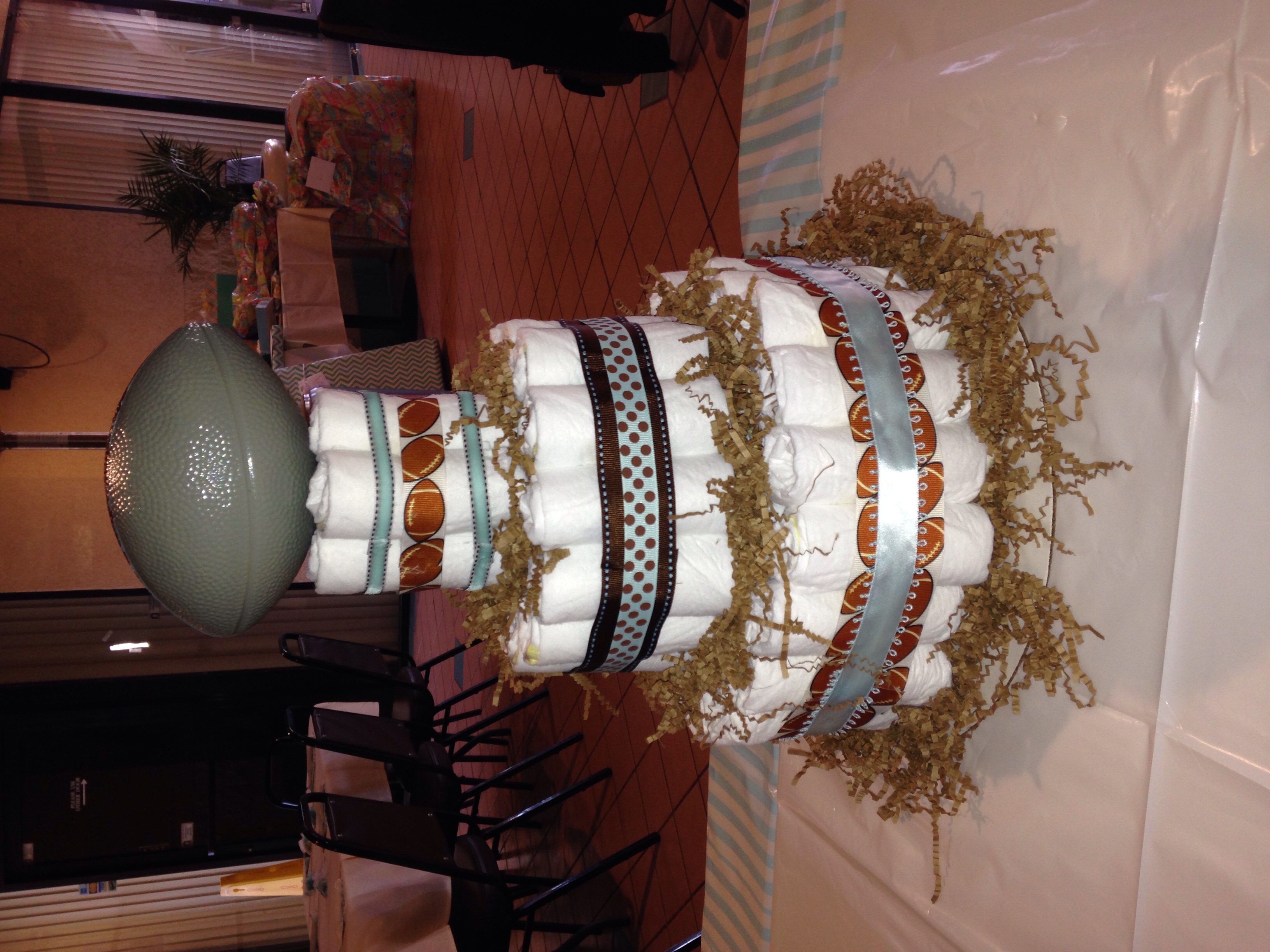 I'm exhausted but my baby shower yesterday was awesome! My mom put together a great shower. We got A LOT of essentials so there's not too many gaps to fill and I don't need to return anything. I'm going to spend my Thanksgiving break nesting my butt off. Below is a pic of SIL and me (I'm the one in blue) and the diaper cake my mom made