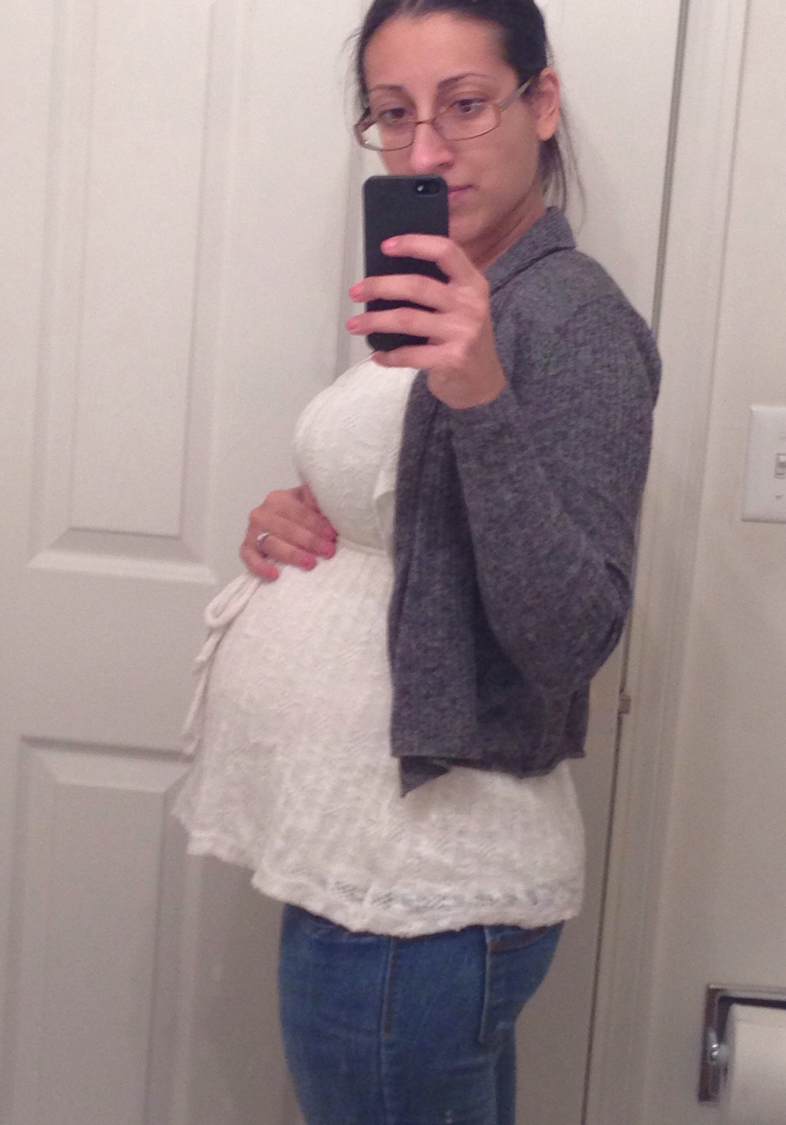 Here's me today at 23w3d. Had an ultrasound Tuesday and it went great. His heart looks perfect and they checked to make sure I wasn't leaking fluid (had a lot of discharge over the weekend and I think I may have peed my pants), and I'm not leaking fluid so yay.
