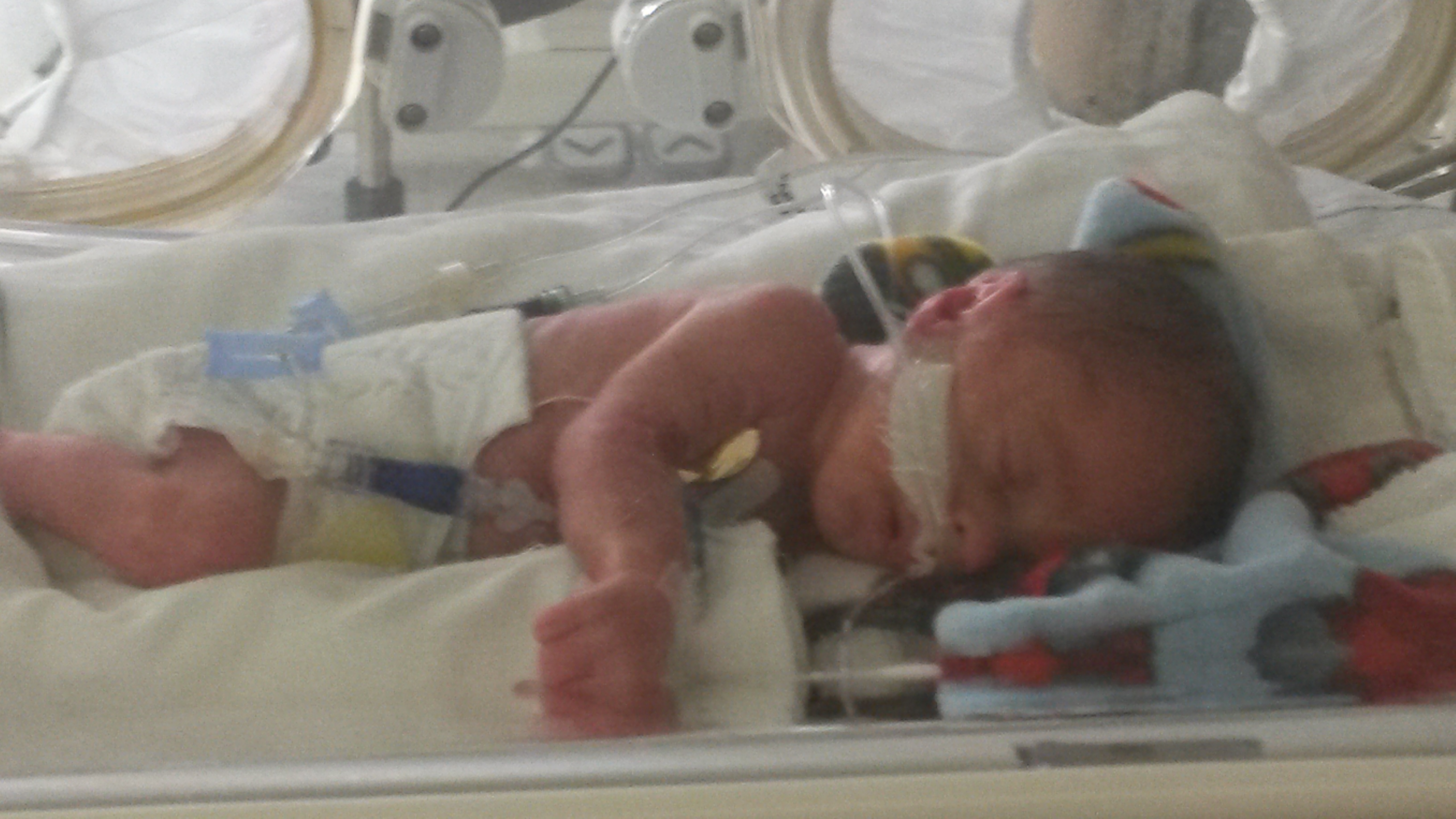 I got to see them a few hours later. Matthew who was 2lb14oz is breathing better than Timothy (2lb6oz) but neither has needed the venilator yet. They were working on him so I disnt get a pic but here is one of Matt.