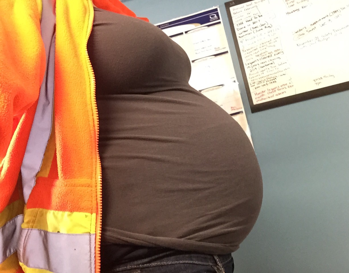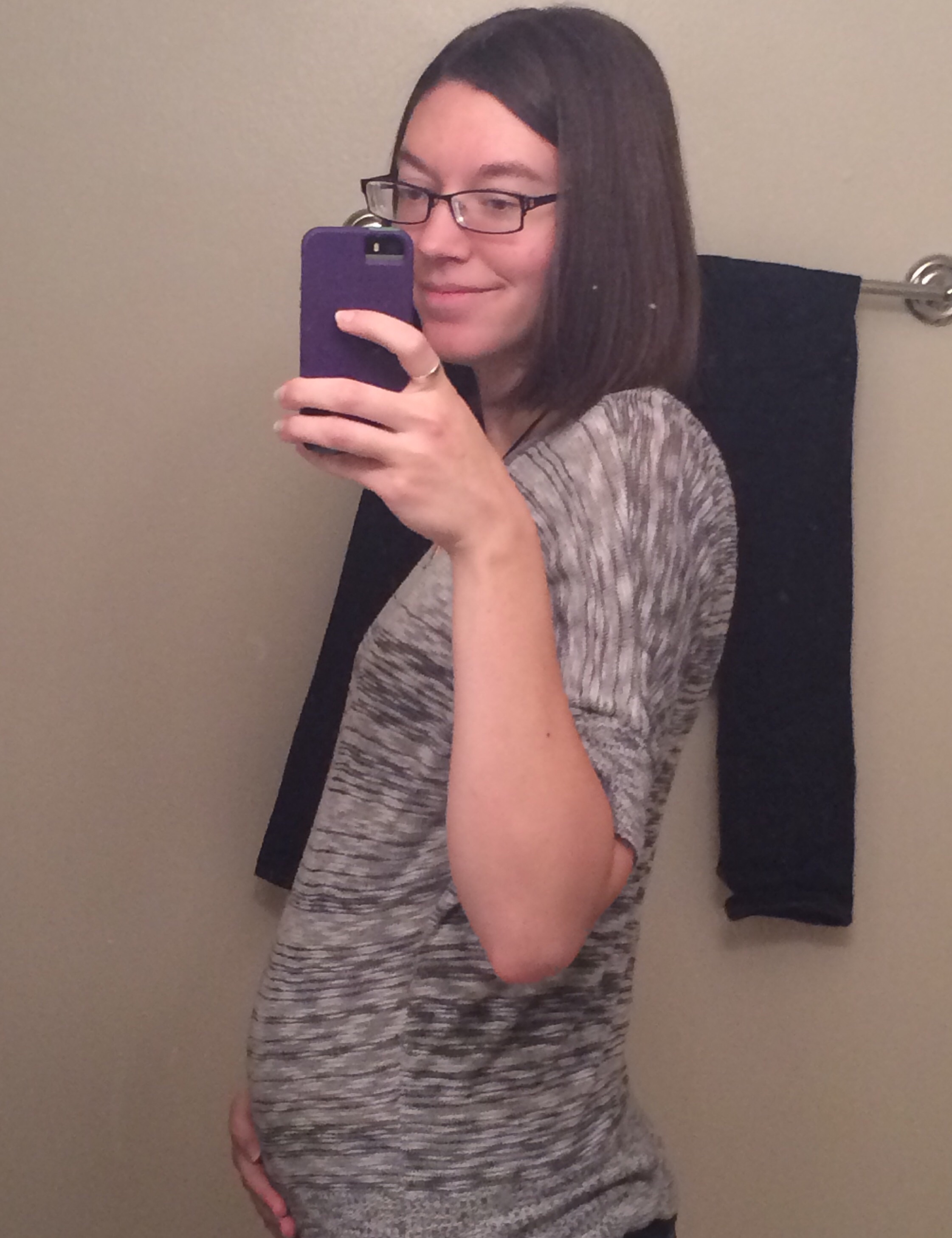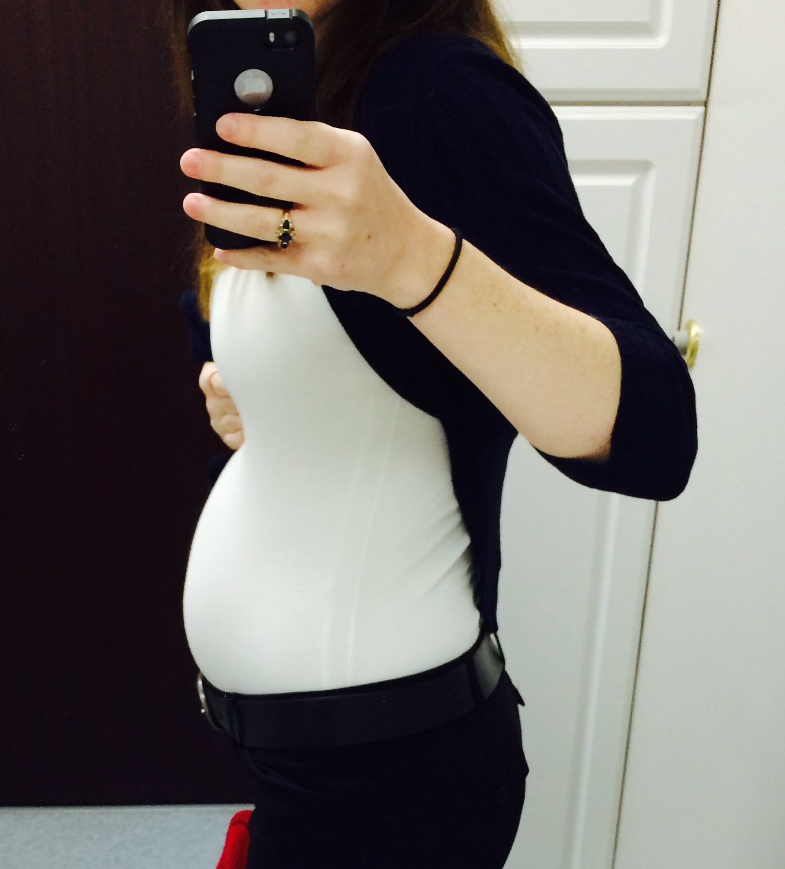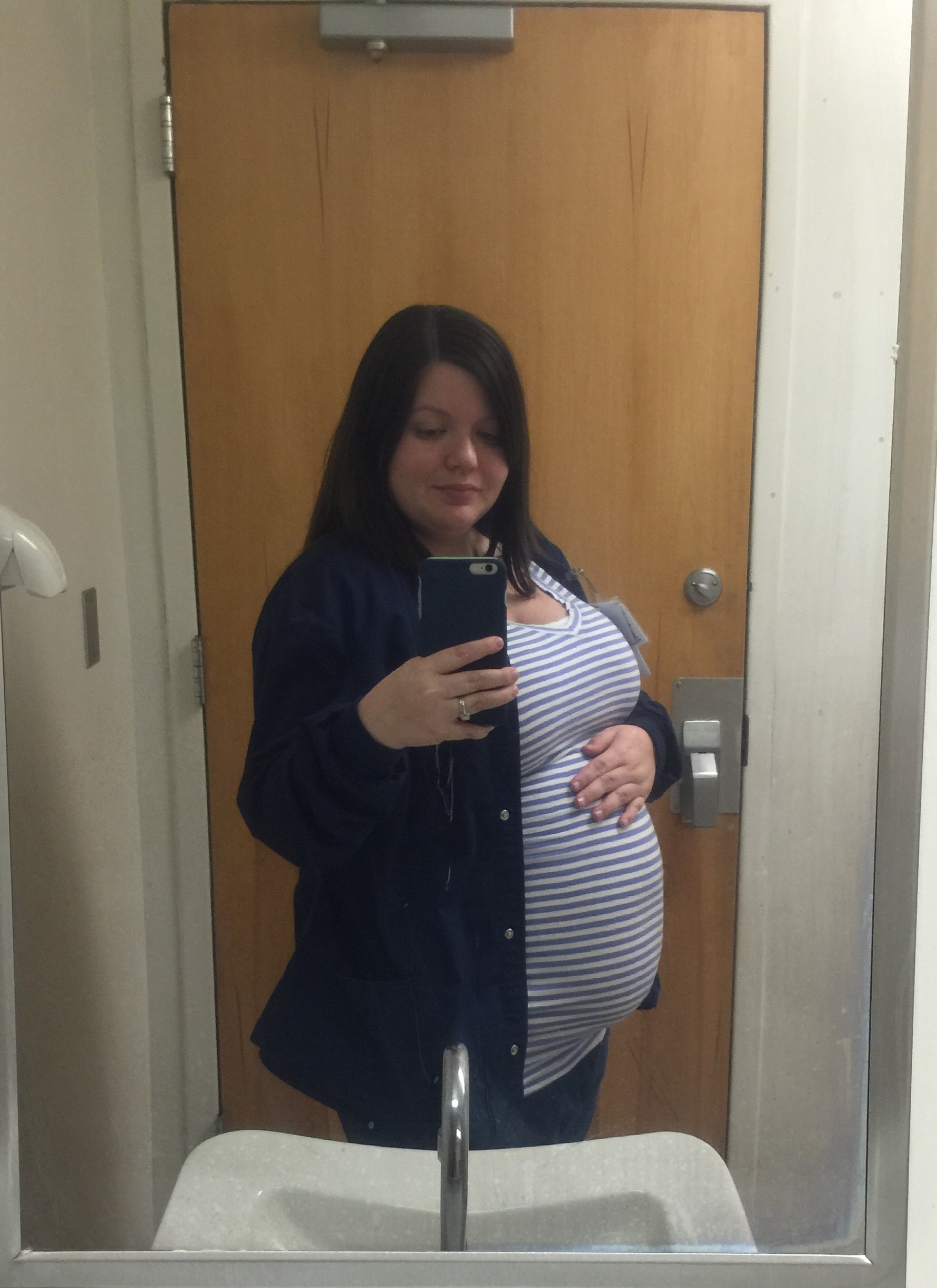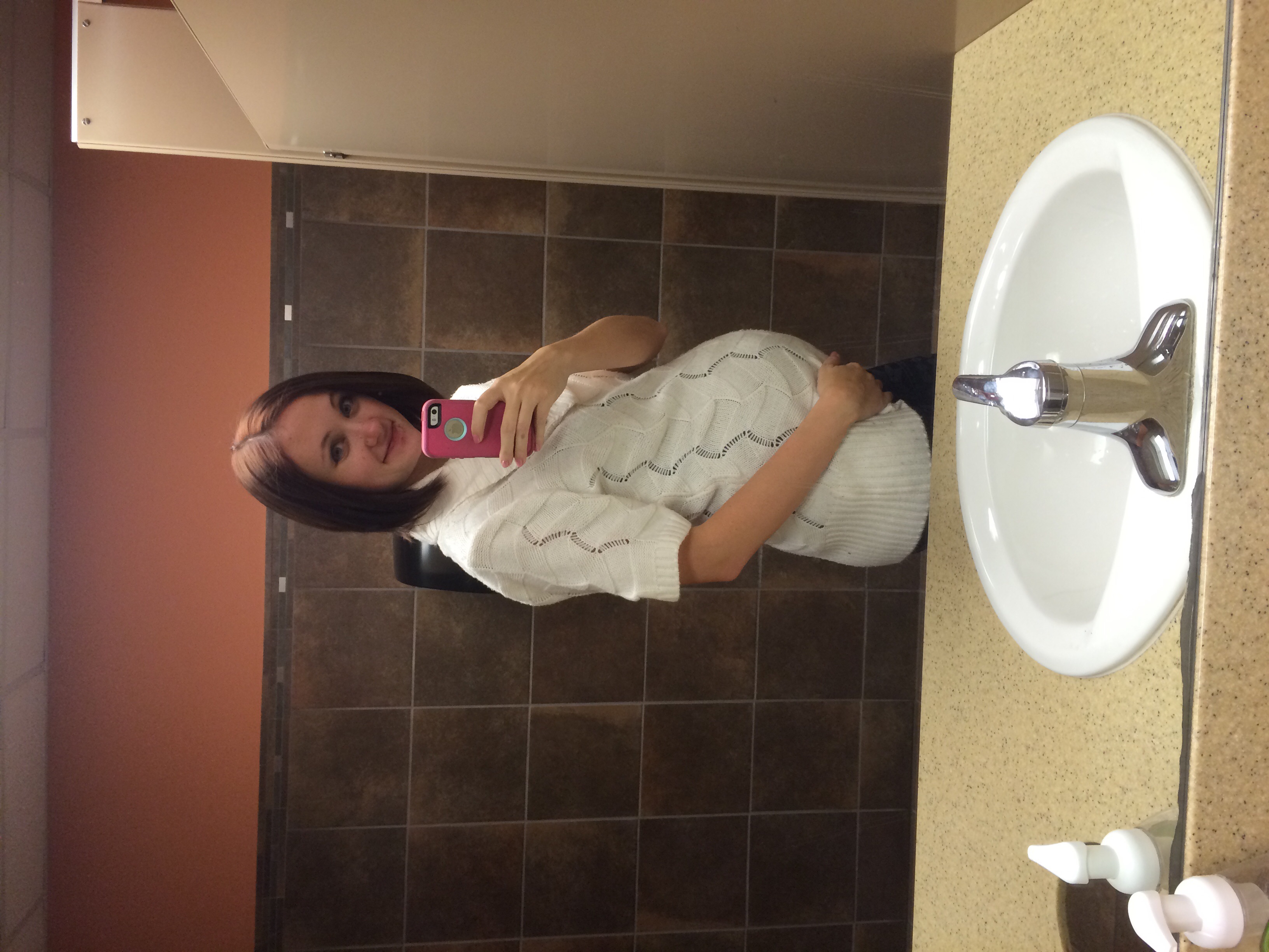 24W1D. First work bathroom bump shot. My scrub tops are getting too tight and I am too lazy to go to the store (which is on my way home) to buy some maternity scrub tops... I may just live in my scrub jacket for the remainder of the pregnancy. So much more comfortable.