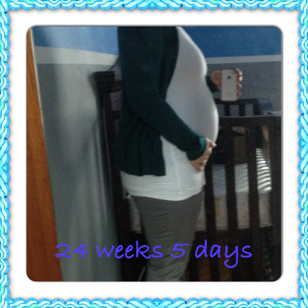First time mama 24 wk 5 d! Happy hump day! Now I maybe see why my coworkers are telling me I'm so big and are there 2 babies in there. But this shirt makes me look bigger.