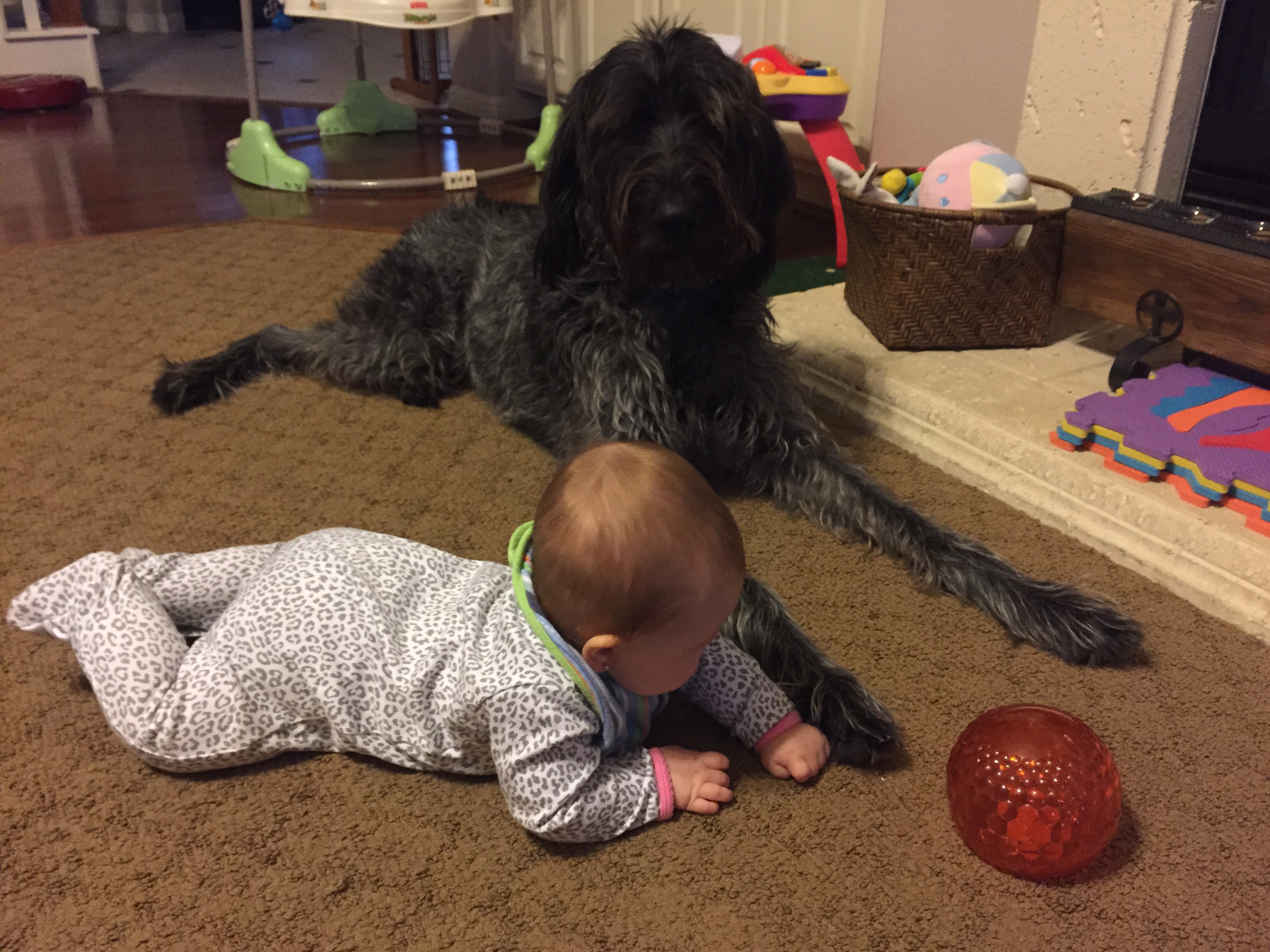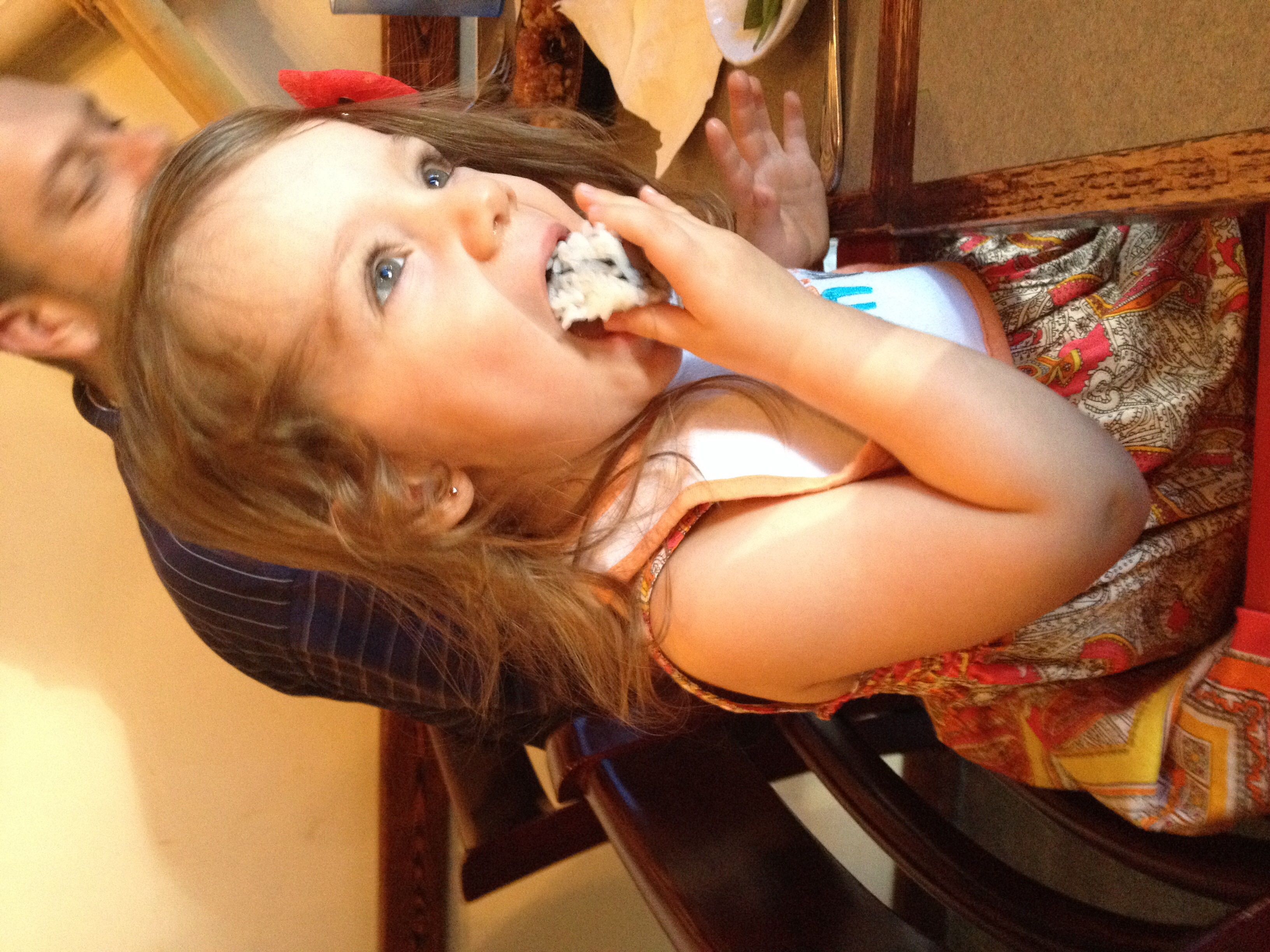 Here is Scout supervising tummy time, and E chowing down some sushi on my birthday.