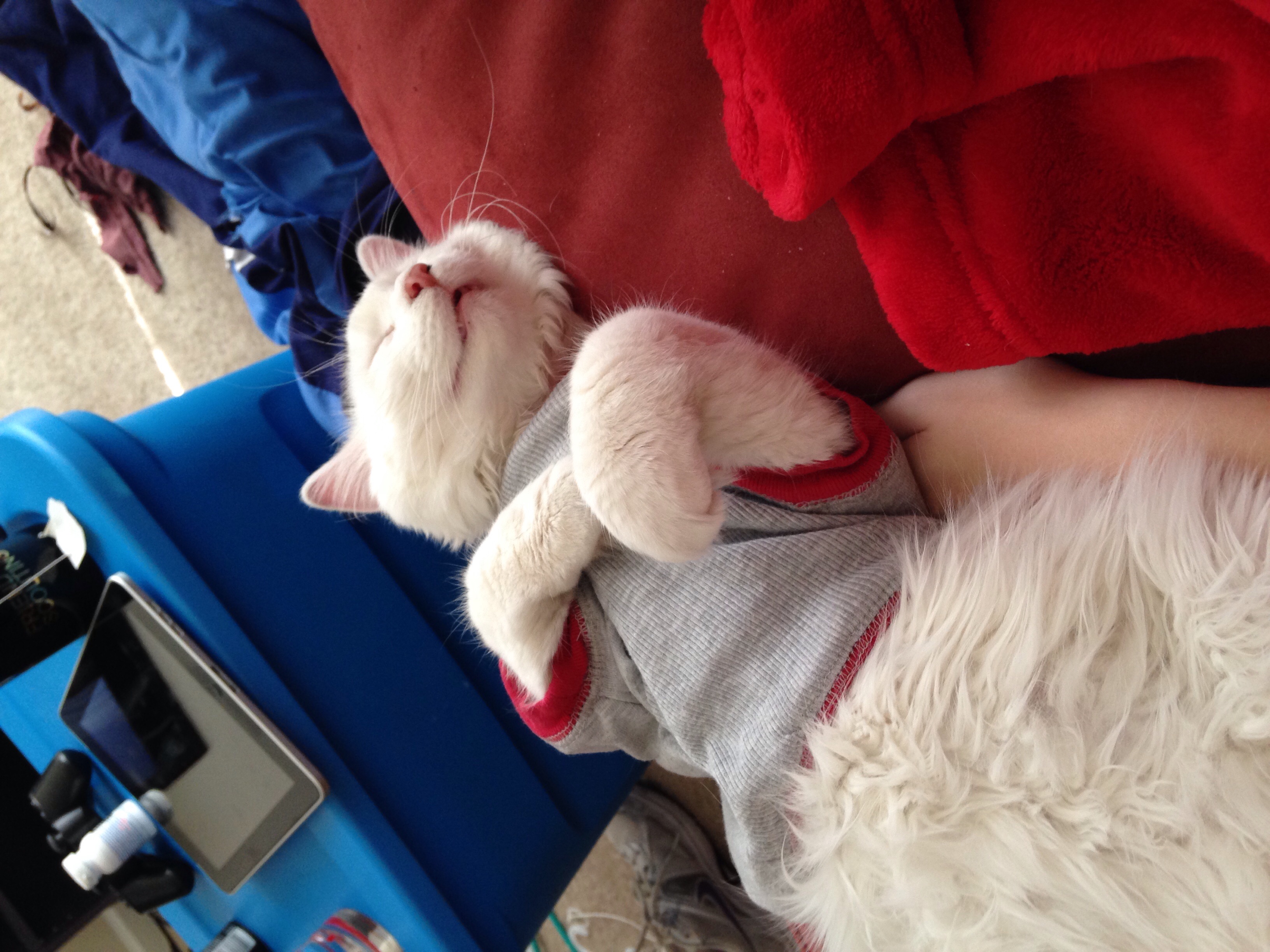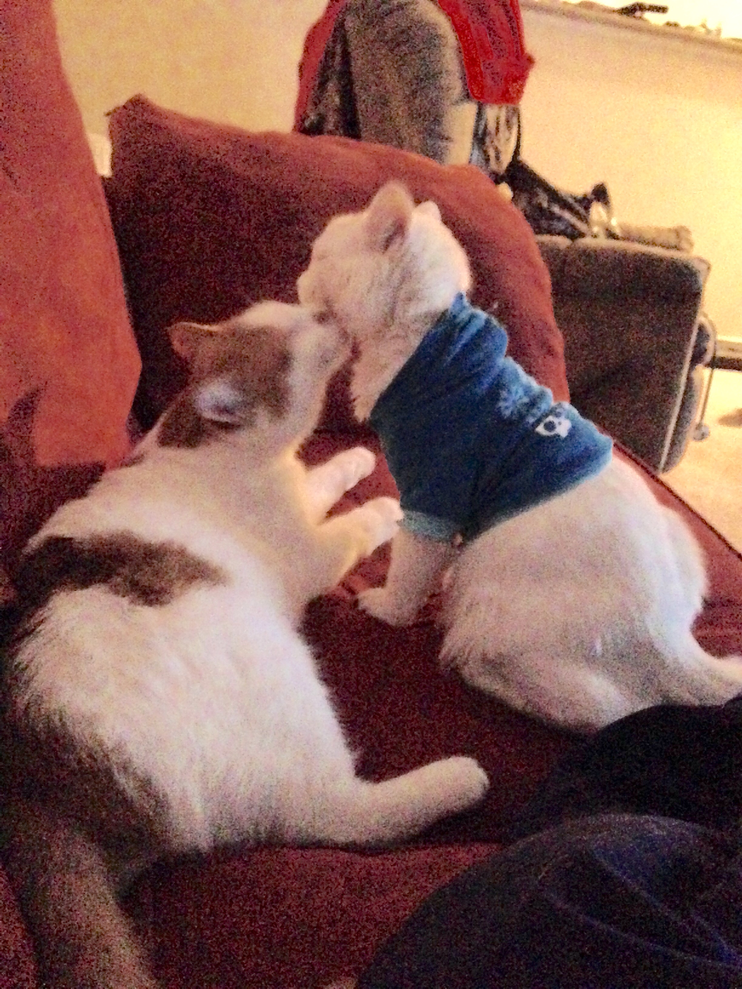 My 2 furr babies are amazing and love each other so much I think they cuddle more with each other then they do w us haha they love running the marathon also all around the house!
