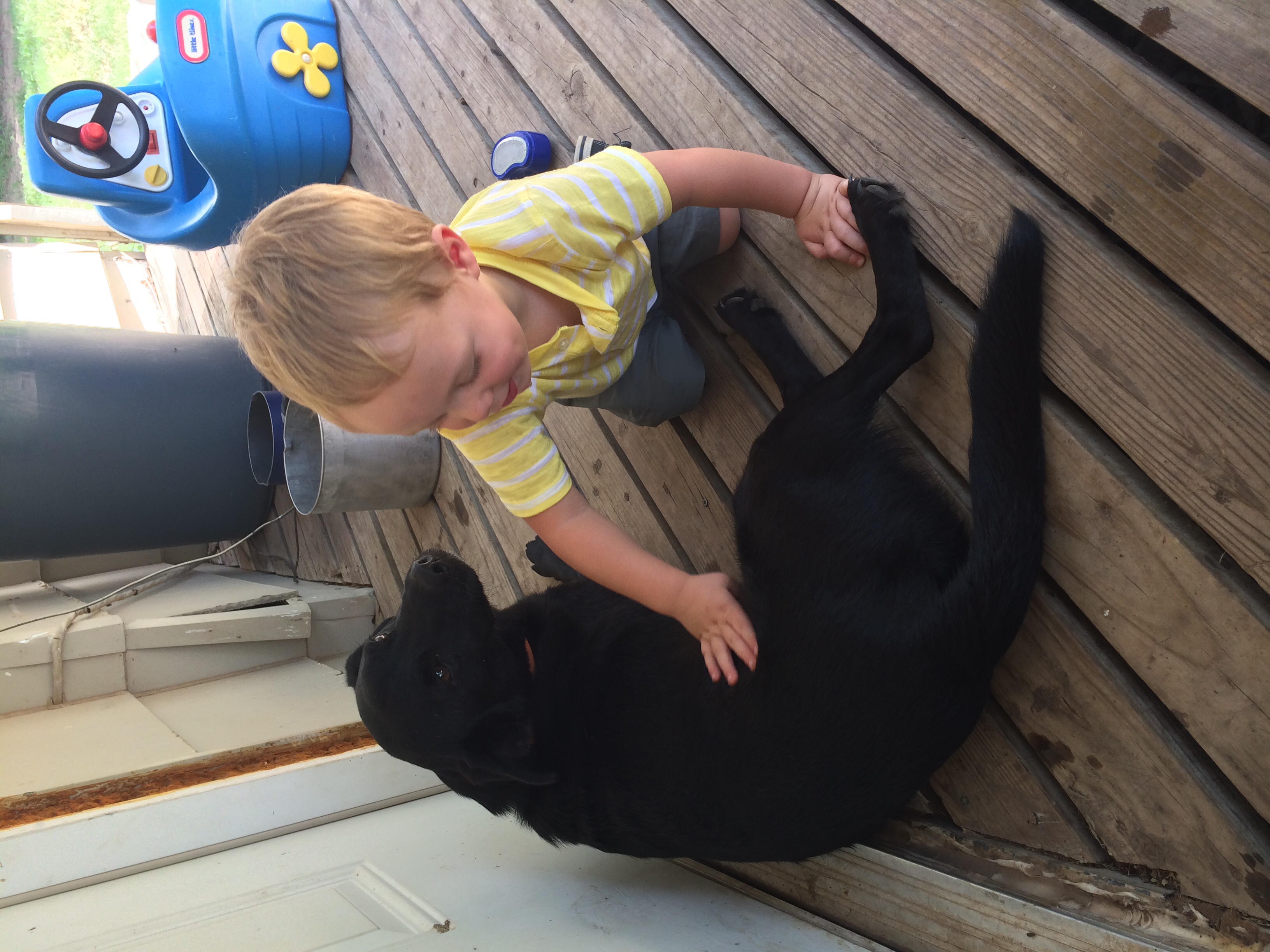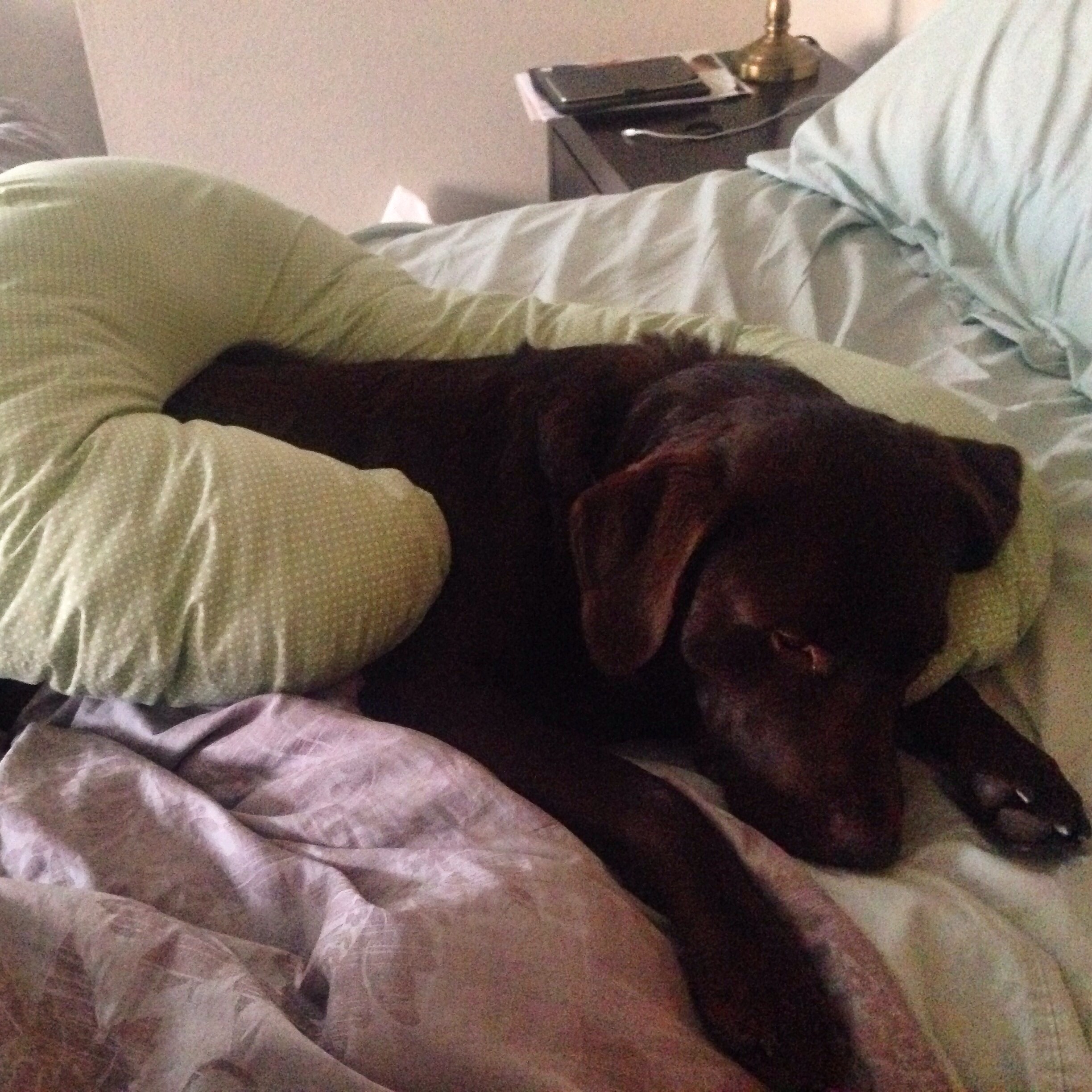 This is Mr. Tom Hanks (aka Hank). He's an 85 lbs, 4 year old lab, chessapeake bay retriever that thinks he's a lap dog. He also loves cuddling with mom's baby bump and stealing her snoogle.