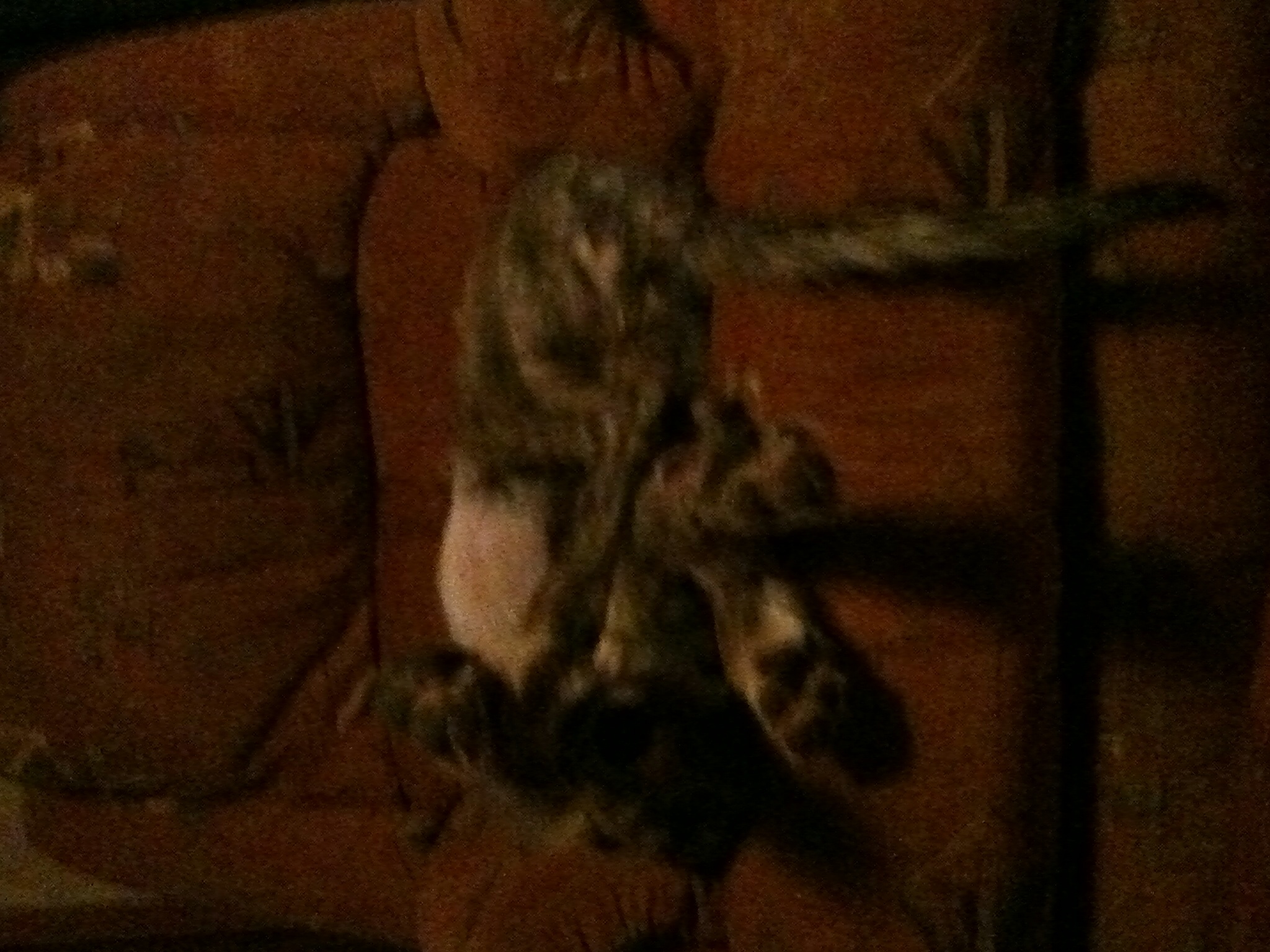 Eta: those are my legs he is laying next to. He's up by my hip and he almost spans my entire leg. Lol