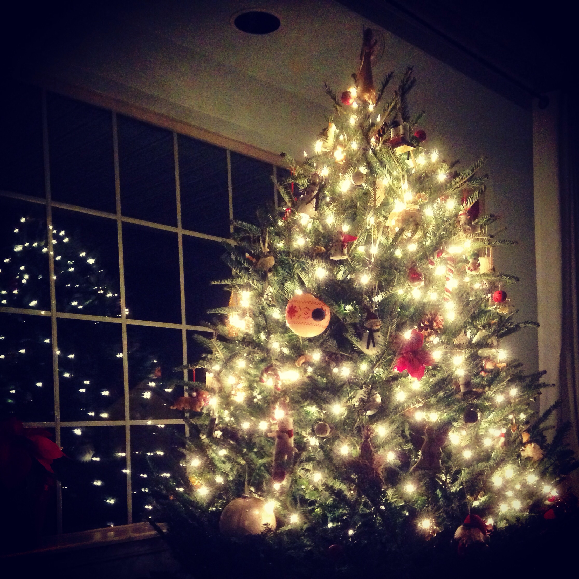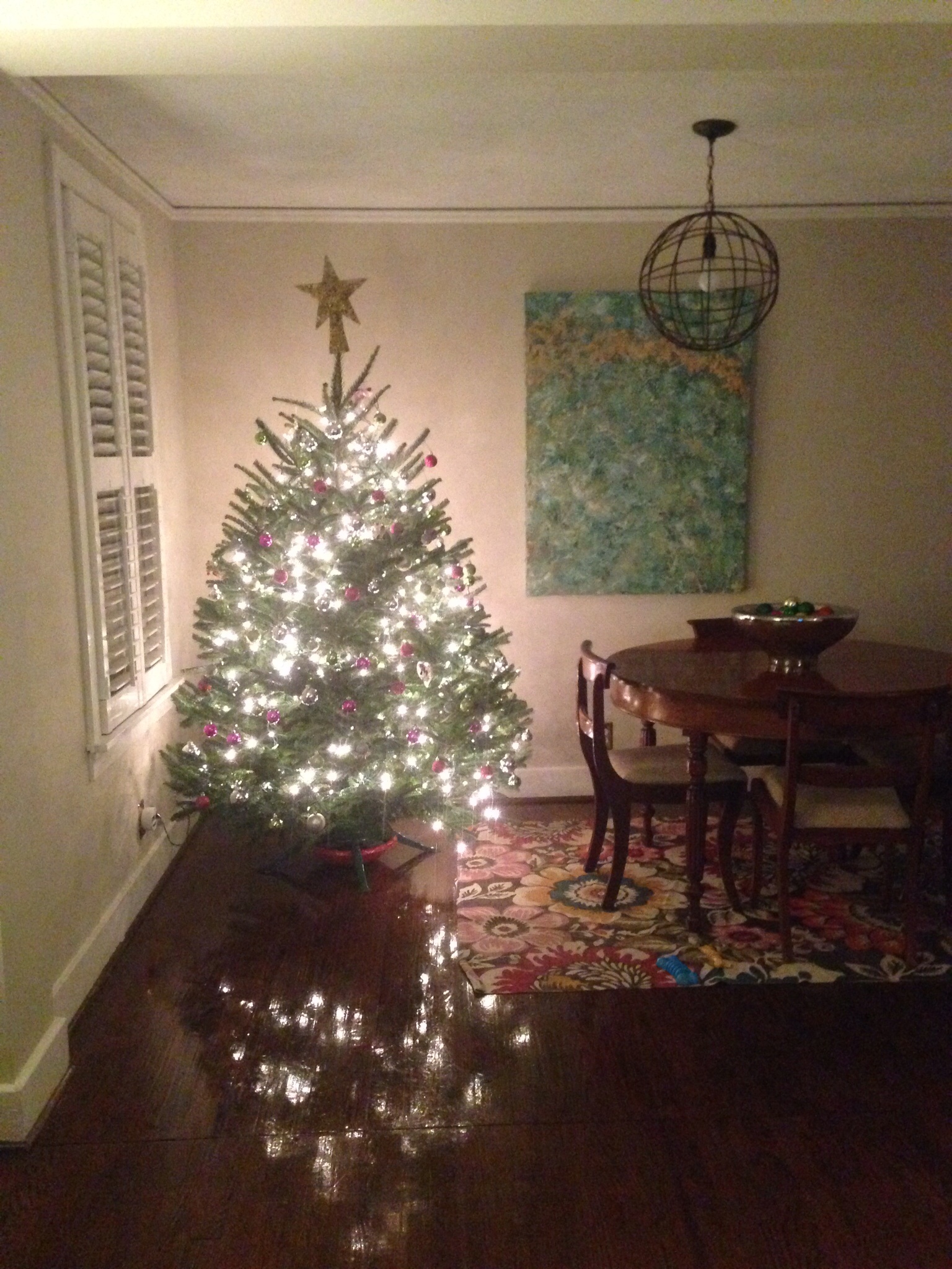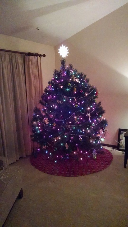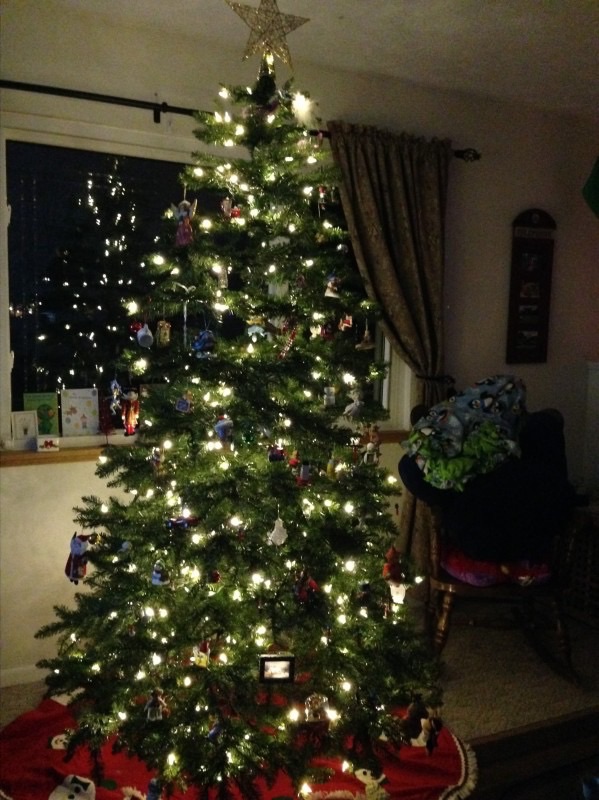 The tree, which is not fancy and is pretty haphazardly decorated, but we love it.