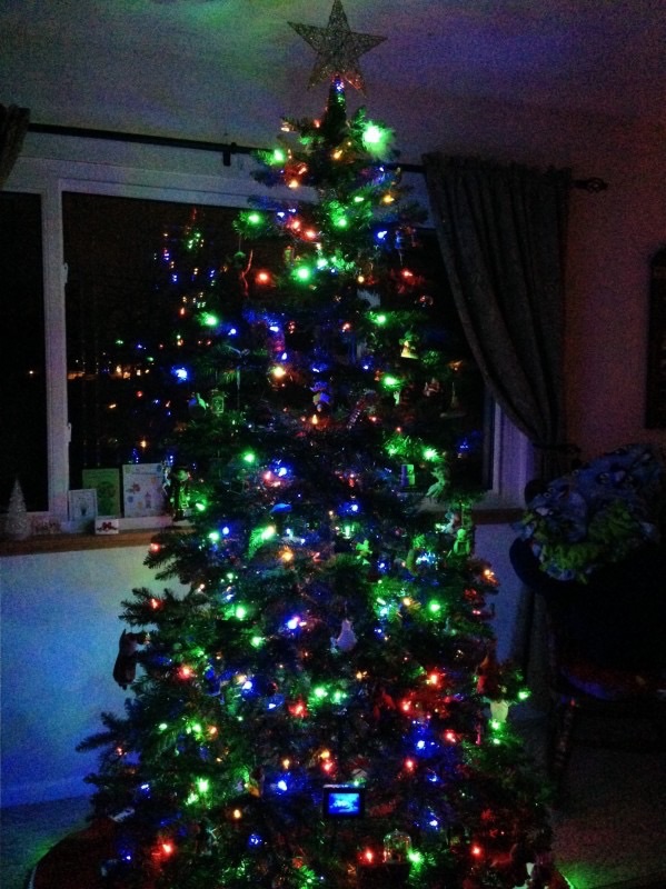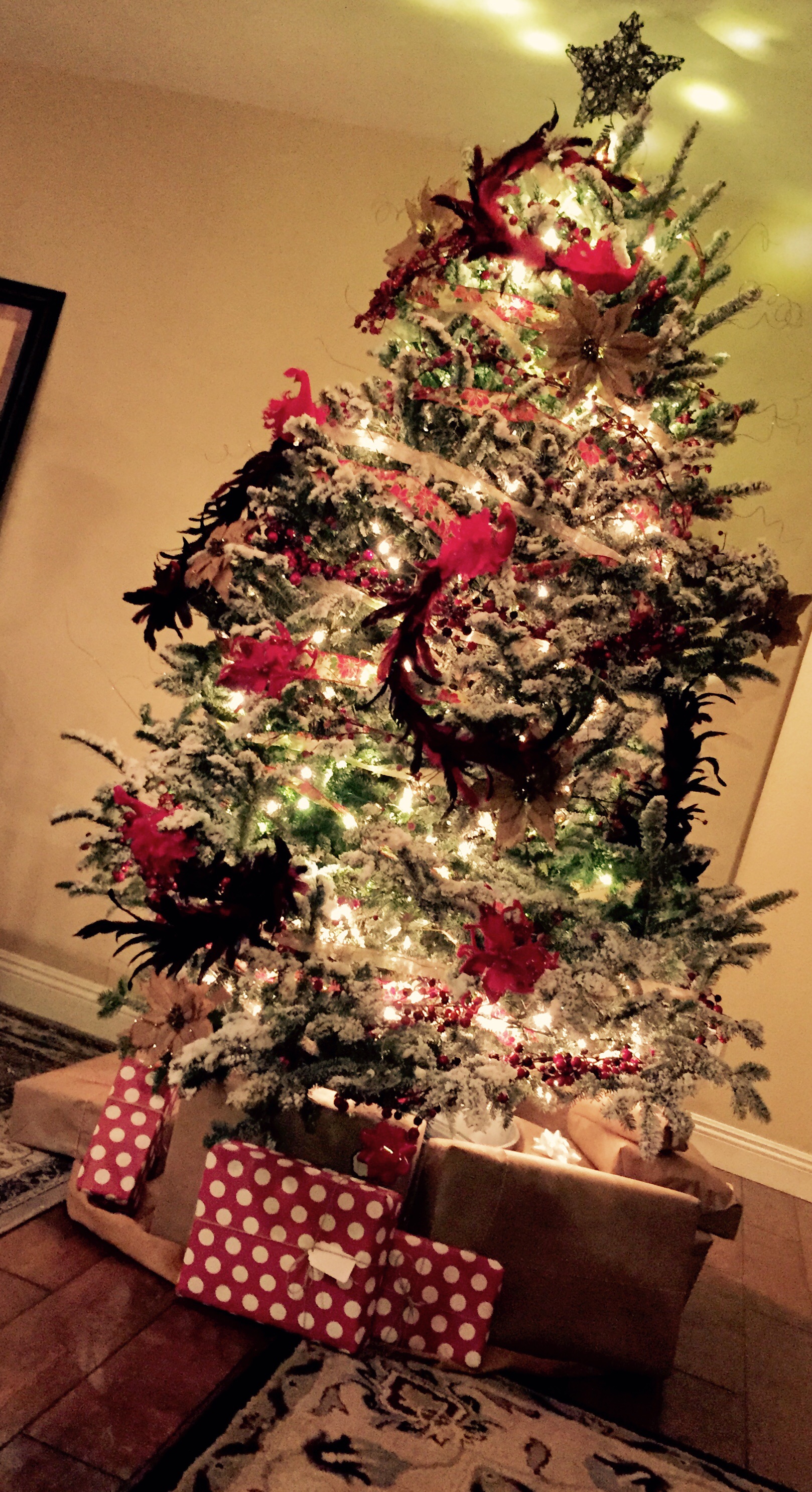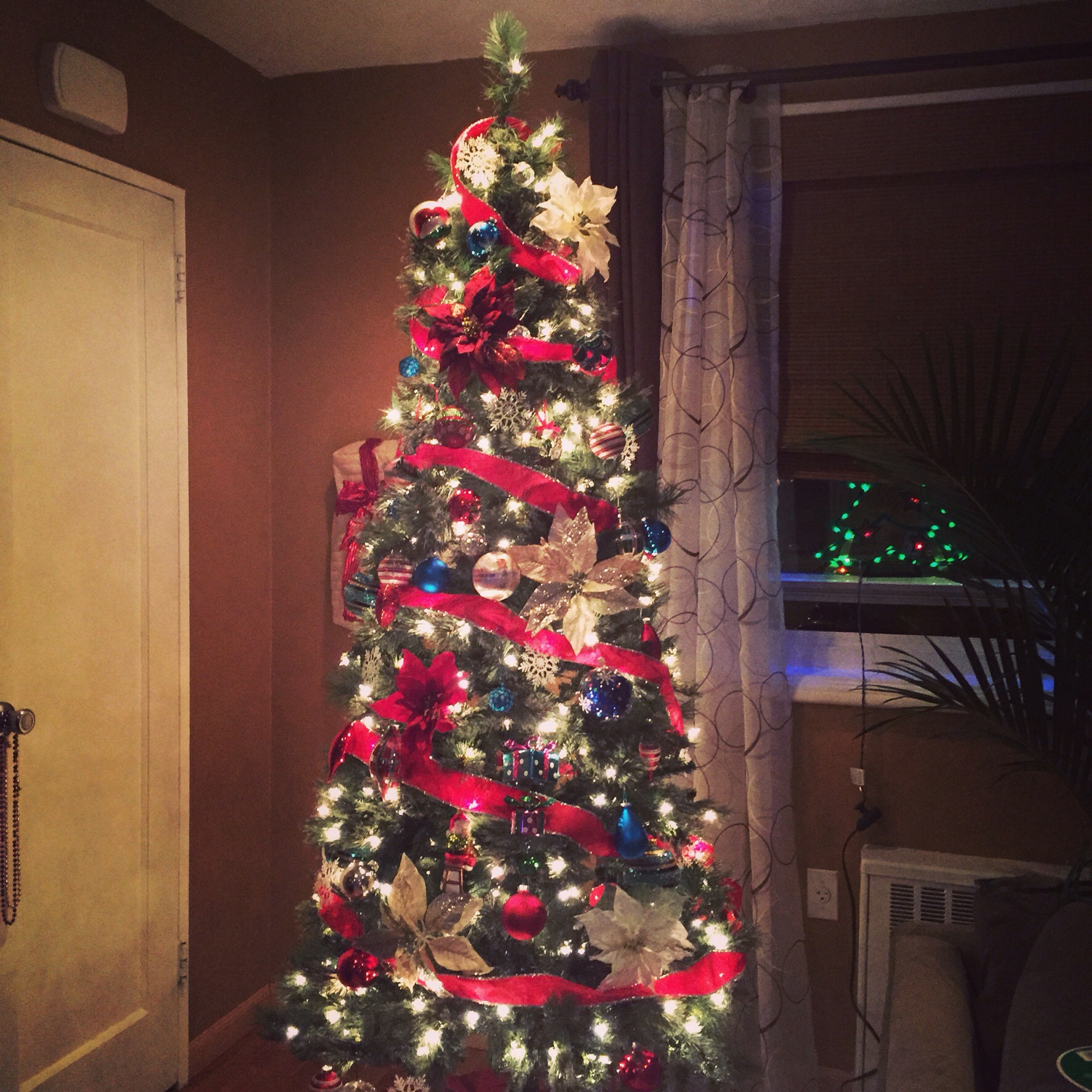 The tree, which is not fancy and is pretty haphazardly decorated, but we love it.